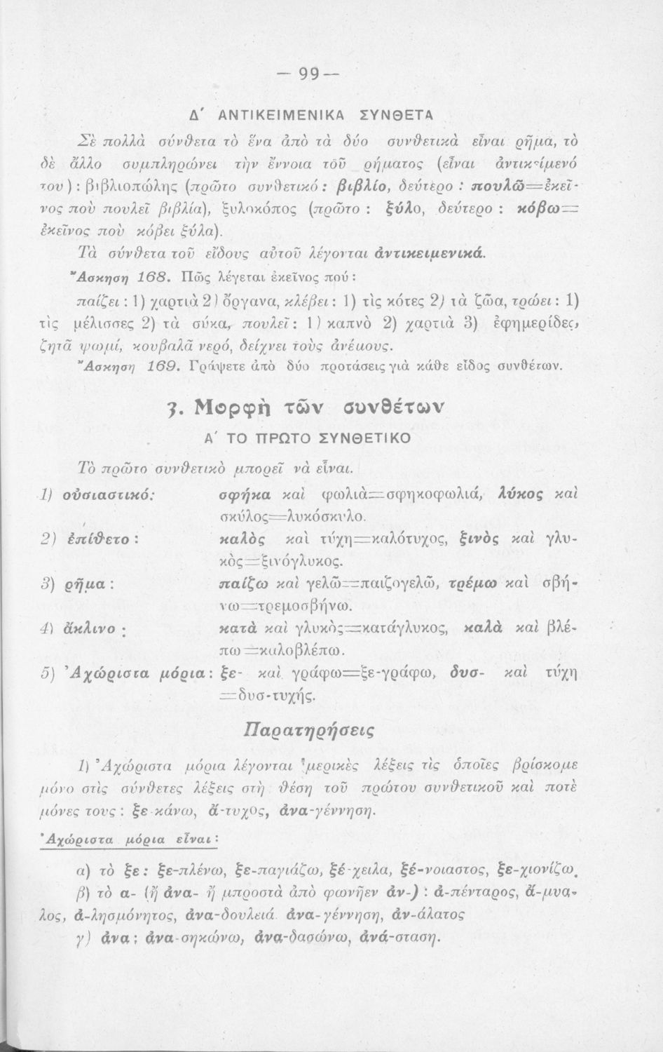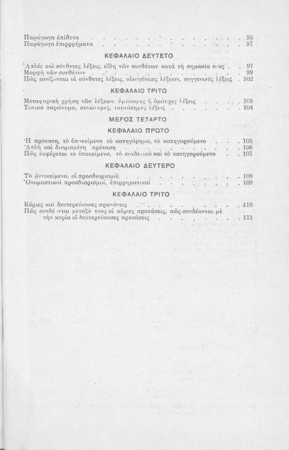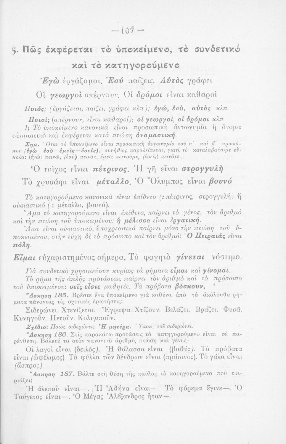 Μαθητικό βοήθημα Γραμματικής για τους μαθητές της Ε΄ και ΣΤ΄ τάξης του Δημοτικού. Περιέχει τη διδασκαλία της γραμματικής της καθαρεύουσας.