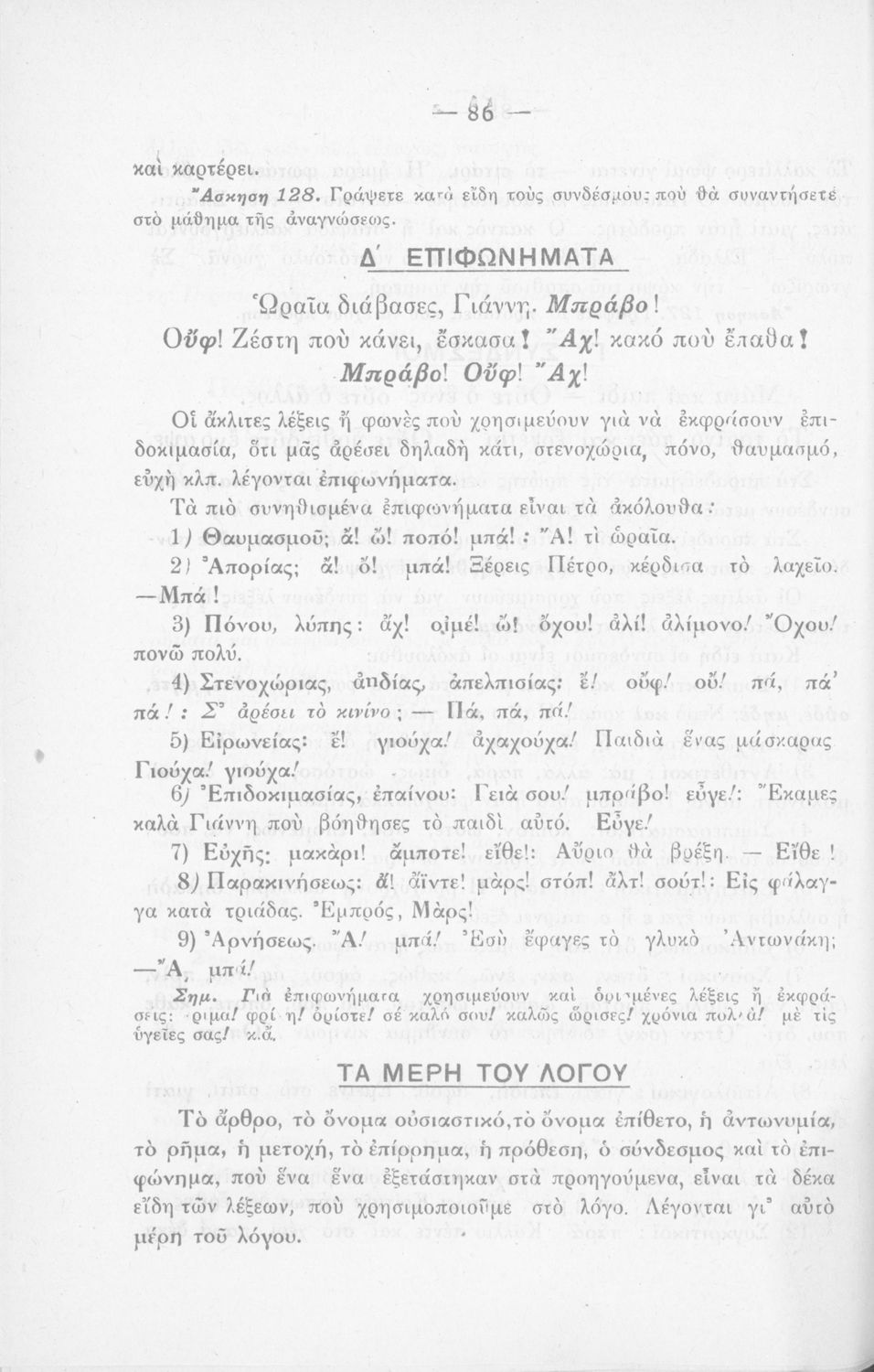 Βαθμίδα εκπαίδευσης: Πρωτοβάθμια Μάθημα: Νέα Ελληνικά Γλώσσα: Δημοτική Παρουσίαση περιεχομένου: Μαθητικό βοήθημα Γλώσσας Δημοτικού που περιλαμβάνει τους κανόνες γραμματικής και παραδείγματα. |