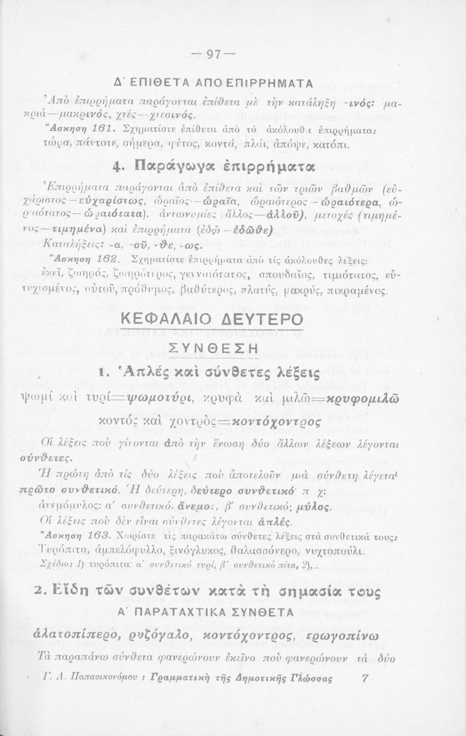 Κωδικός αναγνώρισης: 01-42109 Τίτλος: Γραμματική της Δημοτικής για τις ανώτερες τάξεις του Δημοτικού Σχολείου Συγγραφέας: Γεώργιος Λ. Παπαοικονόμου Μέγεθος και υπόστρωμα: Μαθητικό βοήθημα, 21εκ., σκληρό εξώφυλλο, 115 σελίδες. |