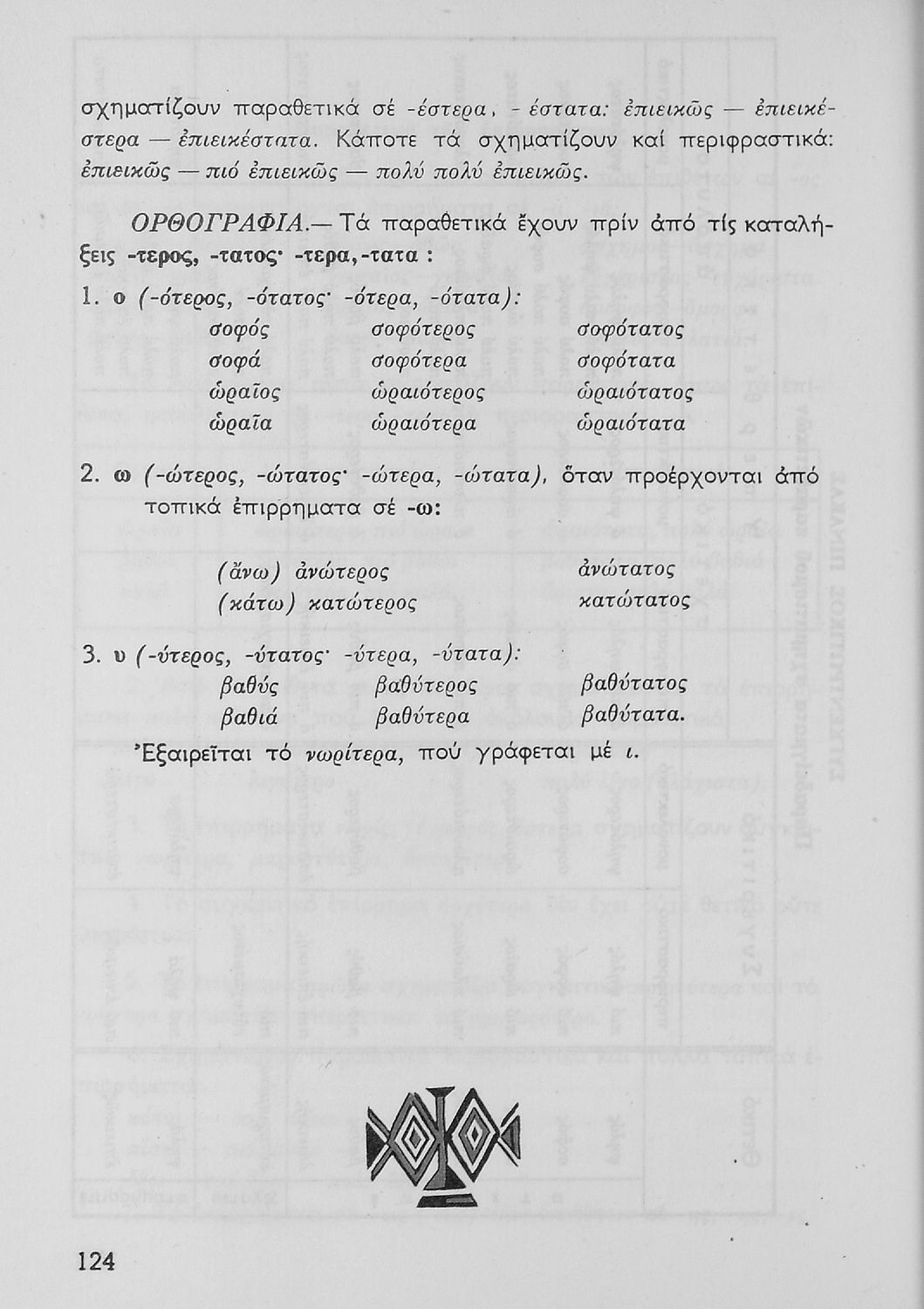 Σχολικό εγχειρίδιο με κανόνες Γραμματικής της Νεοελληνικής Γλώσσας. Το συγκεκριμένο τεύχος περιέχει ορθογραφικό οδηγό και κατάλογο ανώμαλων ρημάτων.