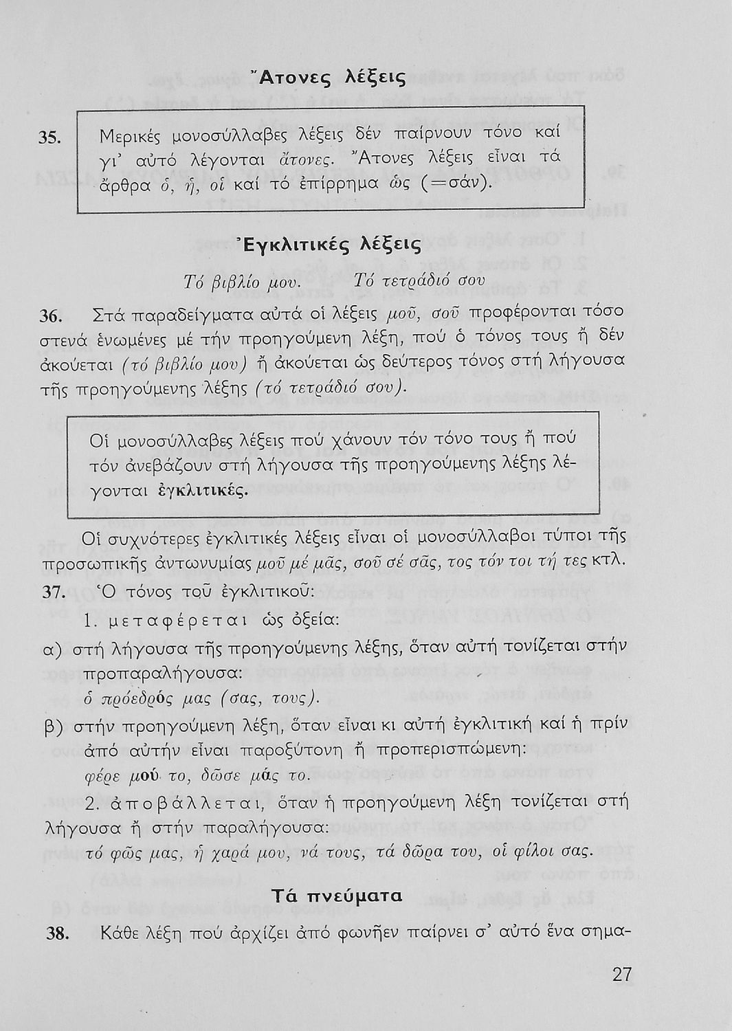 Σχολικό εγχειρίδιο με κανόνες Γραμματικής της Νεοελληνικής Γλώσσας. Το συγκεκριμένο τεύχος περιέχει ορθογραφικό οδηγό και κατάλογο ανώμαλων ρημάτων.