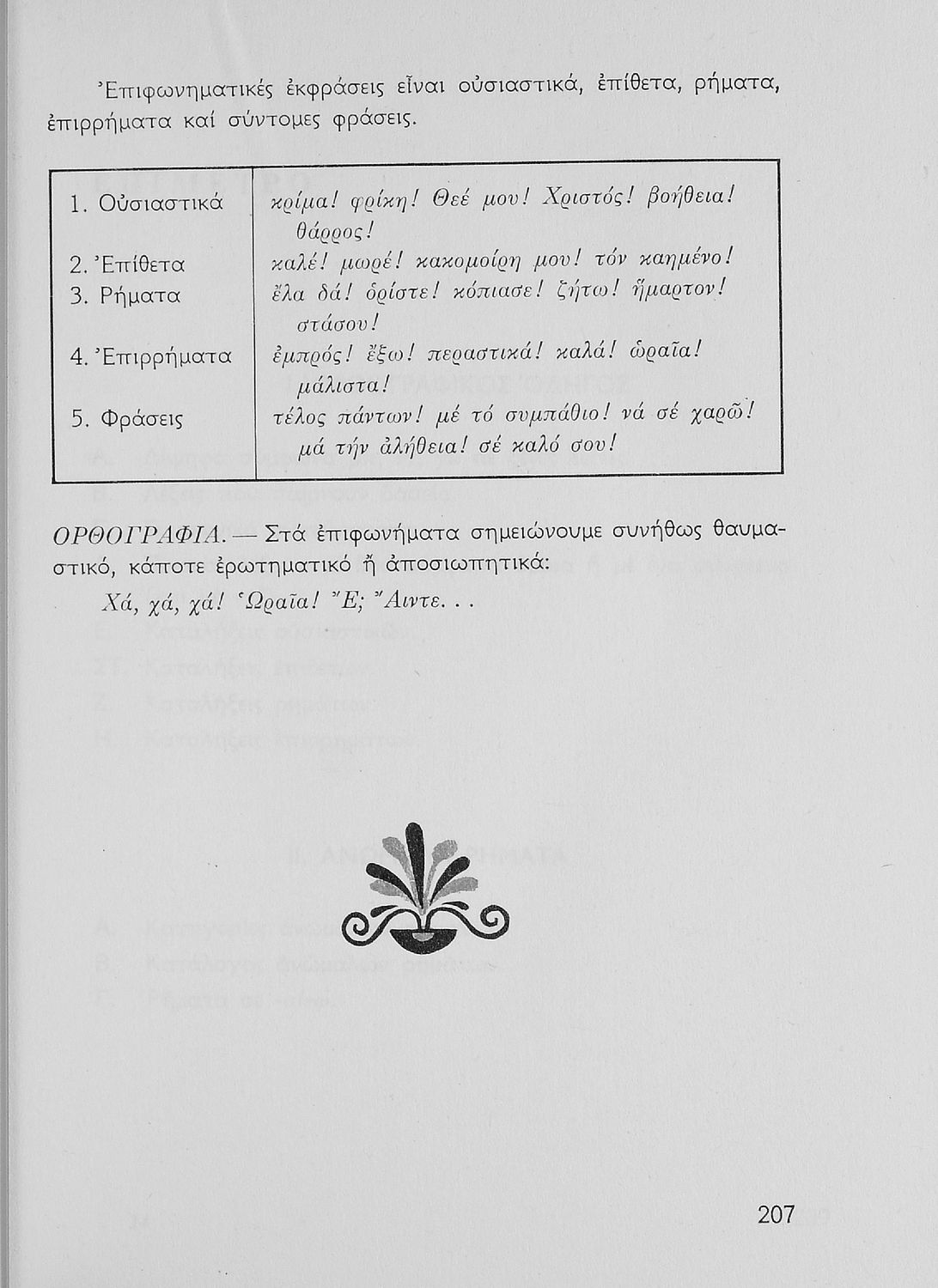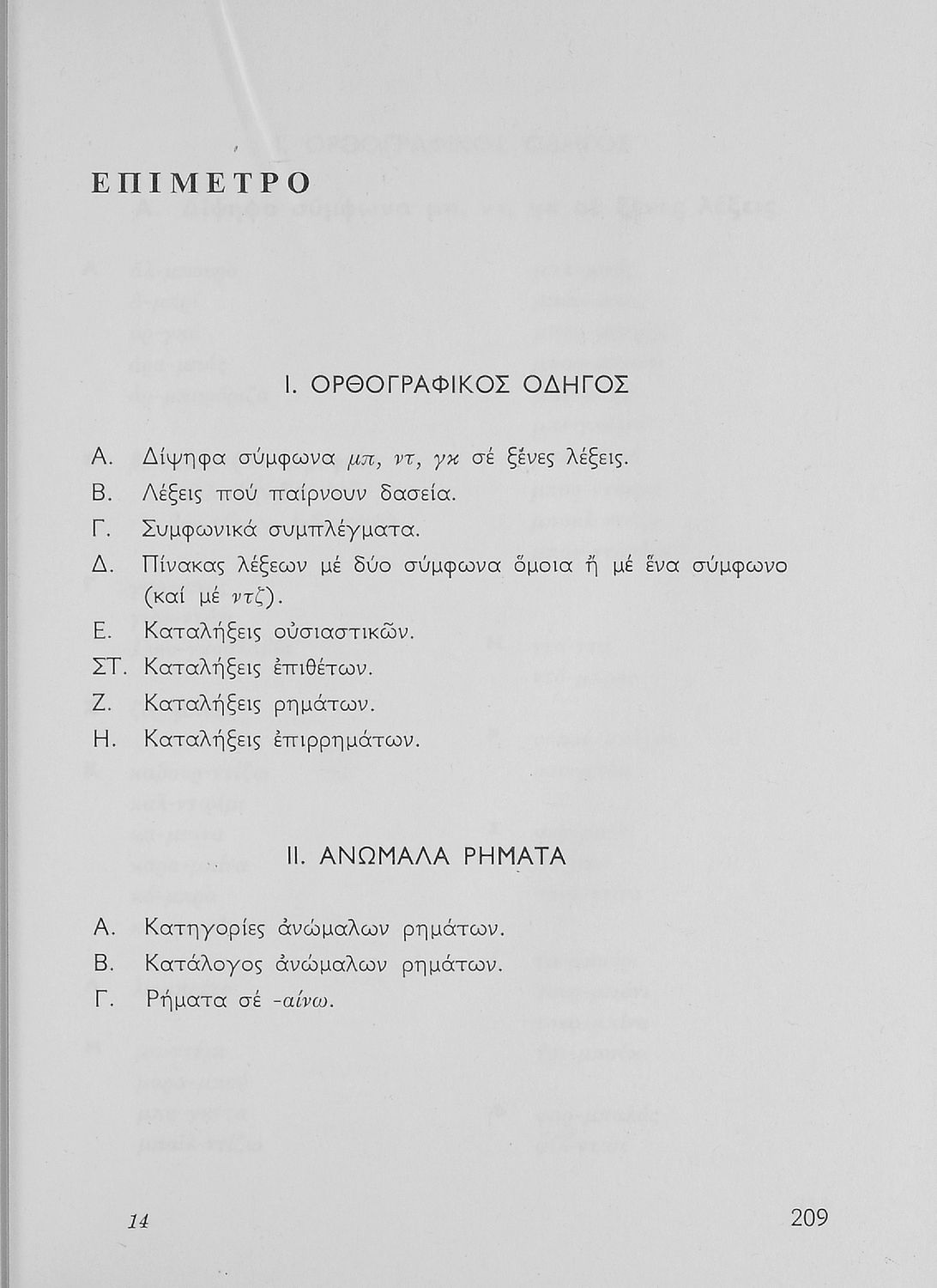 Σχολικό εγχειρίδιο με κανόνες Γραμματικής της Νεοελληνικής Γλώσσας. Το συγκεκριμένο τεύχος περιέχει ορθογραφικό οδηγό και κατάλογο ανώμαλων ρημάτων.