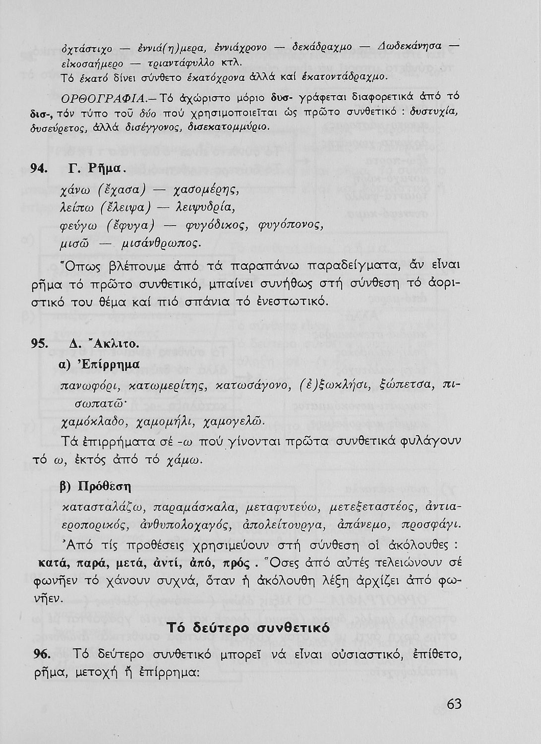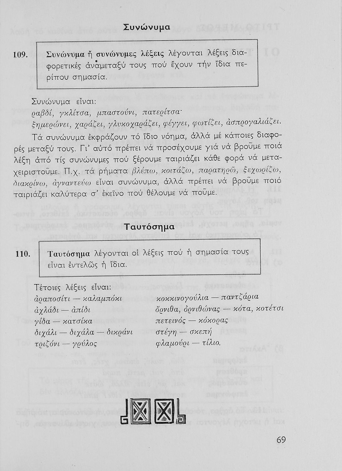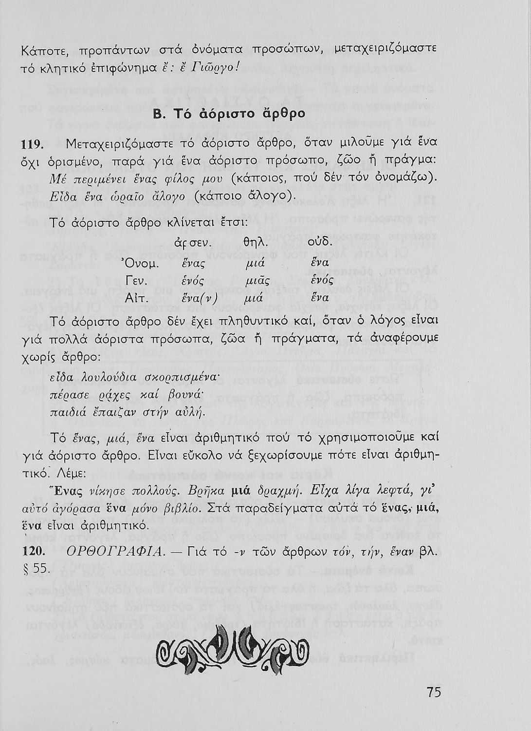 Σχολικό εγχειρίδιο με κανόνες Γραμματικής της Νεοελληνικής Γλώσσας. Το συγκεκριμένο τεύχος περιέχει ορθογραφικό οδηγό και κατάλογο ανώμαλων ρημάτων.