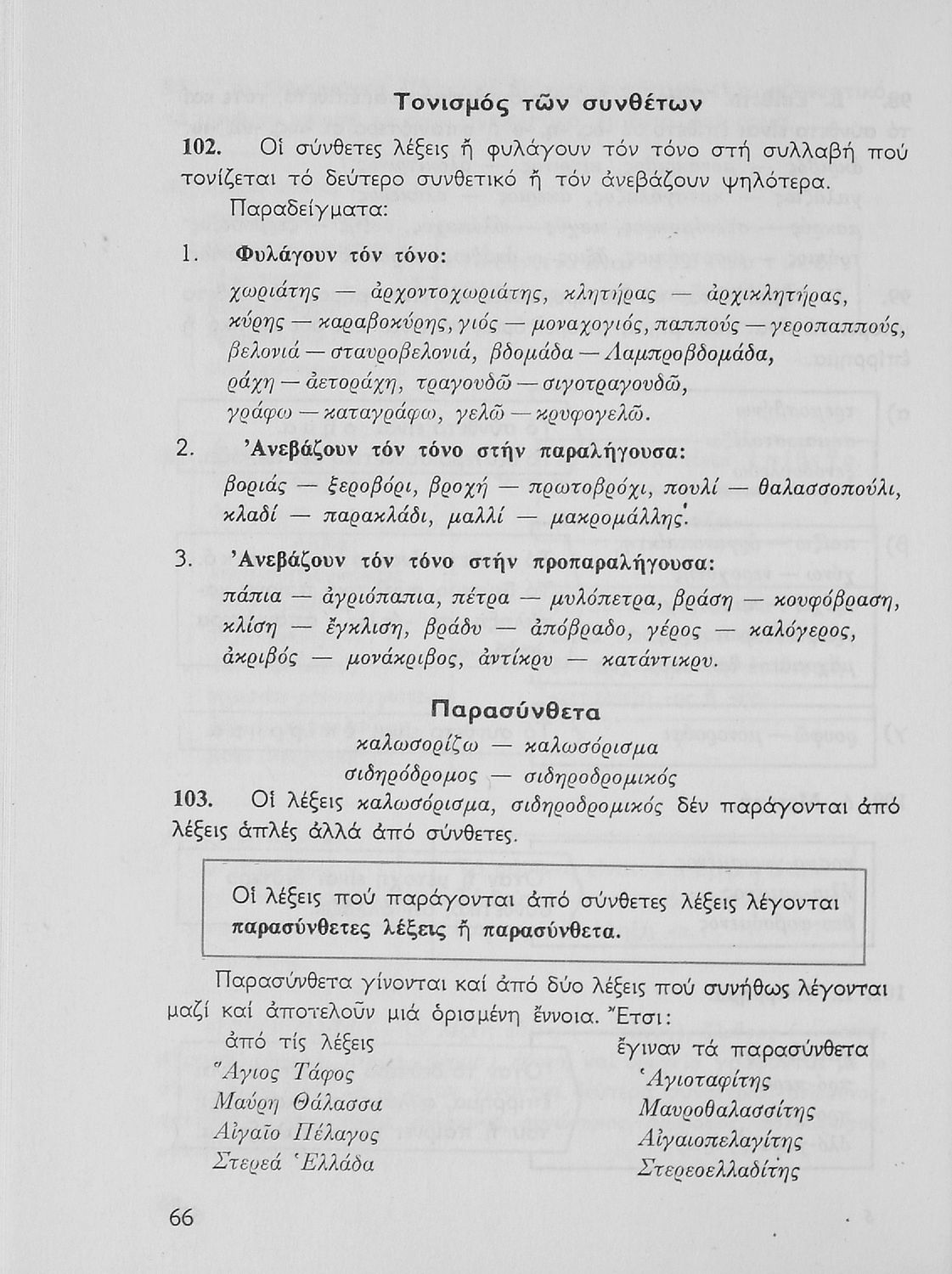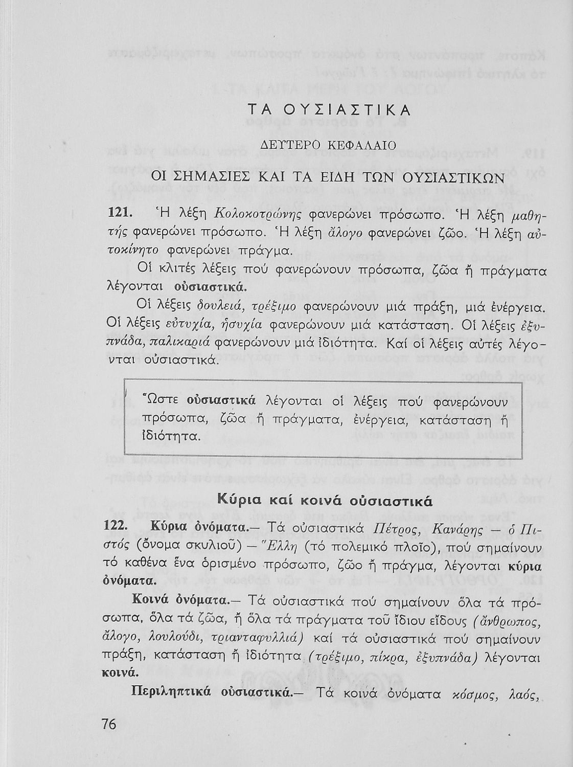 Παρουσίαση περιεχομένου: Σχολικό εγχειρίδιο Γραμματικής που αποτελεί αναπροσαρμογή του βιβλίου του Μανόλη Τριανταφυλλίδη στη σχολική πραγματικότητα. Το σχολικό εγχειρίδιο αποτελούσε βοήθημα για μαθητές και εκπαιδευτικούς στο γλωσσικό μάθημα.