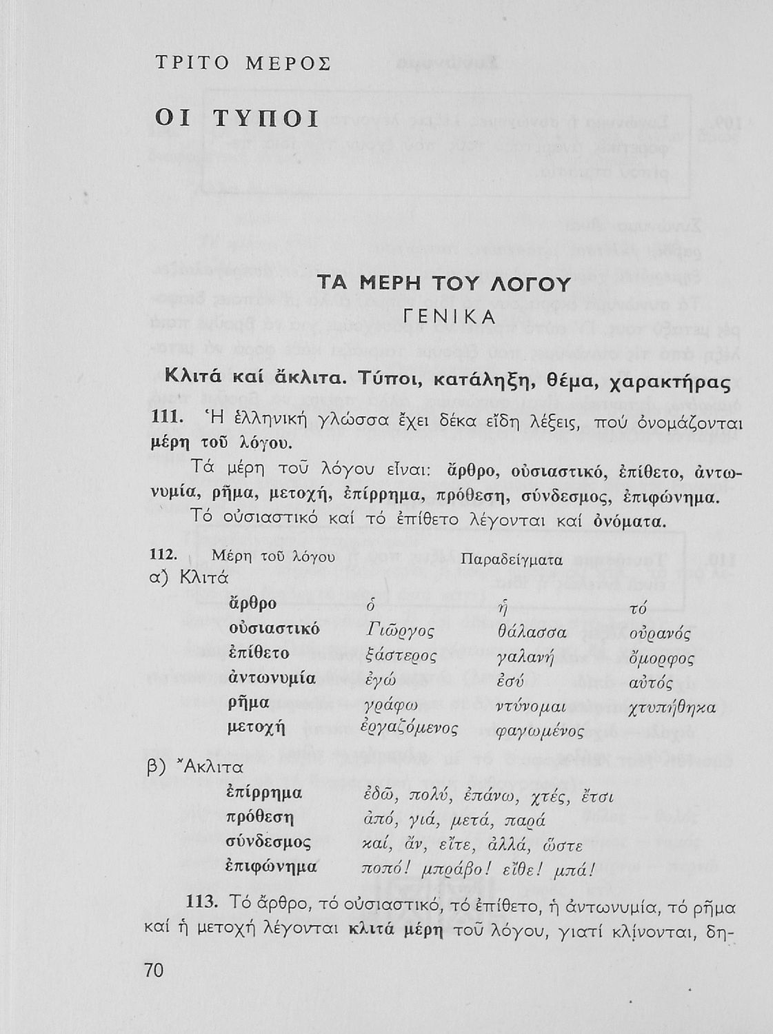 Σχολικό εγχειρίδιο Γραμματικής για τη ΣΤ΄ Δημοτικού και τις τάξεις της Μέσης εκπαίδευσης. Περιέχει τη διδασκαλία της Γραμματικής της δημοτικής και για τους παιδαγωγούς αλλά και τους μαθητές.