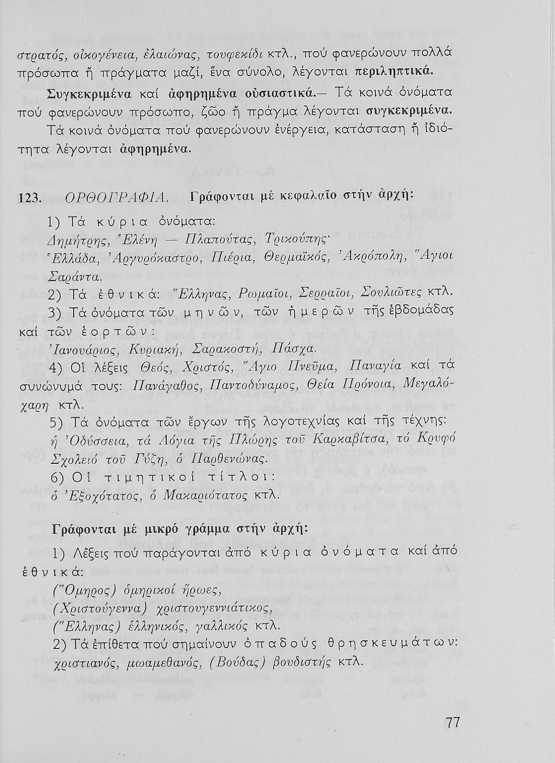 Σχολικό εγχειρίδιο Γραμματικής για την Ε' και ΣΤ΄ τάξη με κανόνες και παράδειγμα που εστιάζει στα μέρη του λόγου και στην κλίση τους. Το βιβλίο αποτελεί σύνοψη Της Μικρής Νεοελληνικής Γραμματικής του ίδιου ...