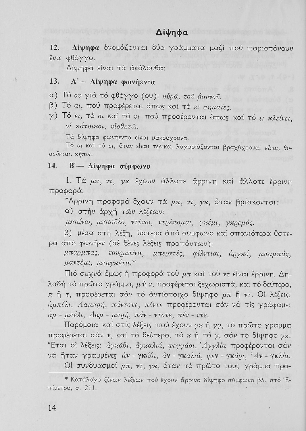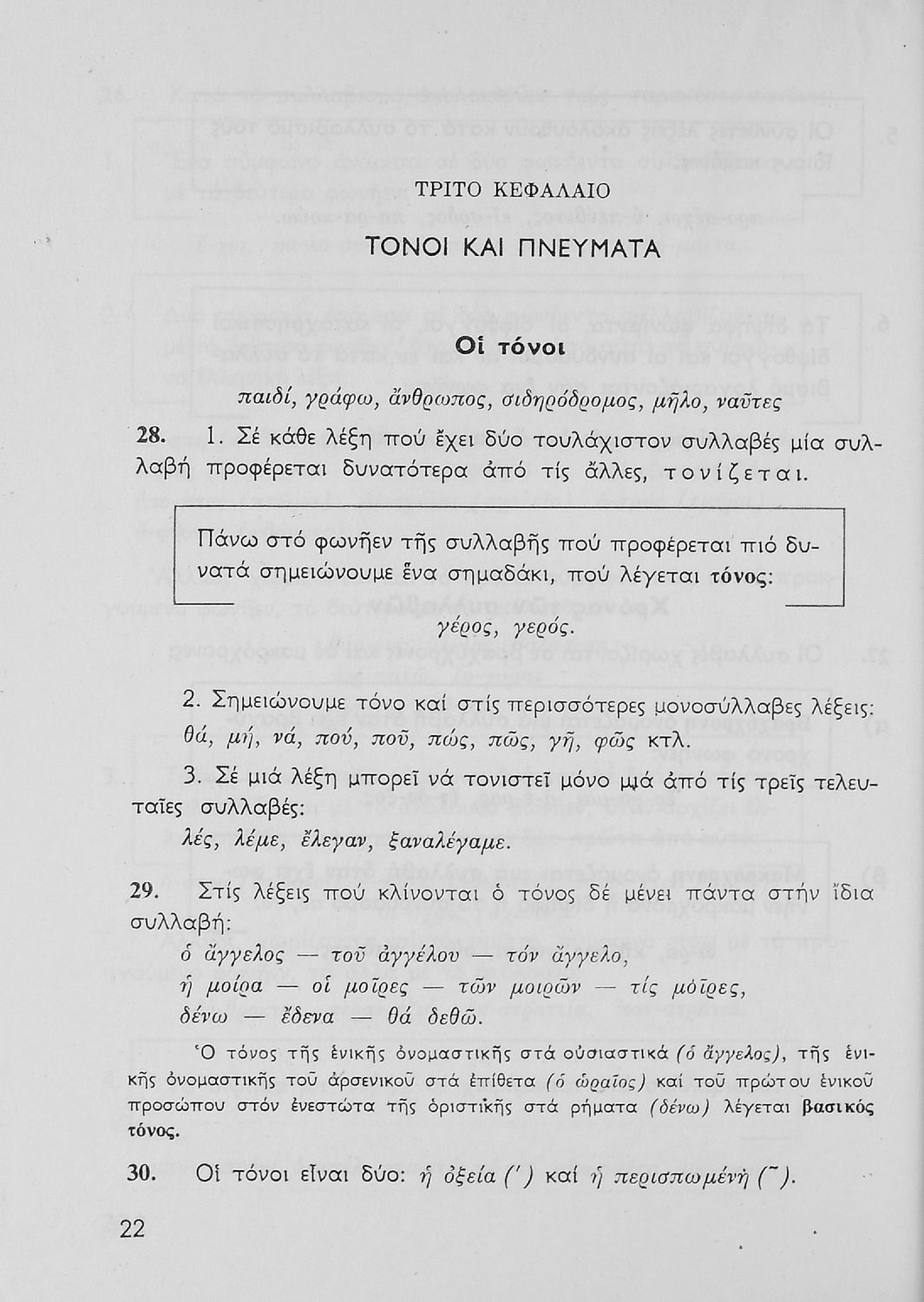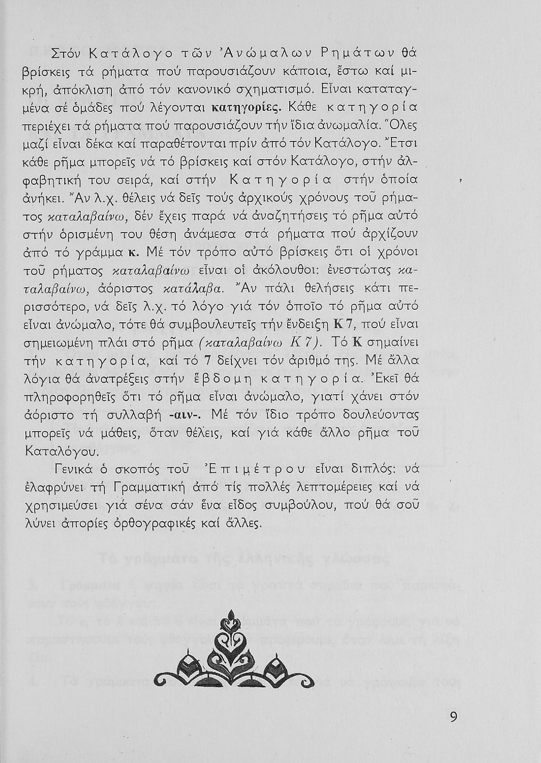 Σχολικό εγχειρίδιο με κανόνες Γραμματικής της Νεοελληνικής Γλώσσας. Το συγκεκριμένο τεύχος περιέχει ορθογραφικό οδηγό και κατάλογο ανώμαλων ρημάτων.