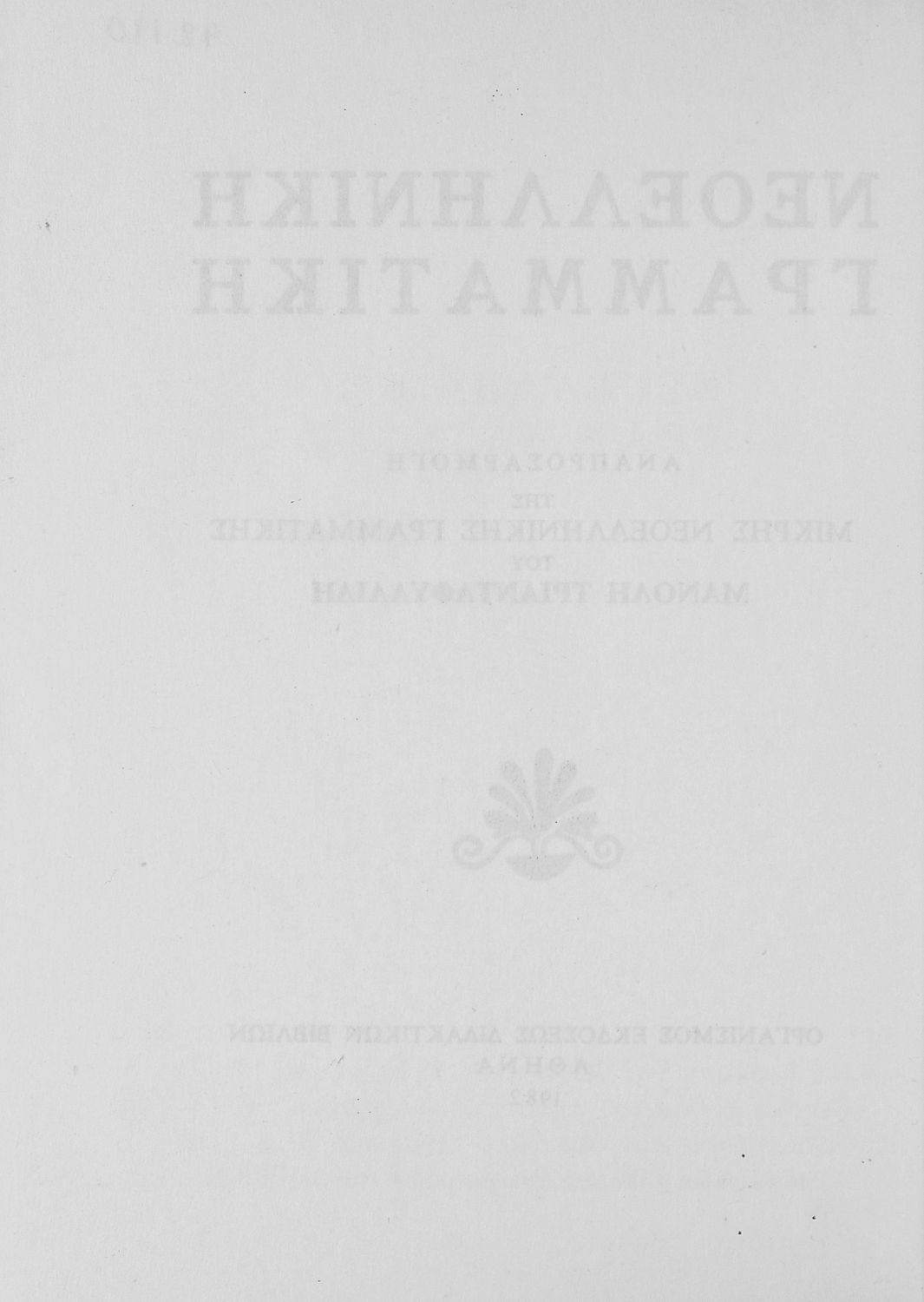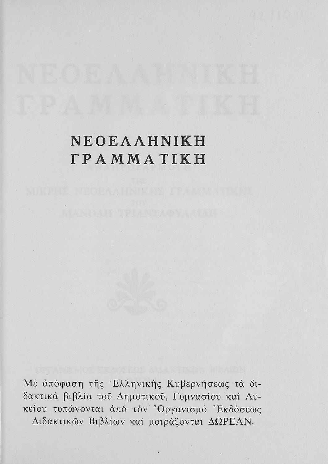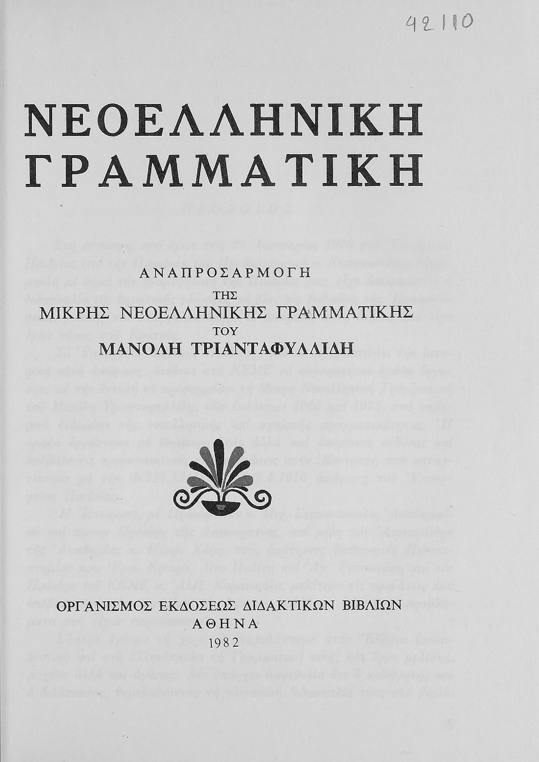 Τίτλος: Νεοελληνική Γραμματική, αναπροσαρμογή της μικρής Νεοελληνικής Γραμματικής του Μανόλη Τριανταφυλλίδη