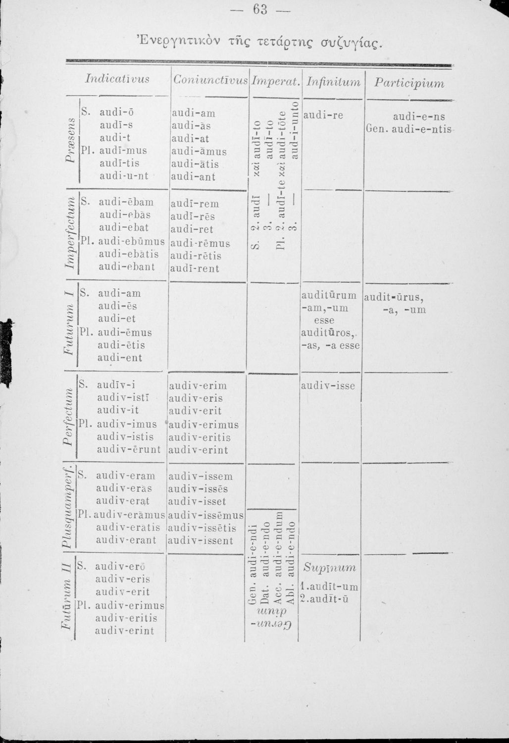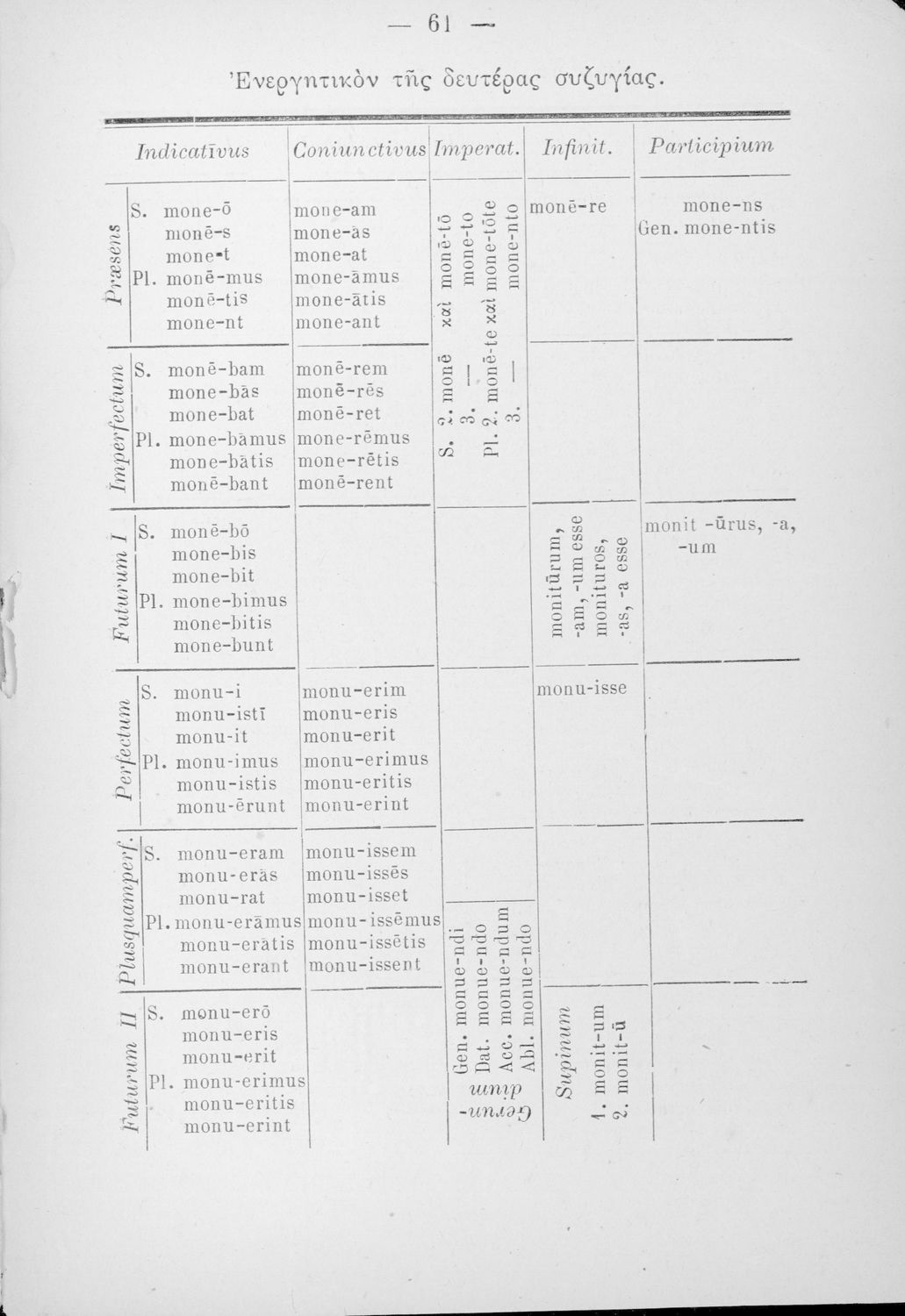 Βαθμίδα εκπαίδευσης: Δευτεροβάθμια Τάξη: Ελληνικό Σχολείο Μάθημα: Λατινικά Γλώσσα: Καθαρεύουσα Παρουσίαση περιεχομένου: Γραμματικής της λατινικής γλώσσας για τα Ελληνικά Σχολεία που εστιάζει στα μέρη του λόγου. |
