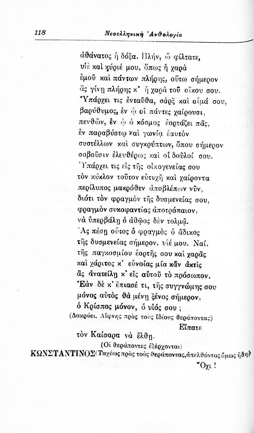 Νεοελληνική Ανθολογία επική ποίησις-δραματική ποίησις-λυρική ποίησις προς χρήσιν των τριών τάξεων των διδασκαλείων και ανάγνωσιν κατ' οίκον υπό των μαθητών της Γ΄ και Δ΄ τάξεων των Γυμνασίων