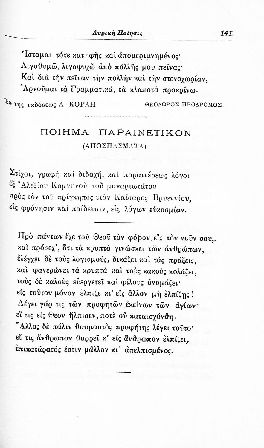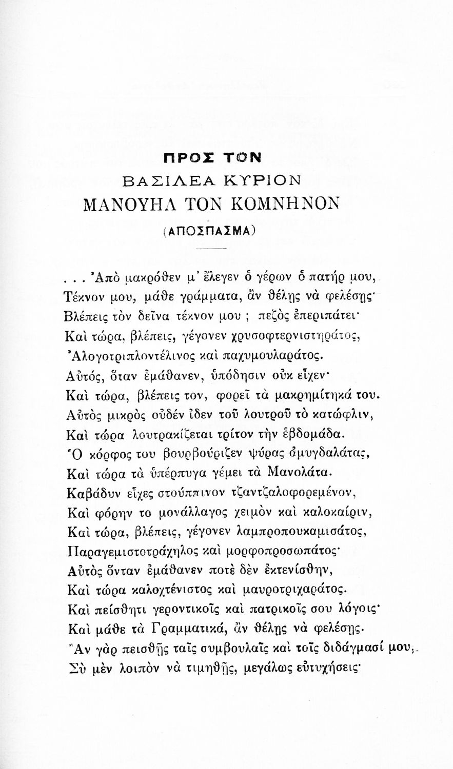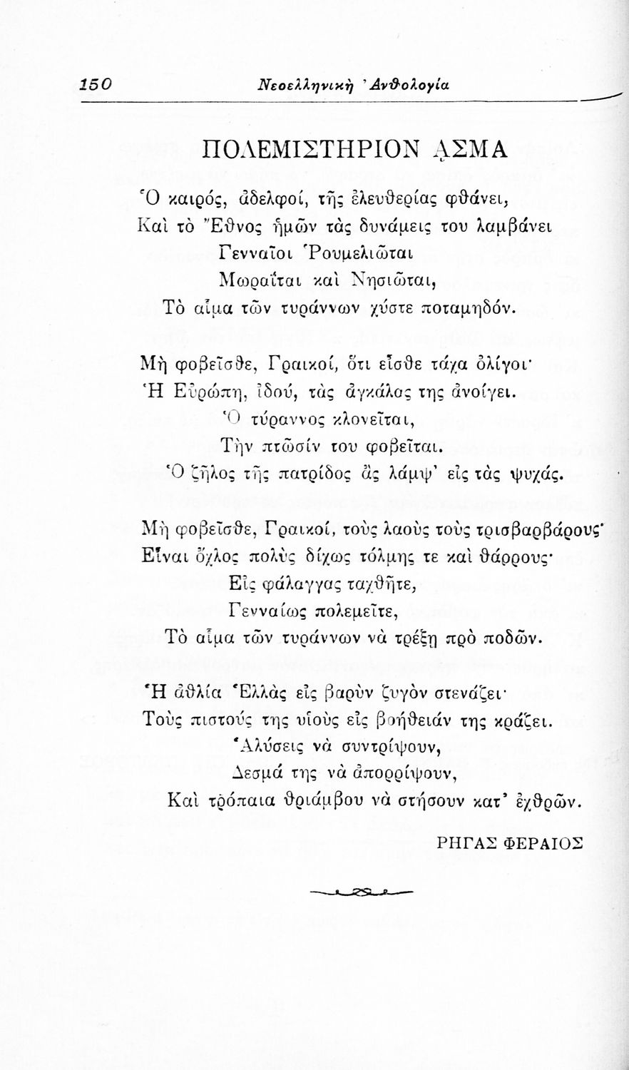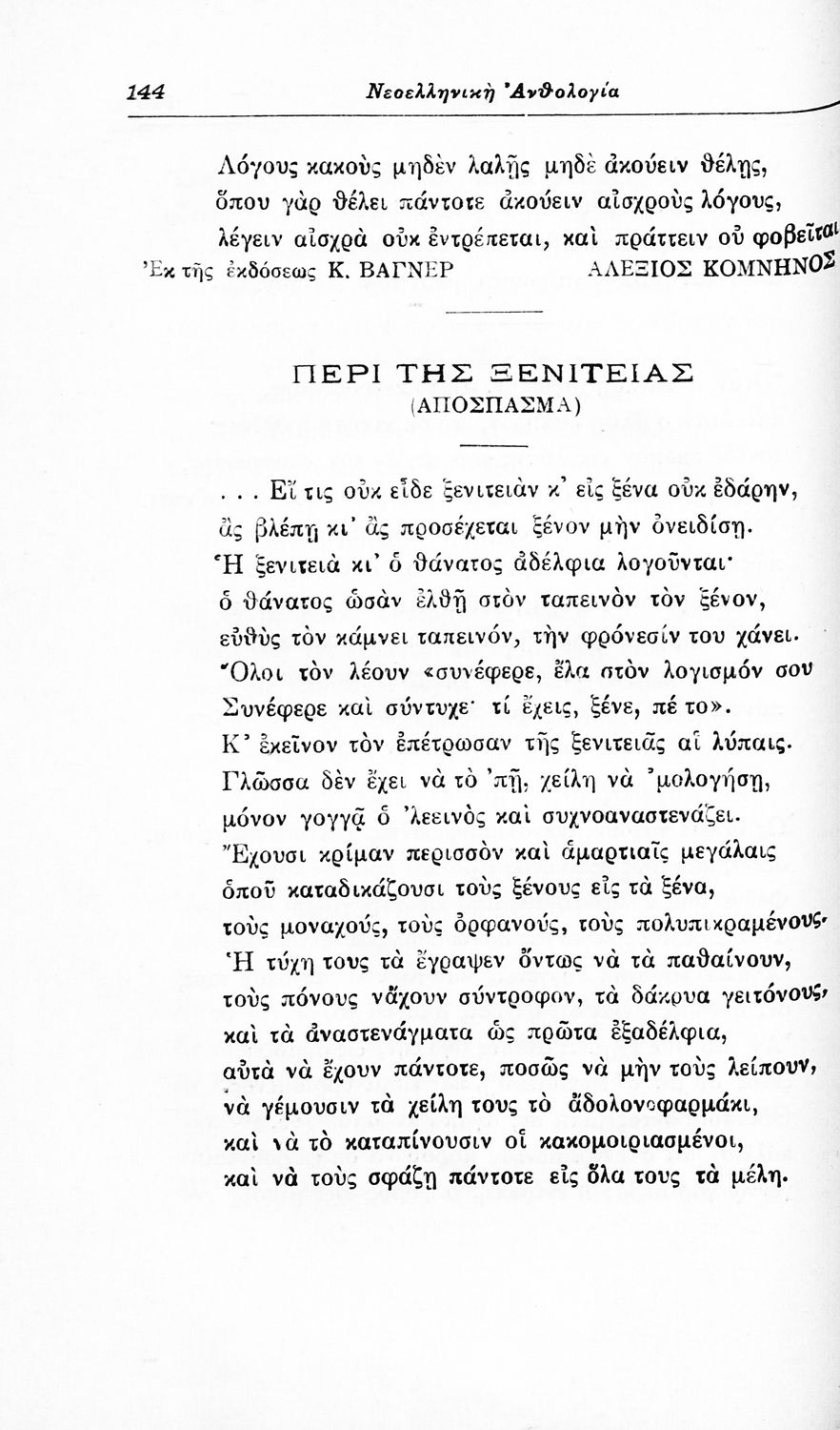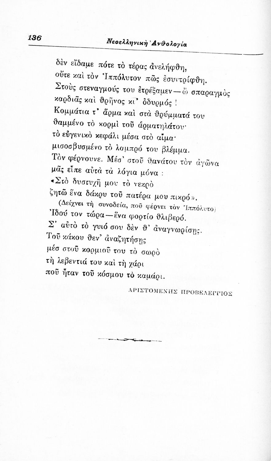 Σχολικό εγχειρίδιο Νέων Ελληνικών για τις τρεις τάξεις των Διδασκαλείων και Γ', Δ' Γυμνασίων. Ανθολόγιο νεοελληνικής ποίησης με αποσπάσματα από επικά, λυρικά και δραματικά ποιήματα. Περιέχει παράρτημα δυσνόητων λέξεων και βιογραφίες των ποιητών. Απουσιάζει το εξώφυλλο ενώ το οπισθόφυλλο έχει κολληθεί από προστατευτικό κάλυμμα του μαθητή.
