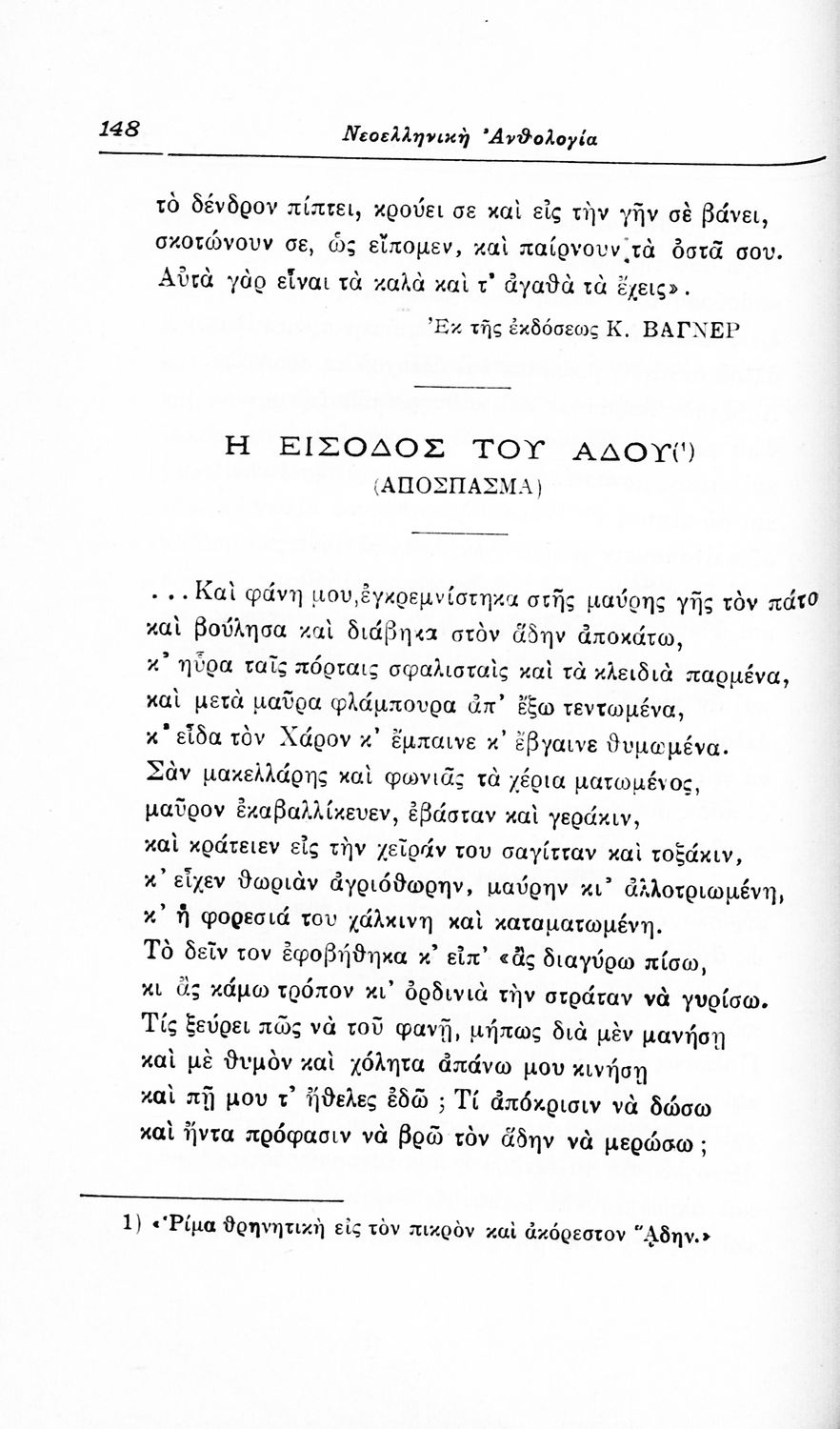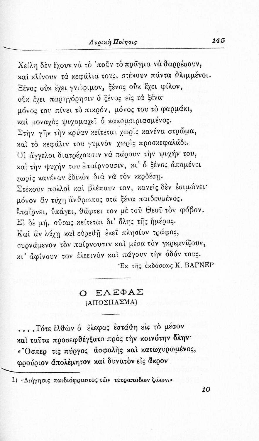 LDR 01723 2200217 4500 035 ## _a01-42112 040 ## _aΙνστιτούτο Εκπαιδευτικής Πολιτικής 041 ## _ael 100 ## _aΙωάννης Ν. Σιδέρης 110 ## _a42112 245 0# _aΝεοελληνική Ανθολογία επική ποίησις-δραματική ποίησις-λυρική ποίησις προς χρήσιν των τριών τάξεων των διδασκαλείων και ανάγνωσιν κατ' οίκον υπό των μαθητών της Γ΄ και Δ΄ τάξεων των Γυμνασίων 250 ## _a3η Έκδοση 260 ## _aΑθήνα _bΙωάννης Ν. Σιδέρης _c1922 300 ## _a270 _c20 520 ## _aΣχολικό εγχειρίδιο Νέων Ελληνικών για τις τρεις τάξεις των Διδασκαλείων και Γ', Δ' Γυμνασίων. Ανθολόγιο νεοελληνικής ποίησης με αποσπάσματα από επικά, λυρικά και δραματικά ποιήματα. Περιέχει παράρτημα δυσνόητων λέξεων και βιογραφίες των ποιητών. Απουσιάζει το εξώφυλλο ενώ το οπισθόφυλλο έχει κολληθεί από προστατευτικό κάλυμμα του μαθητή. 521 ## _aΔιδασκαλείο / Γ' Γυμνασίου / Δ' Γυμνασίου 522 ## _aΕλλάδα 546 ## _aΚαθαρεύουσα / Δημοτική 563 ## _aΜαλακό Εξώφυλλο 583 ## _a27967 650 #4 _aΔραματικά ποιήματα _aΕπικά ποιήματα _aΛυρικά ποιήματα