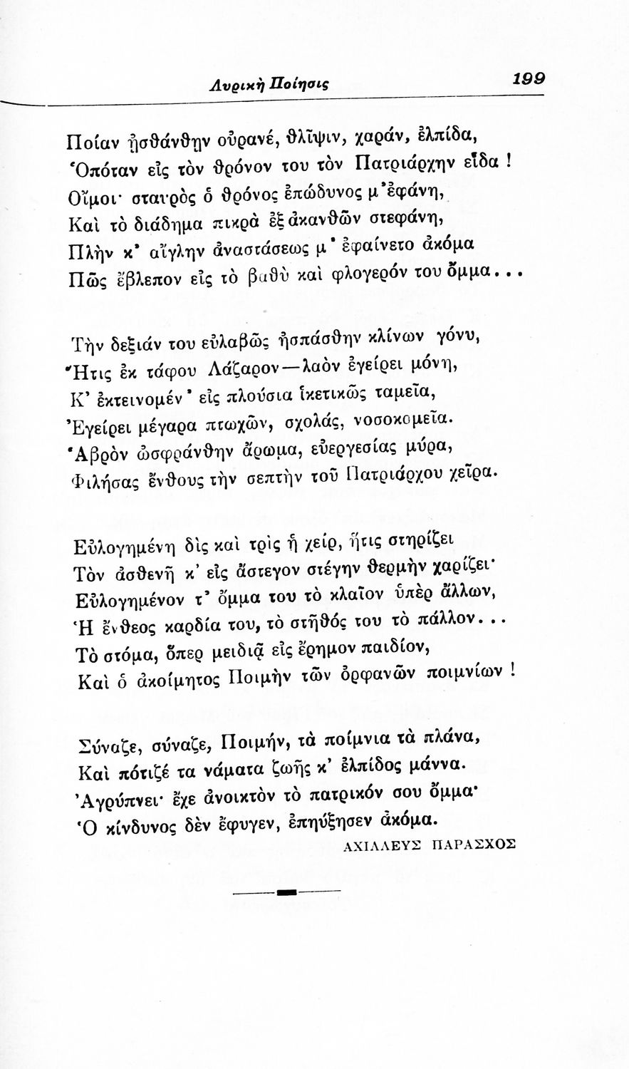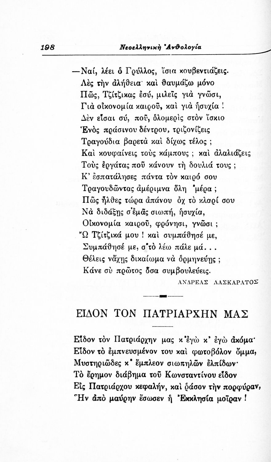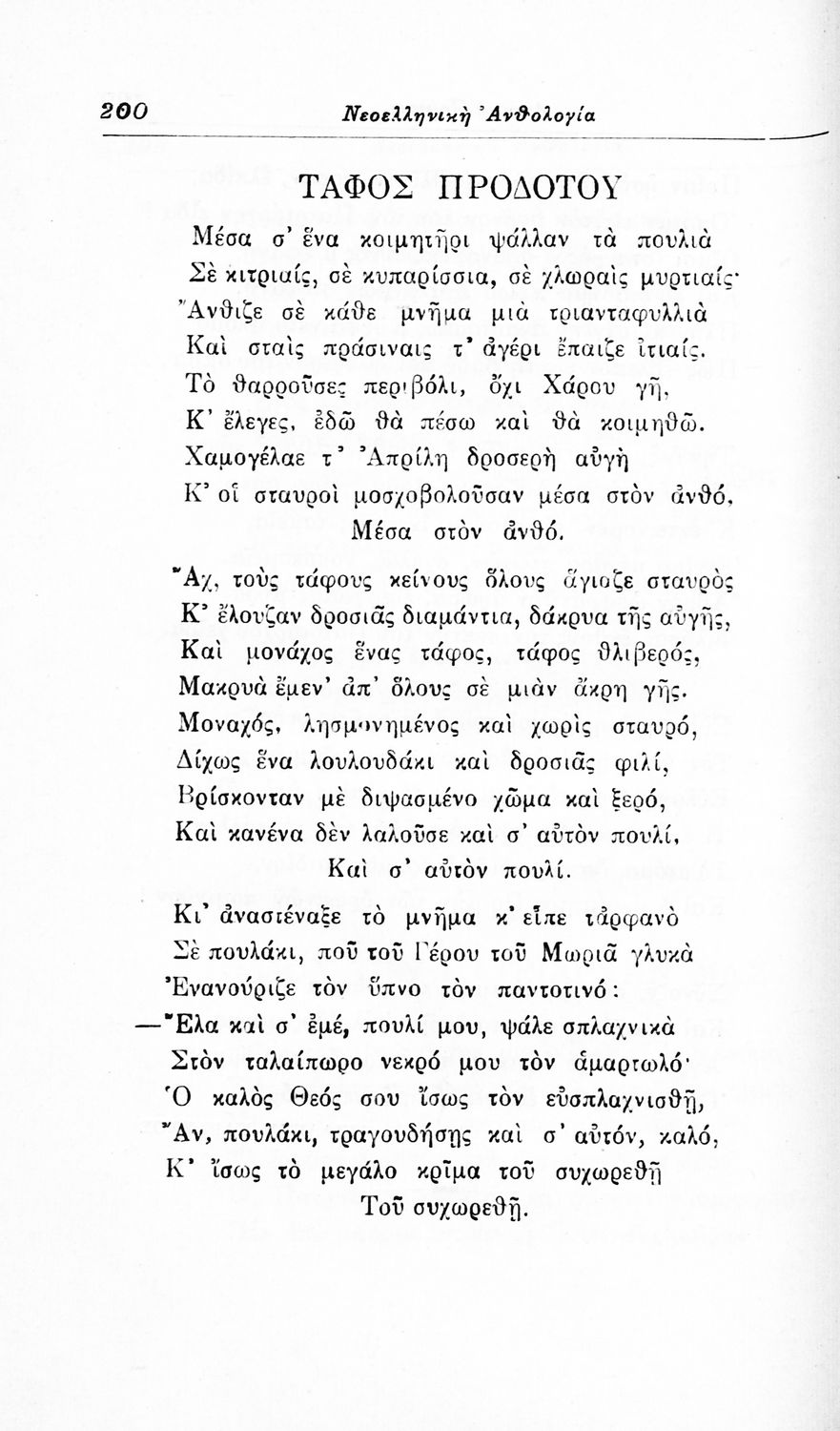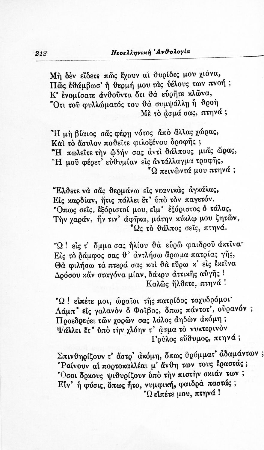 Σχολικό εγχειρίδιο Νέων Ελληνικών για τις τρεις τάξεις των Διδασκαλείων και Γ', Δ' Γυμνασίων. Ανθολόγιο νεοελληνικής ποίησης με αποσπάσματα από επικά, λυρικά και δραματικά ποιήματα. Περιέχει παράρτημα δυσνόητων λέξεων και βιογραφίες των ποιητών. Απουσιάζει το εξώφυλλο ενώ το οπισθόφυλλο έχει κολληθεί από προστατευτικό κάλυμμα του μαθητή.