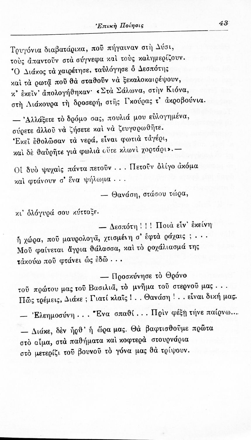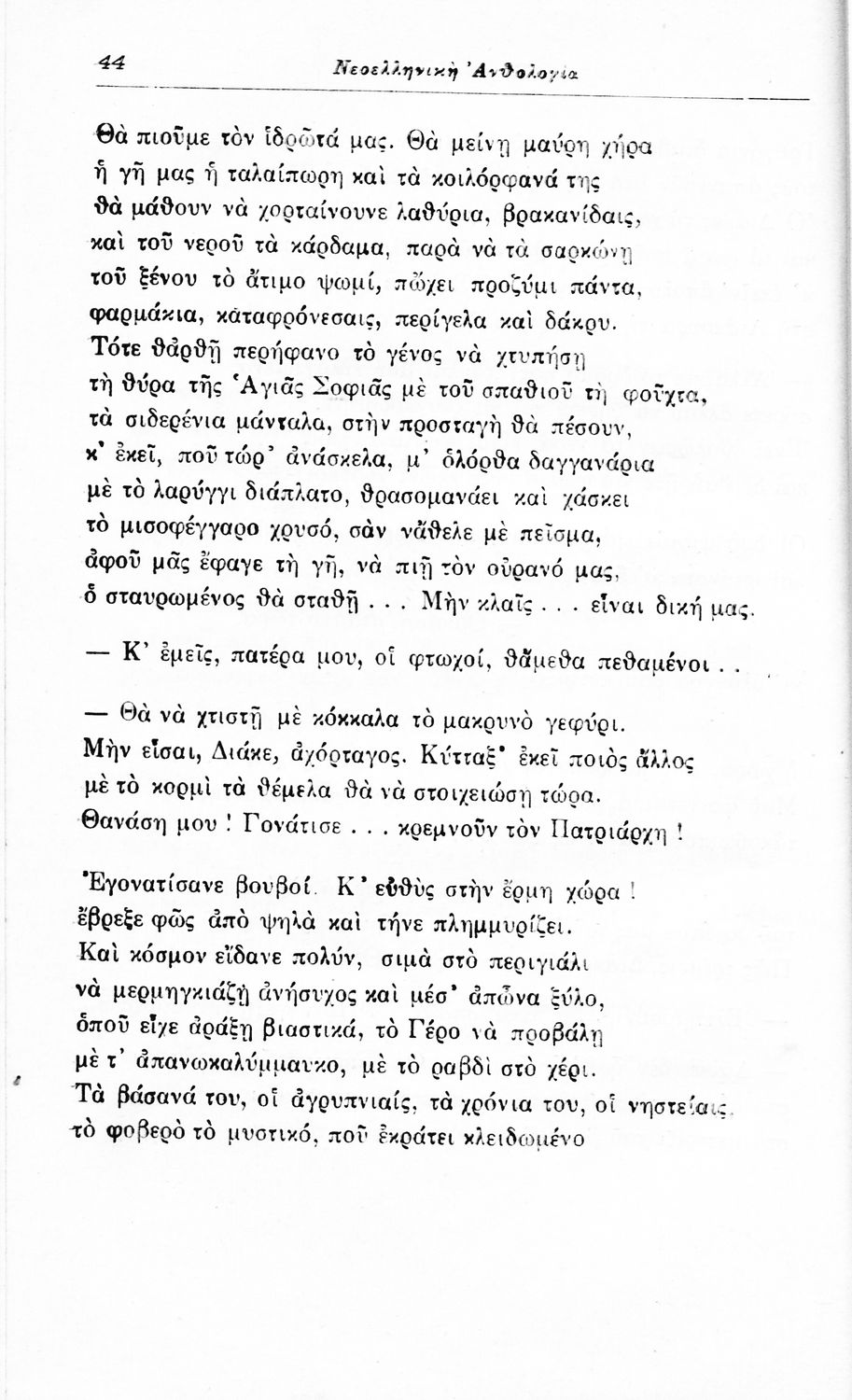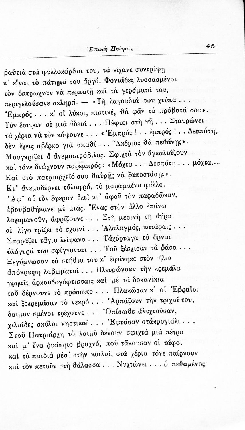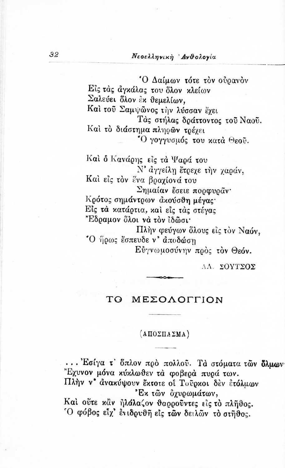 Σχολικό εγχειρίδιο Νέων Ελληνικών για τις τρεις τάξεις των Διδασκαλείων και Γ', Δ' Γυμνασίων. Ανθολόγιο νεοελληνικής ποίησης με αποσπάσματα από επικά, λυρικά και δραματικά ποιήματα. Περιέχει παράρτημα δυσνόητων λέξεων και βιογραφίες των ποιητών. Απουσιάζει το εξώφυλλο ενώ το οπισθόφυλλο έχει κολληθεί από προστατευτικό κάλυμμα του μαθητή.
