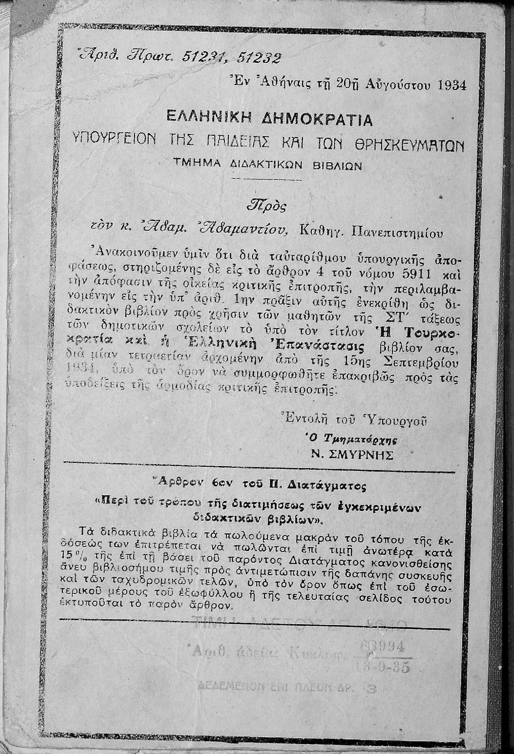 Υπουργική απόφαση / Σύμβαση: 51231/20-8-1934