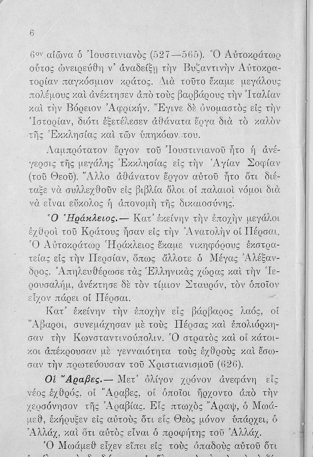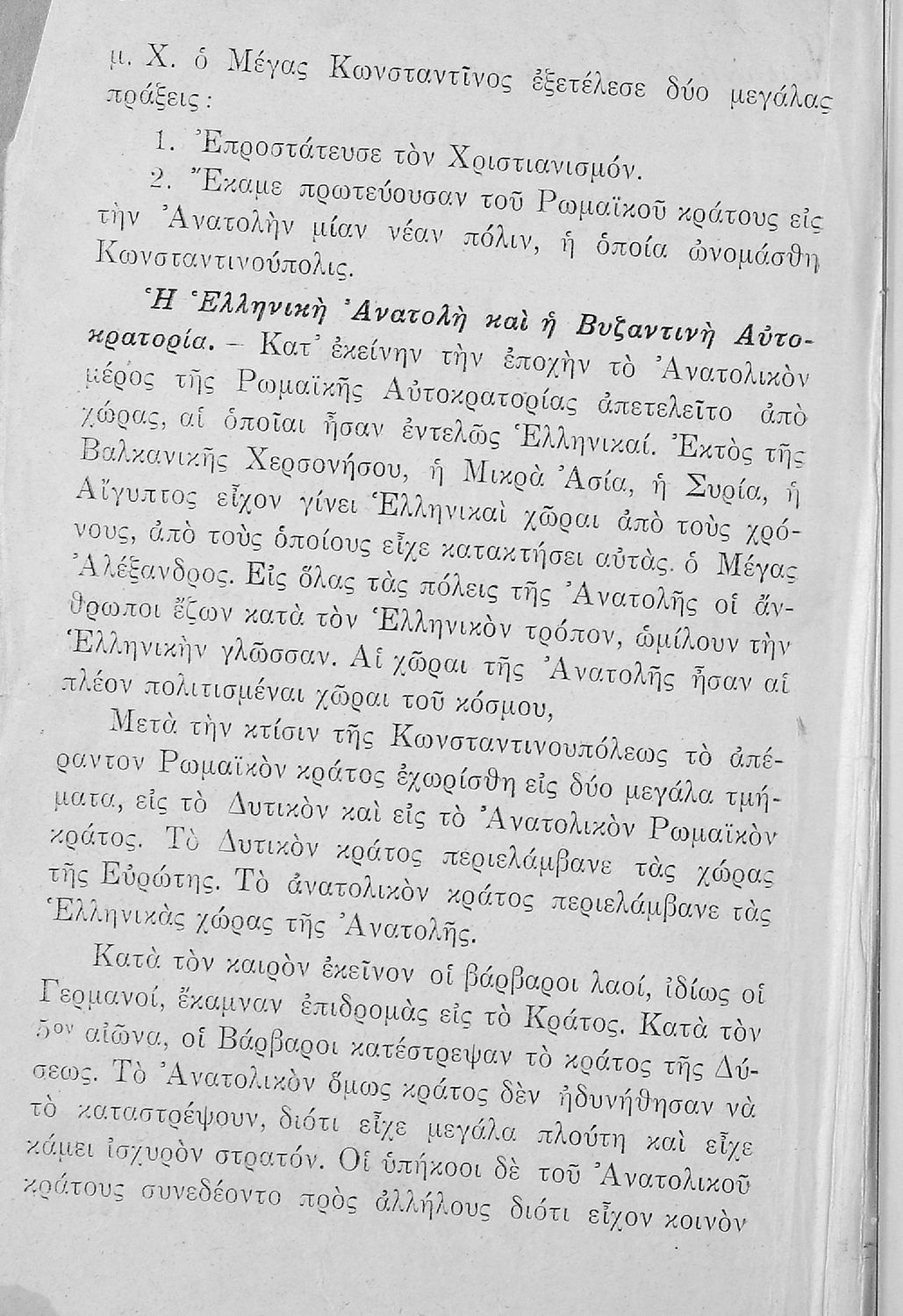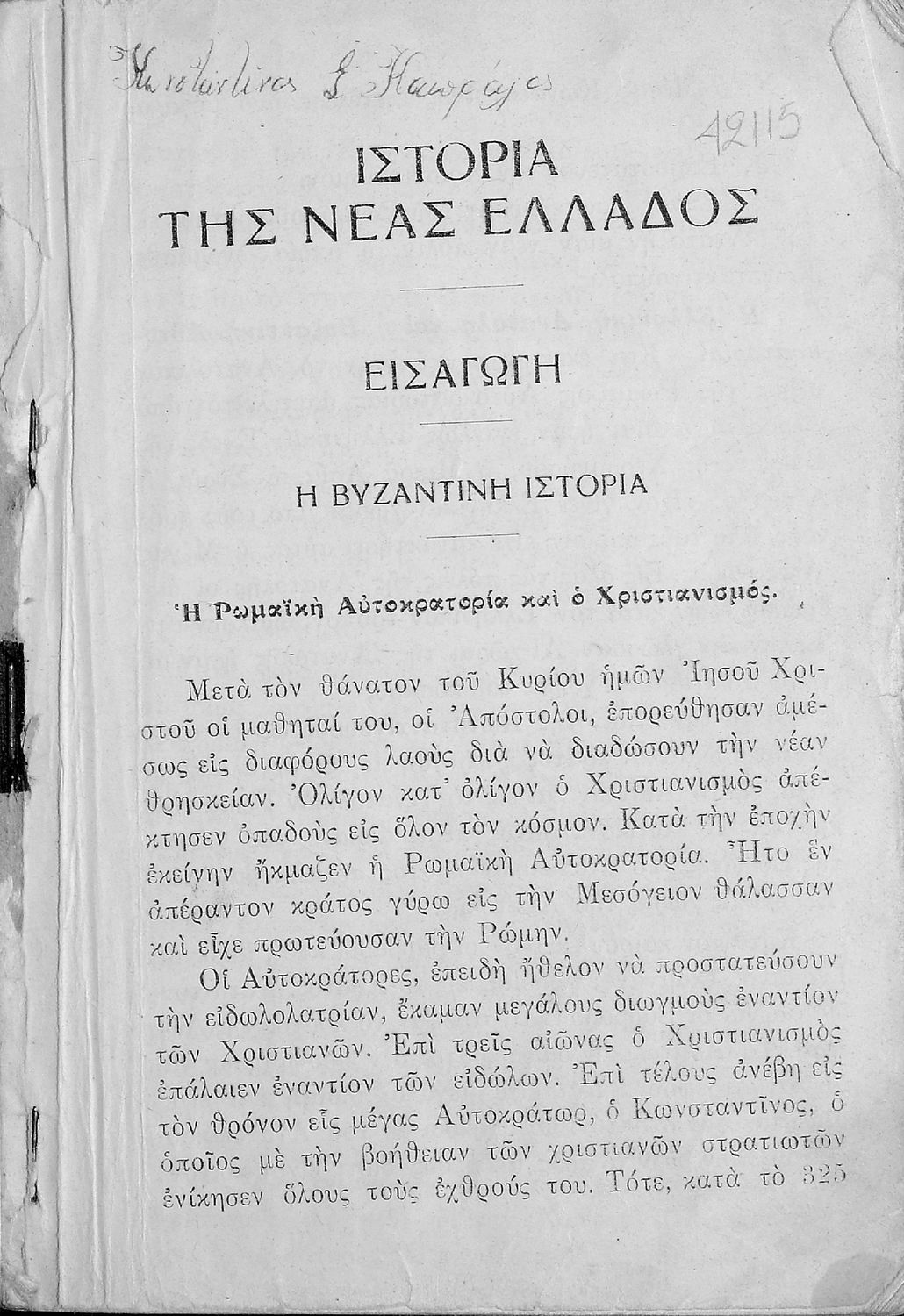 Βαθμίδα εκπαίδευσης: Πρωτοβάθμια Τάξη: ΣΤ' Δημοτικού Μάθημα: Ιστορία Γλώσσα: Απλή καθαρεύουσα Παρουσίαση περιεχομένου: Σχολικό εγχειρίδιο Ιστορίας ΣΤ΄ Δημοτικού που καλύπτει την περίοδο από την ίδρυση της Κωνσταντινούπολης ως τον Α΄ παγκόσμιο Πόλεμο. |
