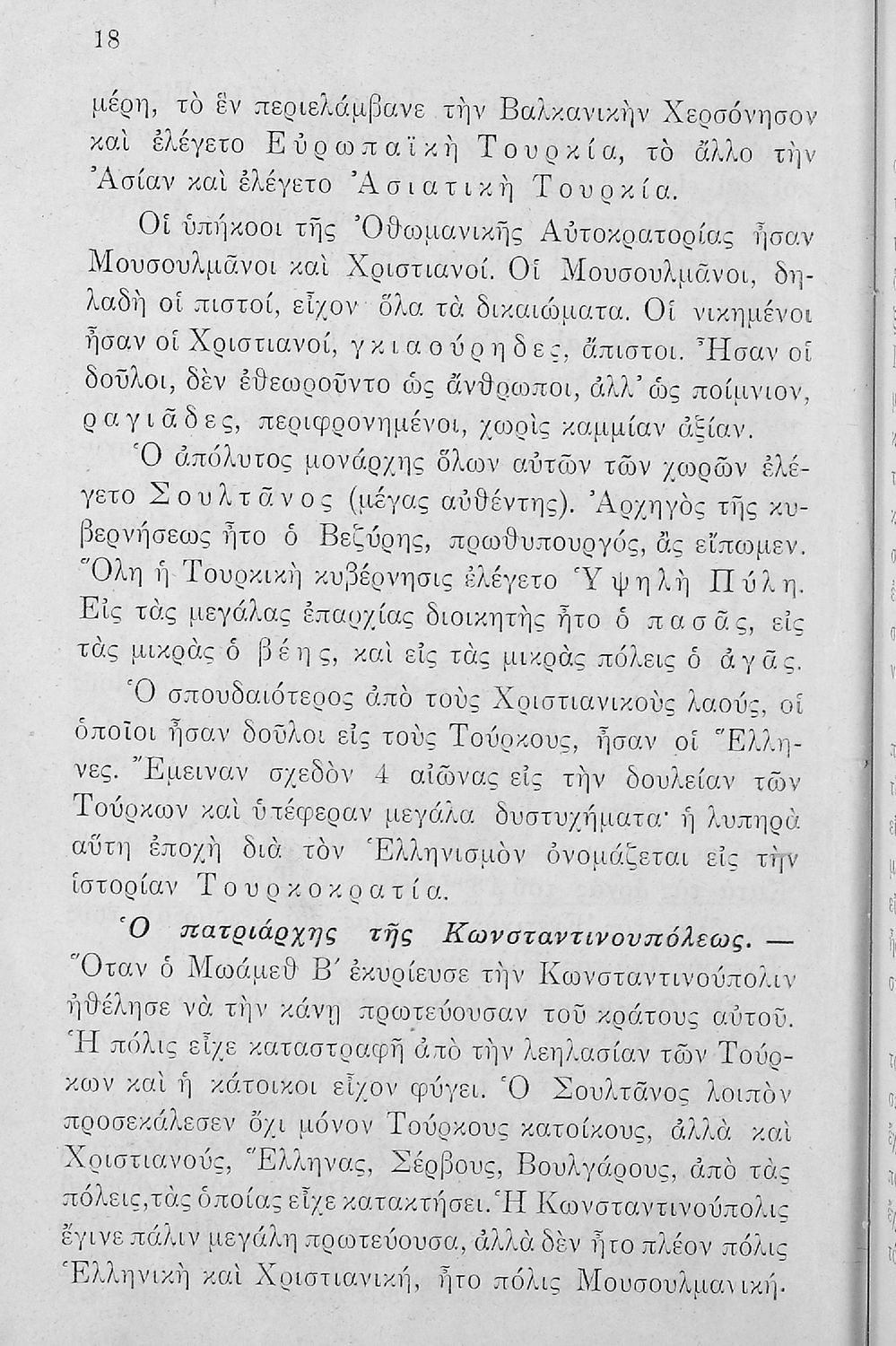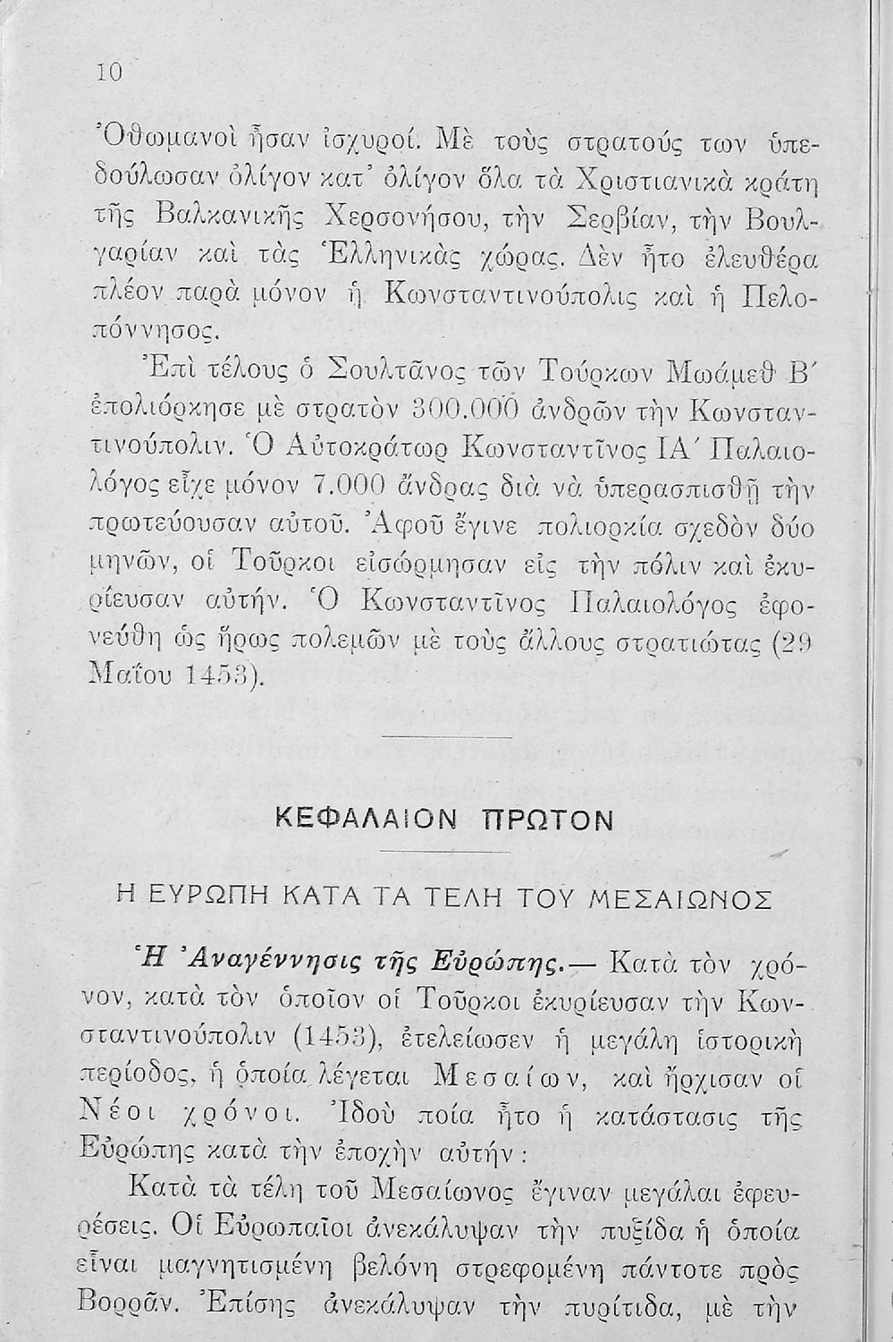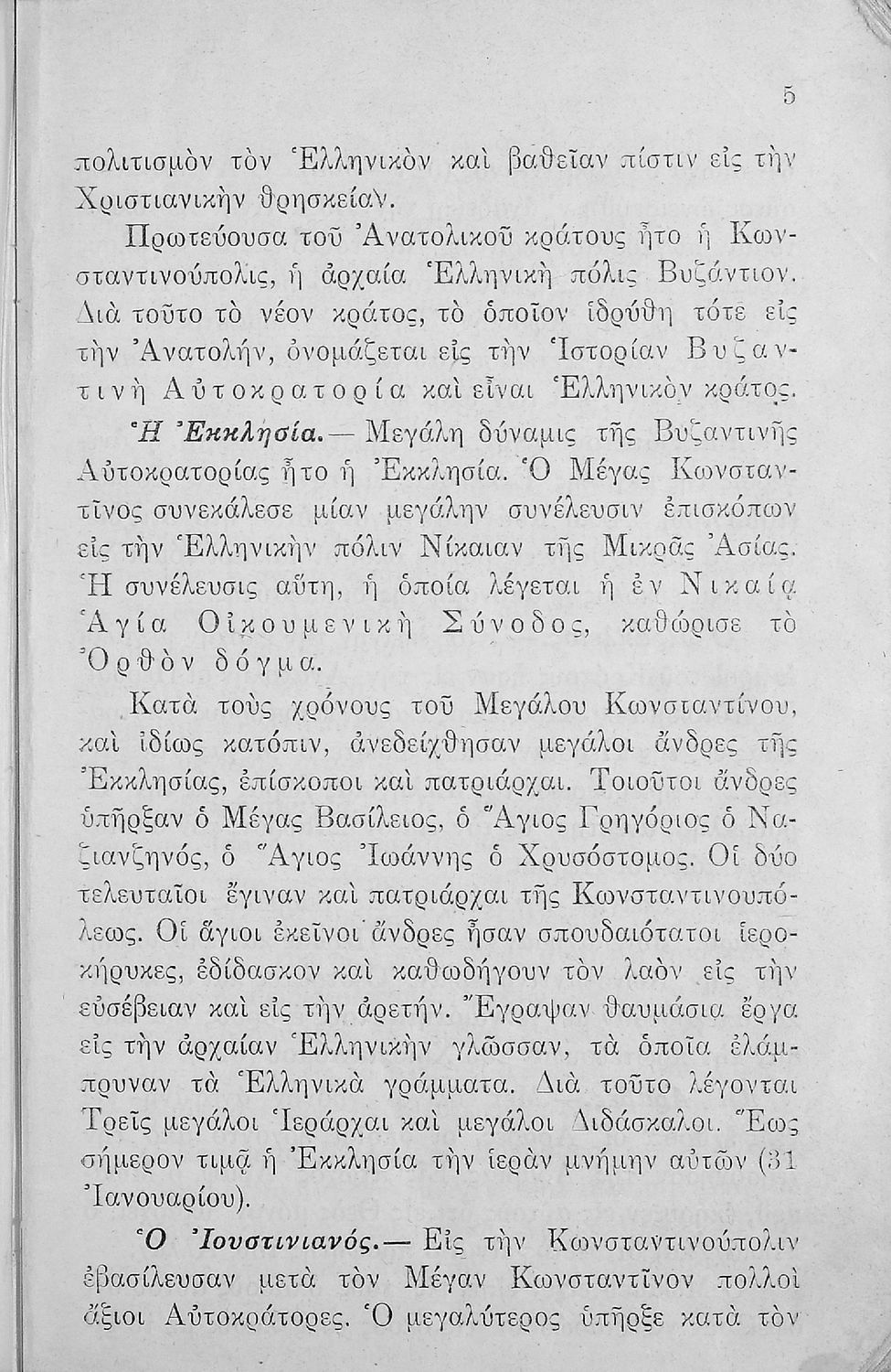 Βαθμίδα εκπαίδευσης: Πρωτοβάθμια Τάξη: ΣΤ' Δημοτικού Μάθημα: Ιστορία Γλώσσα: Απλή καθαρεύουσα Παρουσίαση περιεχομένου: Σχολικό εγχειρίδιο Ιστορίας ΣΤ΄ Δημοτικού που καλύπτει την περίοδο από την ίδρυση της Κωνσταντινούπολης ως τον Α΄ παγκόσμιο Πόλεμο. |