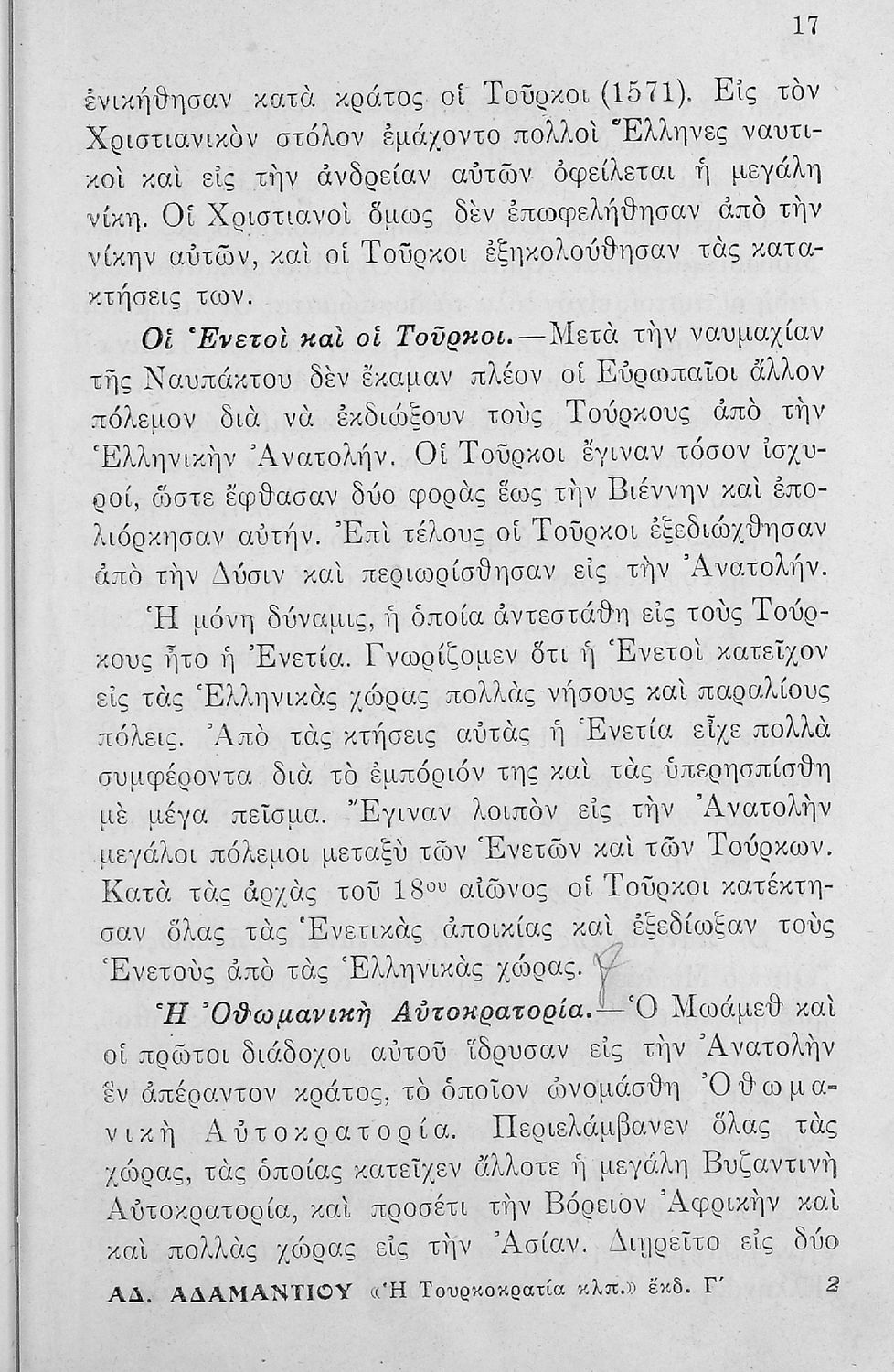 Κωδικός αναγνώρισης: 01-42115 Τίτλος: Η τουρκοκρατία και η ελληνική επανάστασις Συγγραφέας: ΑΔ. Ι. Αδαμαντίου Μέγεθος και υπόστρωμα: Σχολικό εγχειρίδιο, σκληρό εξώφυλλο, 163 σελίδες. Σκίτσα και χάρτες (ασπρόμαυρα). |