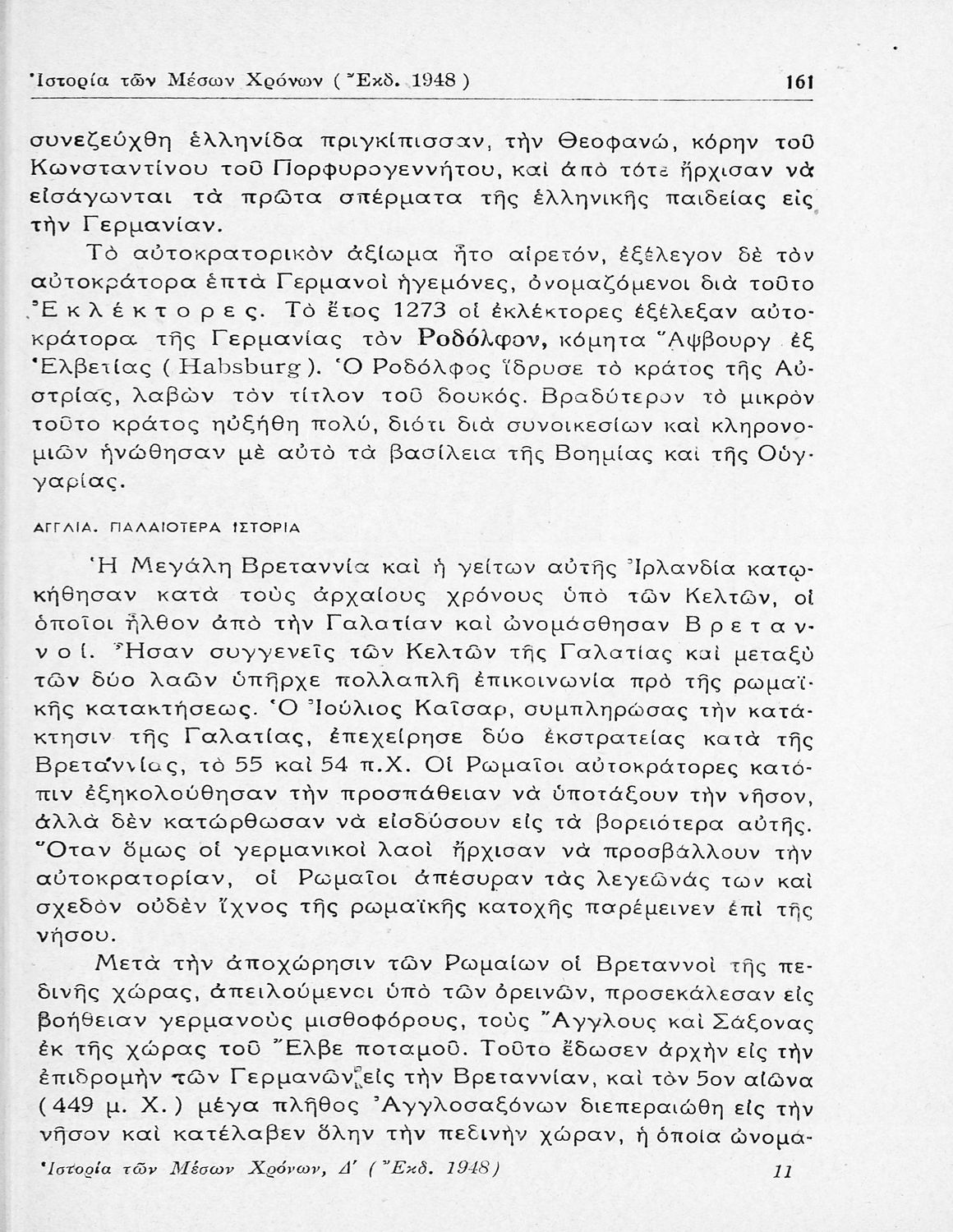 Ιστορία των Μέσων Χρόνων δια την Δ' Τάξιν του Εξαταξίου Γυμνασίου