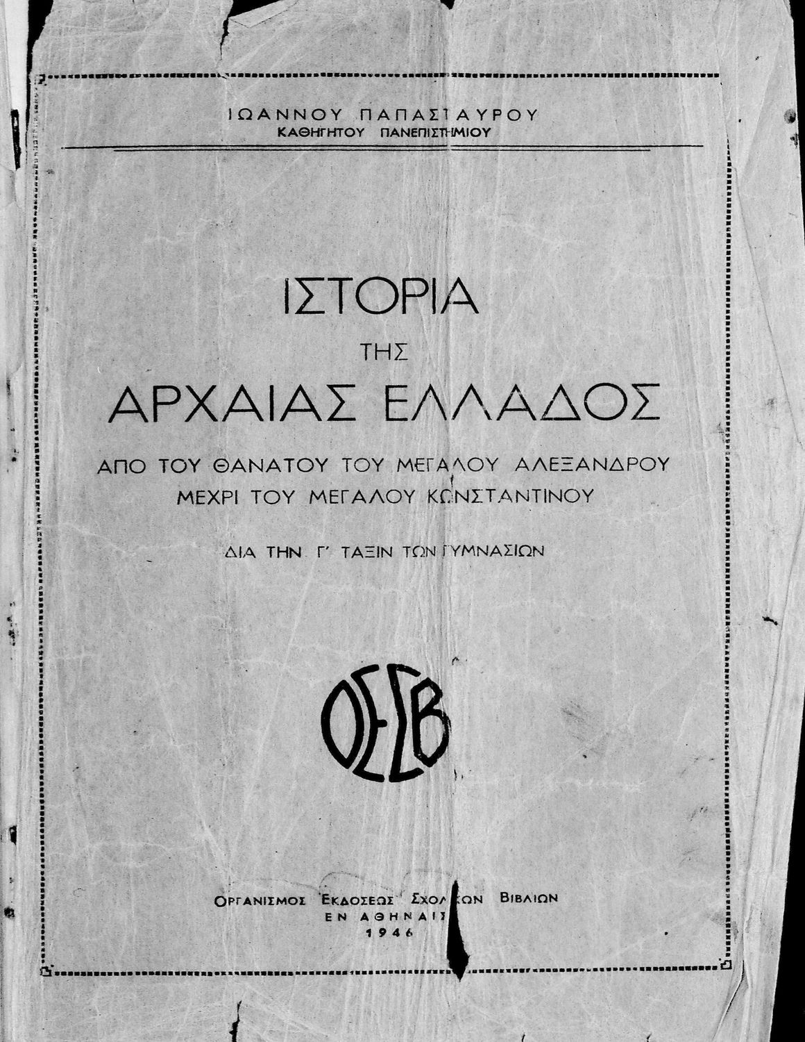 Τίτλος: Ιστορία της αρχαίας Ελλάδος. Από του θανάτου του Μεγάλου Αλεξάνδρου μέχρι του Μεγάλου Κωνσταντίνου. Δια την Γ΄ Τάξιν των Γυμνασίων