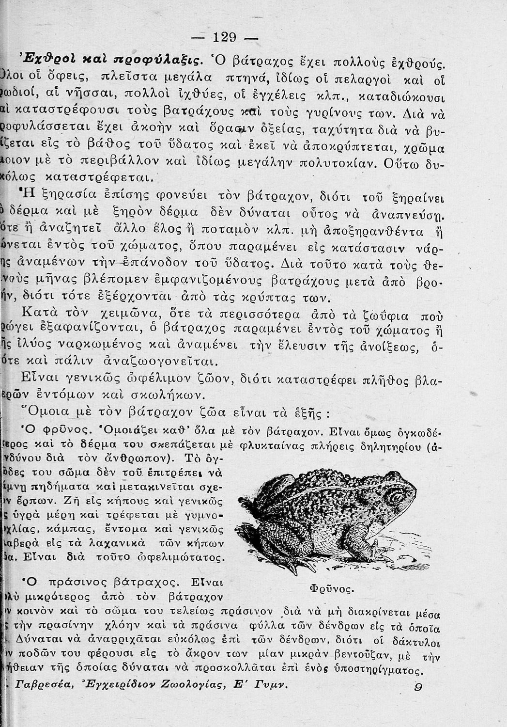 Σχολικό εγχειρίδιο Ζωολογίας για την Γ΄ Γυμνασίου χωρισμένο σε δύο ενότητες: την περιγραφική και τη γενική ζωολογία. Ο συγγραφέας ήταν πρώην καθηγητής πανεπιστημίου.