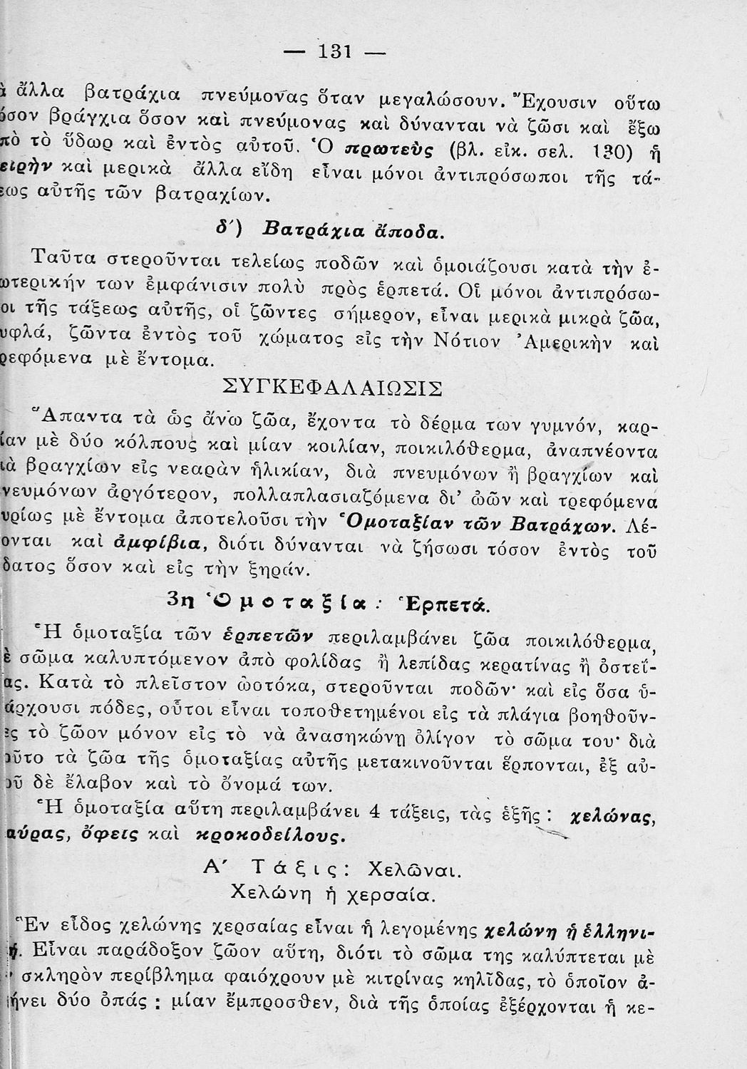 Σχολικό εγχειρίδιο Ζωολογίας για την Γ΄ τάξη των Εξαταξίων Γυμνασίων που παρουσιάζει τα διάφορα ζώα ανάλογα με την συνομοταξία στην οποία ανήκουν.