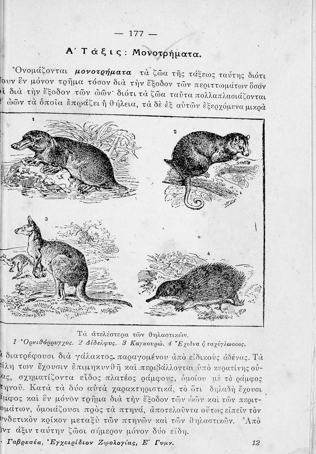 Τίτλος: Εγχειρίδιον ζωολογίας προς χρήσιν των μαθητών της Ε΄ τάξεως των Οκταταξίων Γυμνασίων