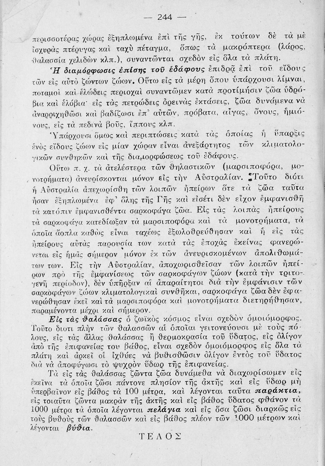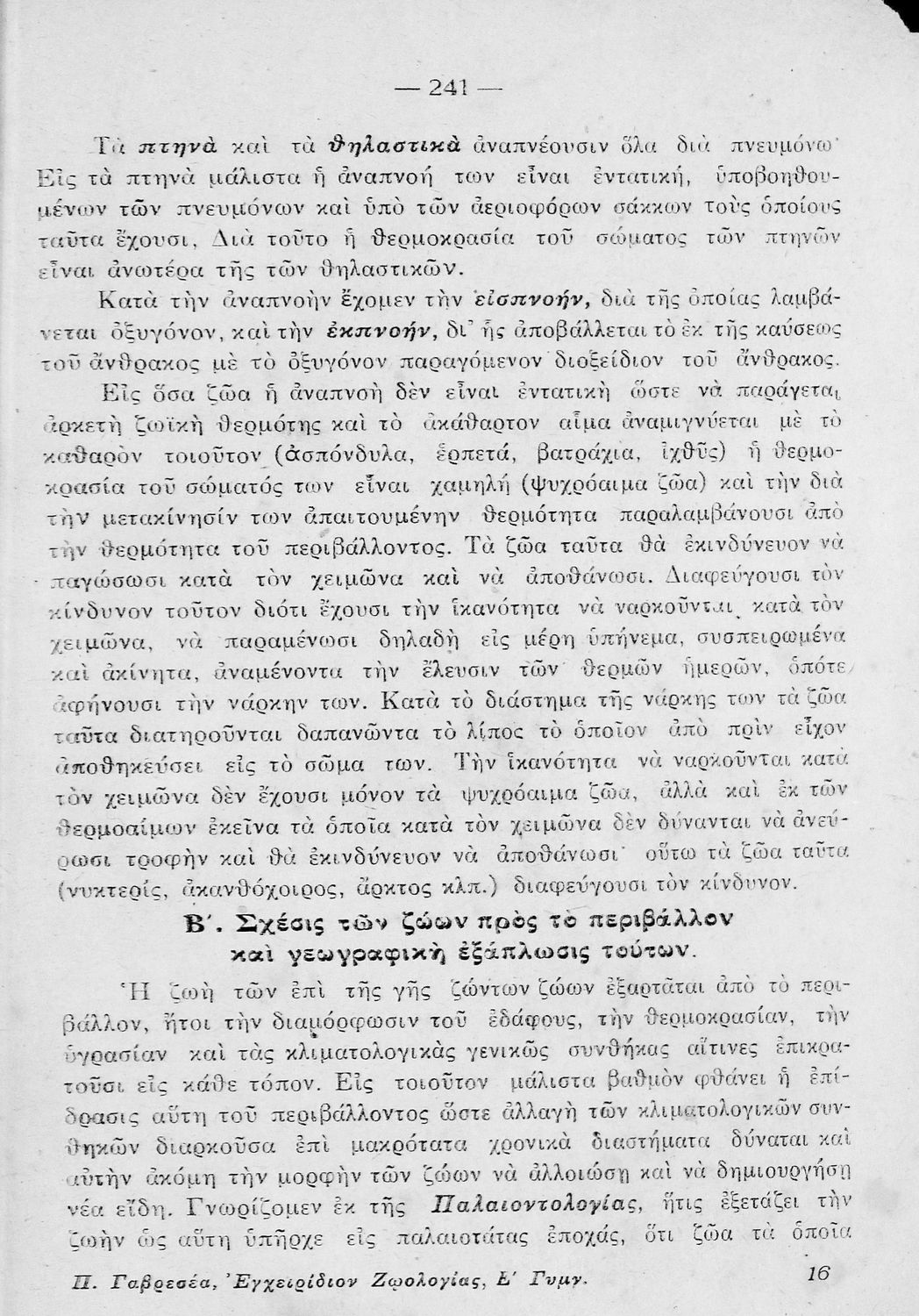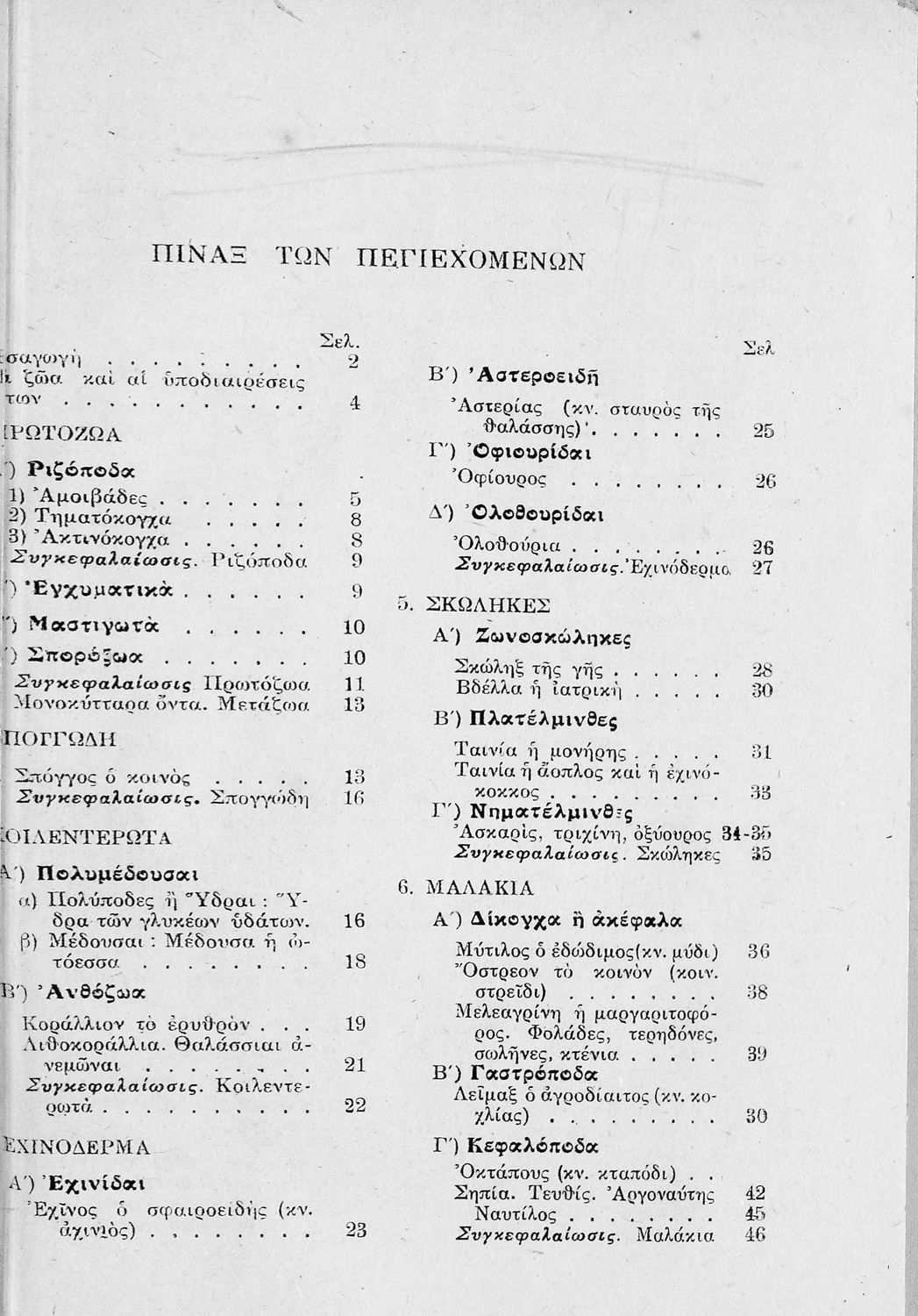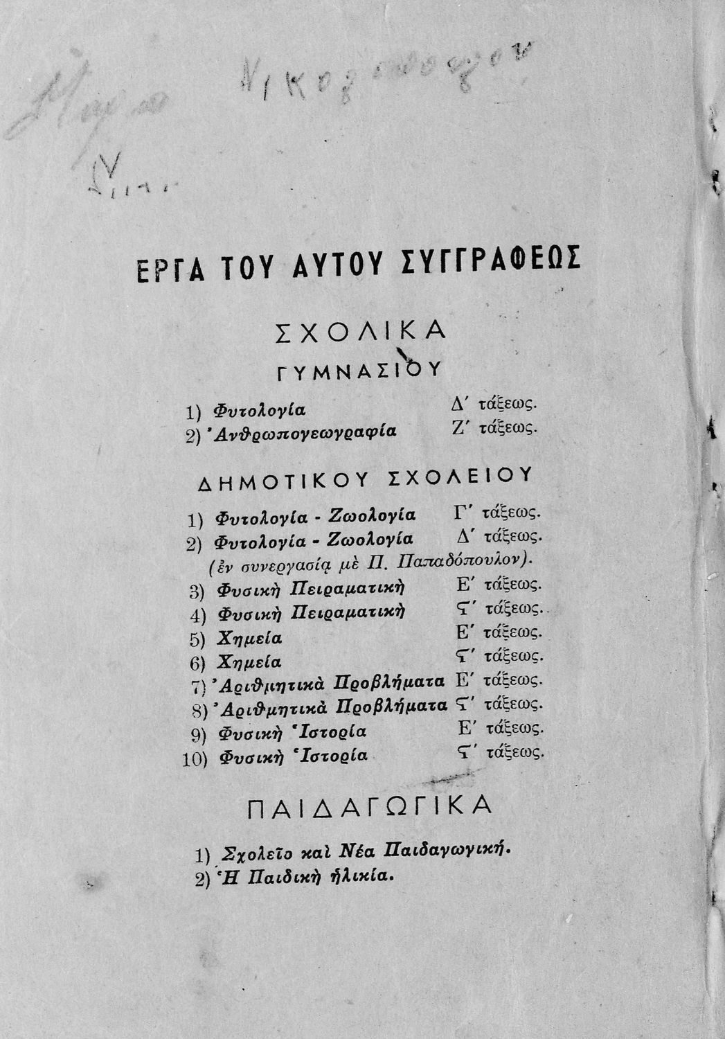 Σχολικό εγχειρίδιο Ζωολογίας για την Γ΄ Γυμνασίου χωρισμένο σε δύο ενότητες: την περιγραφική και τη γενική ζωολογία. Ο συγγραφέας ήταν πρώην καθηγητής πανεπιστημίου.