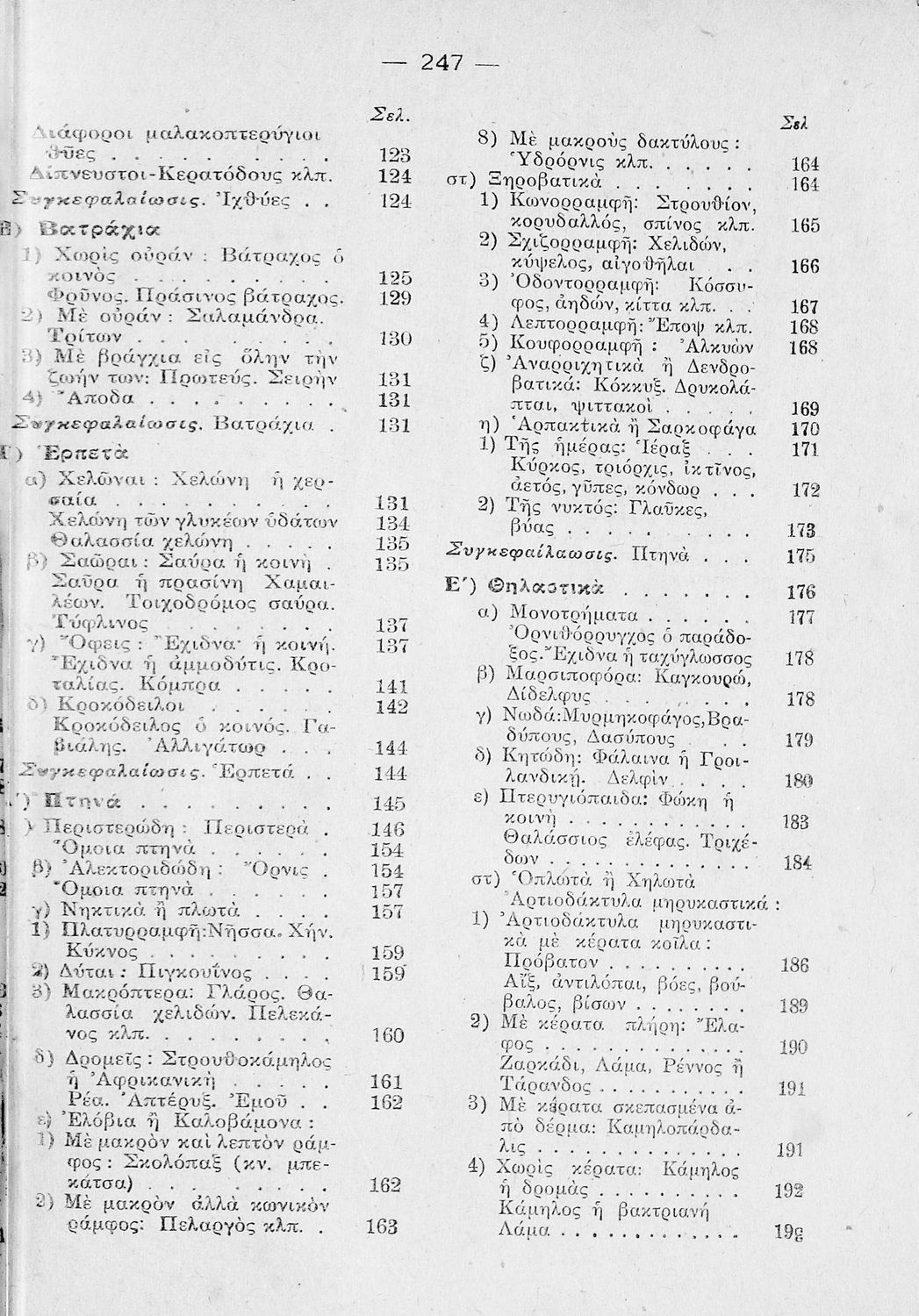 Σχολικό εγχειρίδιο Ζωολογίας για την Γ΄ τάξη των Εξαταξίων Γυμνασίων που παρουσιάζει τα διάφορα ζώα ανάλογα με την συνομοταξία στην οποία ανήκουν.