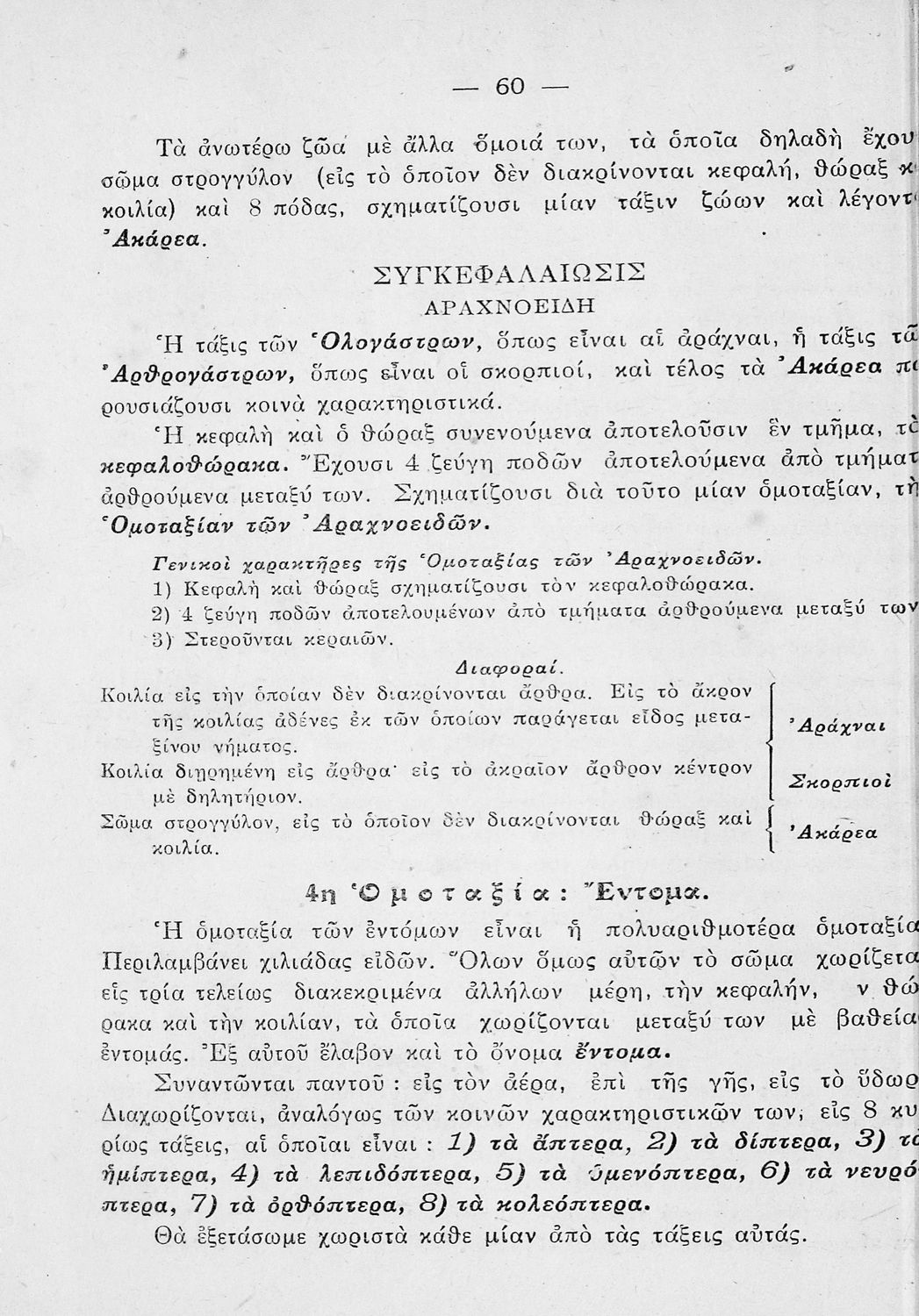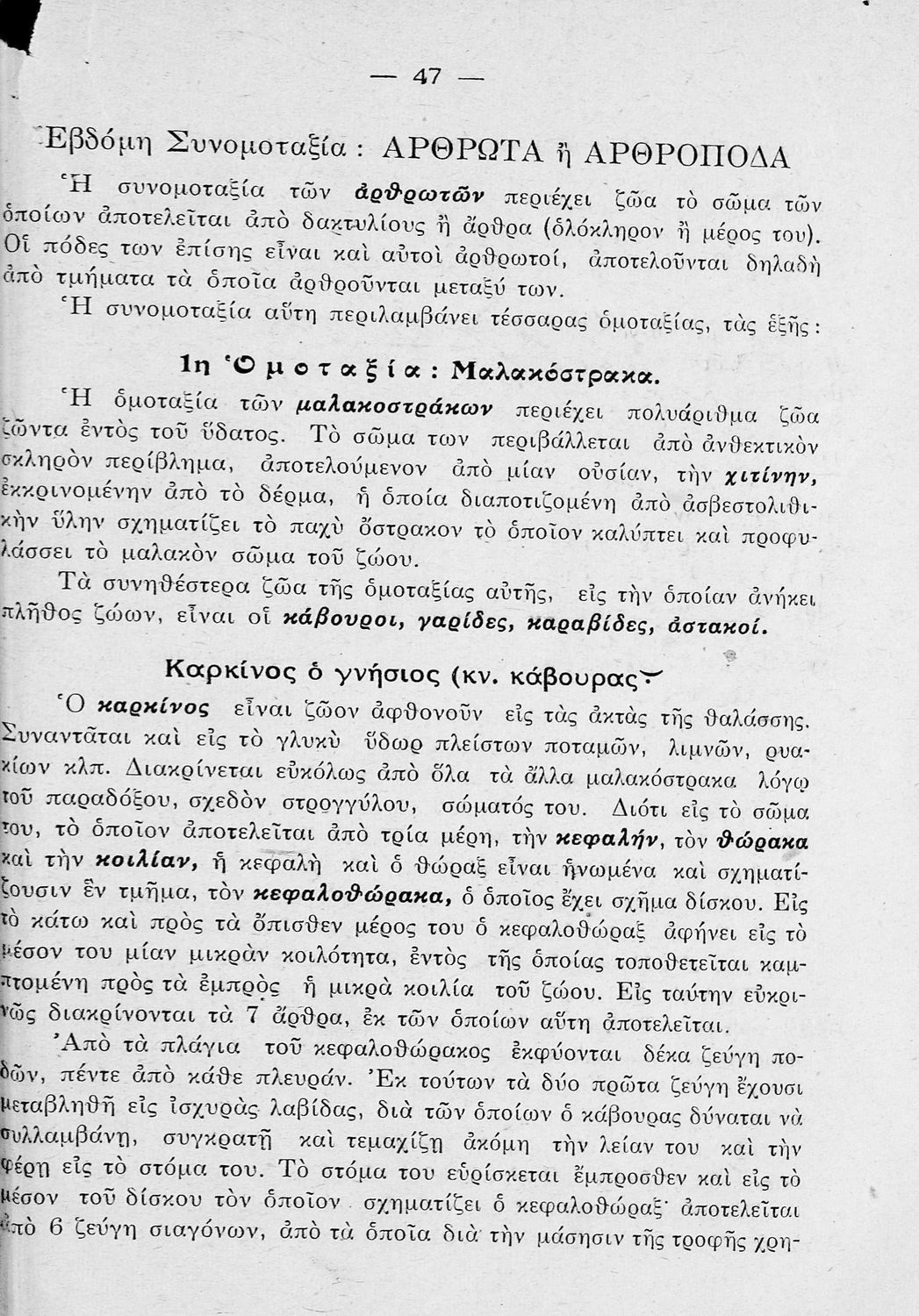 Σχολικό εγχειρίδιο Ζωολογίας για την Γ΄ τάξη των Εξαταξίων Γυμνασίων που παρουσιάζει τα διάφορα ζώα ανάλογα με την συνομοταξία στην οποία ανήκουν.