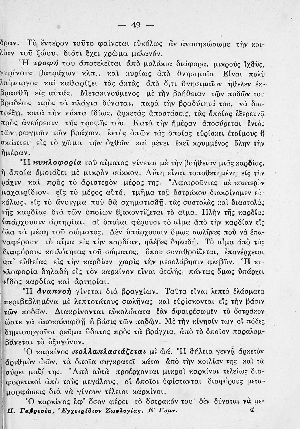 Σχολικό εγχειρίδιο Ζωολογίας για την Γ΄ Γυμνασίου χωρισμένο σε δύο ενότητες: την περιγραφική και τη γενική ζωολογία. Ο συγγραφέας ήταν πρώην καθηγητής πανεπιστημίου.