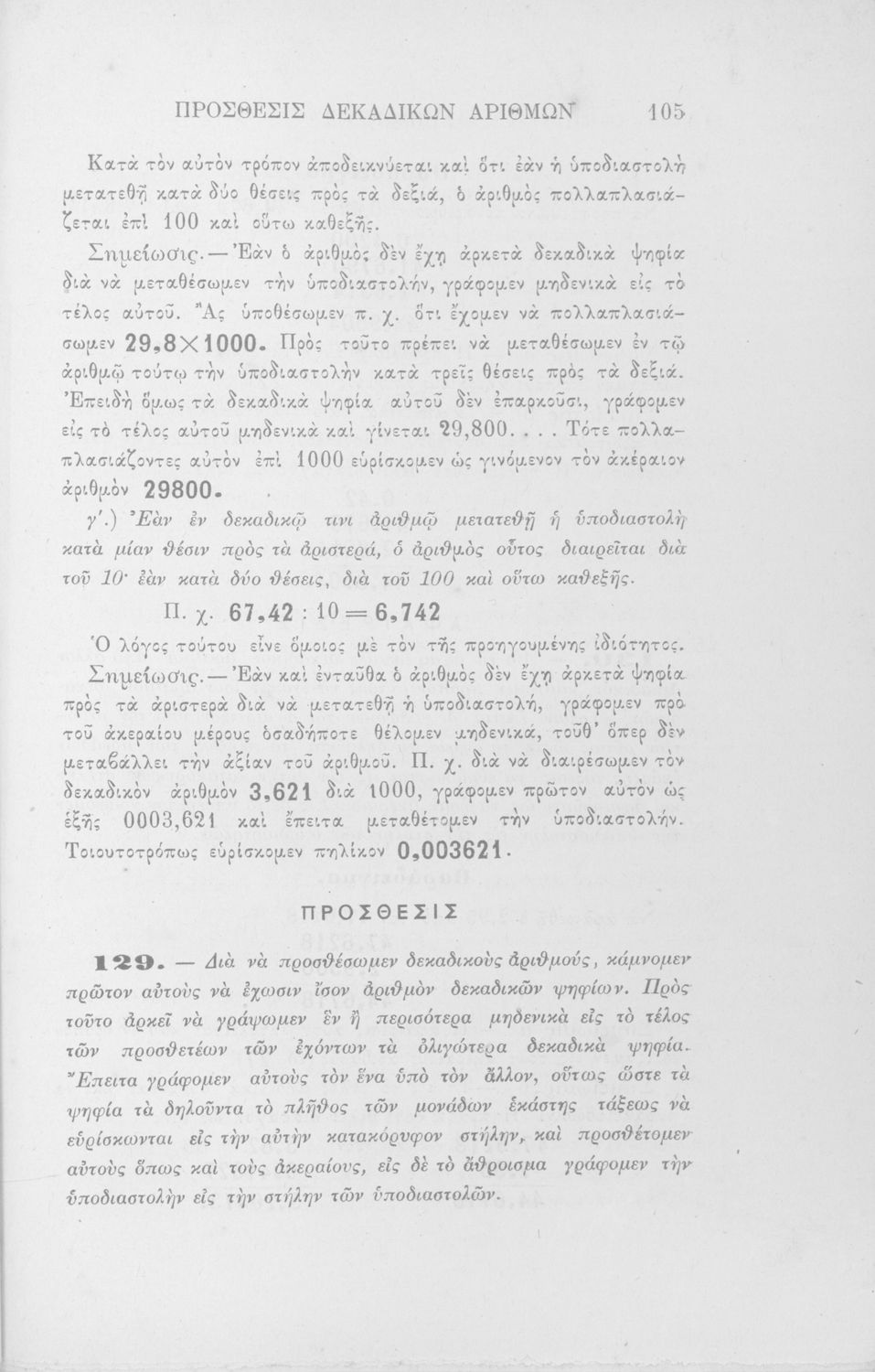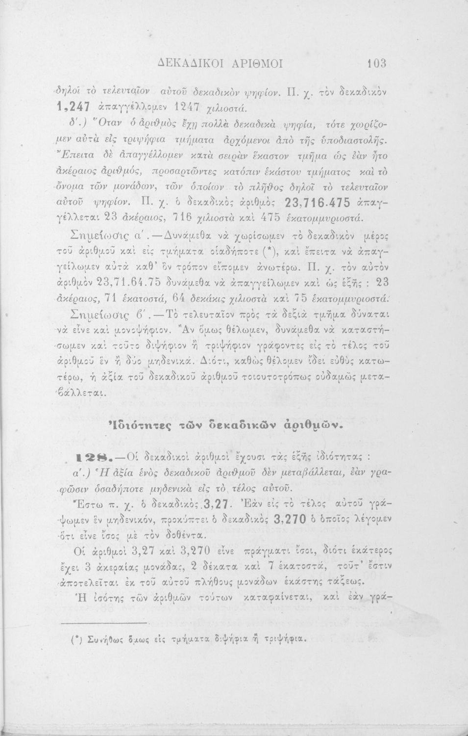 Σχολικό εγχειρίδιο Αριθμητικής για τα Ελληνικά και Αστικά Σχολεία και τα Παρθεναγωγεία που εστιάζει στις αριθμητικές πράξεις, τα κλάσματα, τους δεκαδικούς και συμμιγείς αριθμούς, και τις δυνάμεις. Περιέχει και