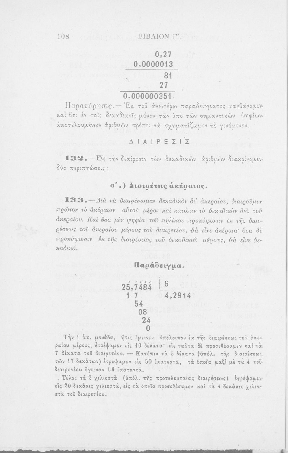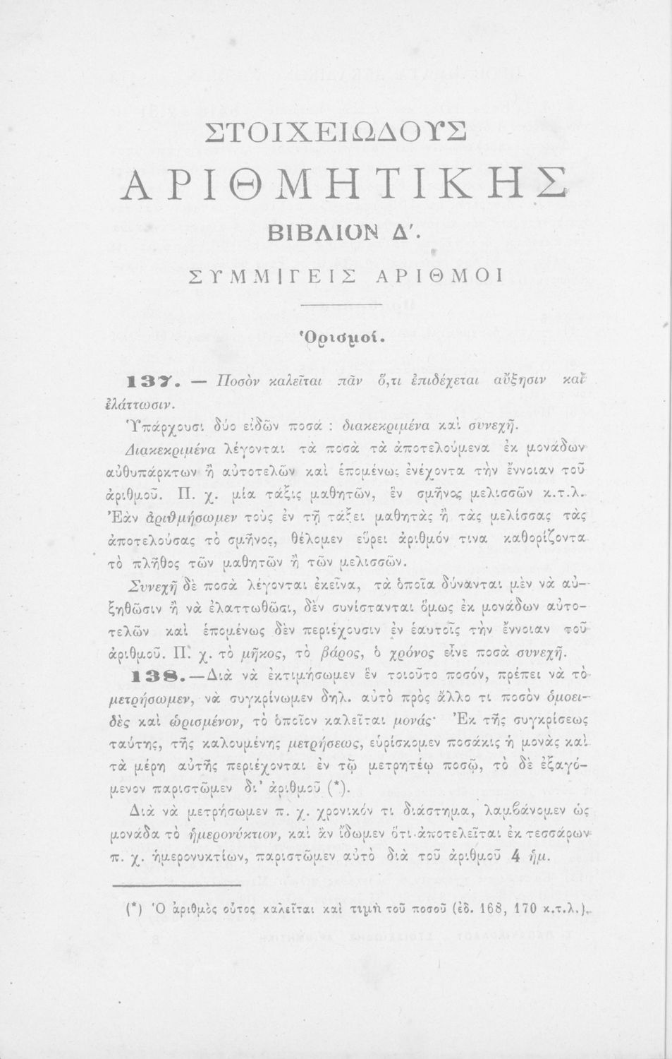 Σχολικό εγχειρίδιο Αριθμητικής για τα Ελληνικά σχολεία και Παρθεναγωγεία που περιέχει θεωρία και ασκήσεις.