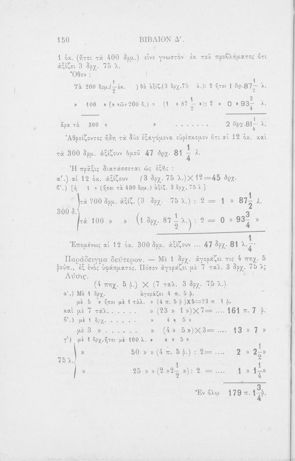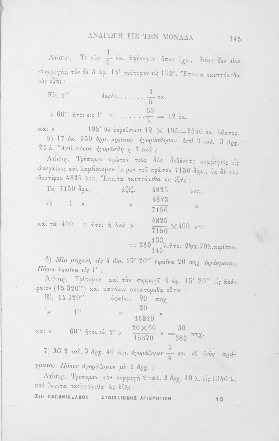 Σχολικό εγχειρίδιο Αριθμητικής για τα Ελληνικά Σχολεία που εστιάζει στις αριθμητικές πράξεις με ακέραιους αριθμούς και κλάσματα και περιλαμβάνει στοιχεία λογιστικής και καταστιχογραφίας.