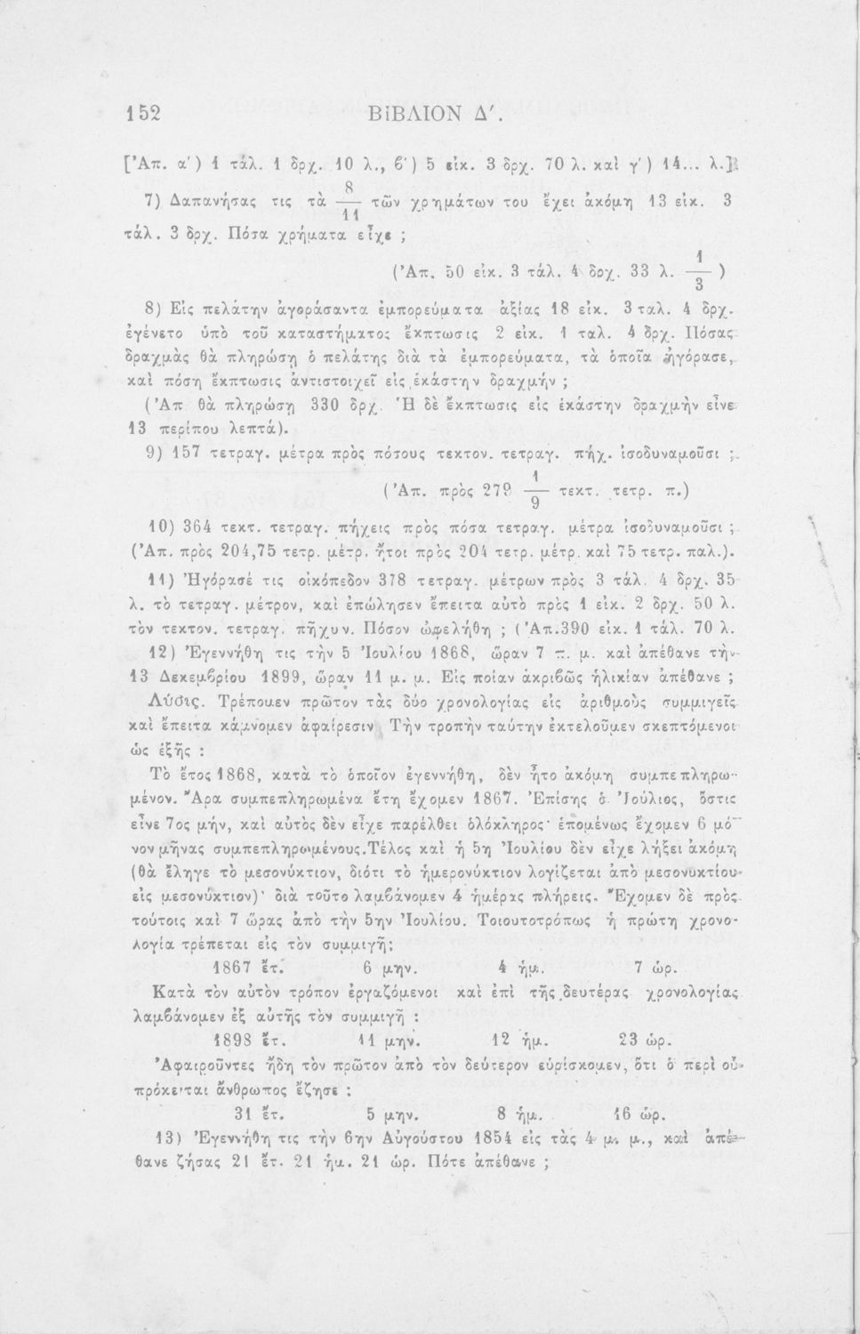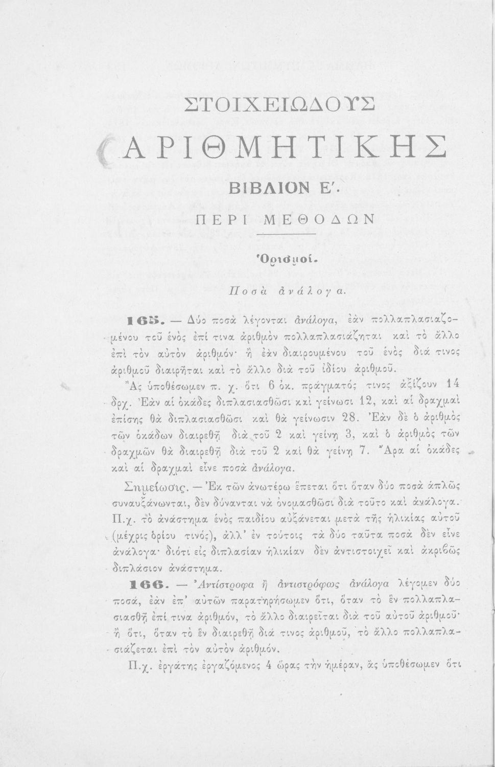 Σχολικό εγχειρίδιο Αριθμητικής για τα Ελληνικά σχολεία και Παρθεναγωγεία που περιέχει θεωρία και ασκήσεις.