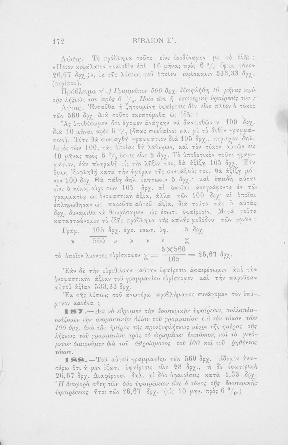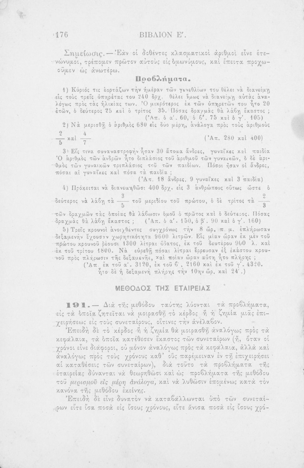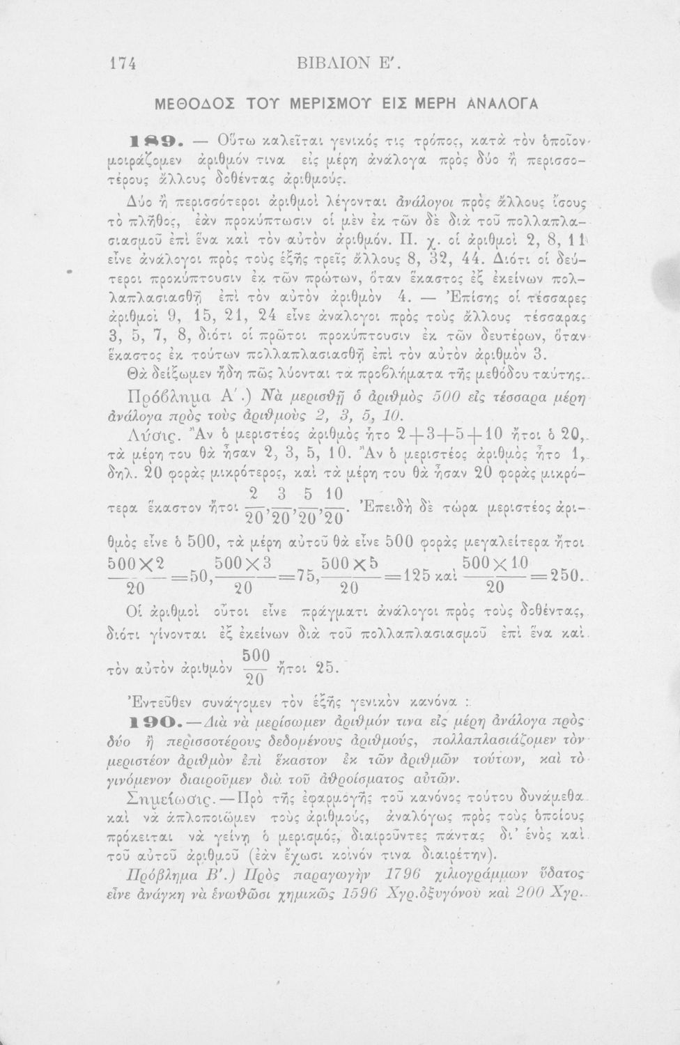Σχολικό εγχειρίδιο Αριθμητικής για τα Ελληνικά σχολεία και Παρθεναγωγεία που περιέχει θεωρία και ασκήσεις.