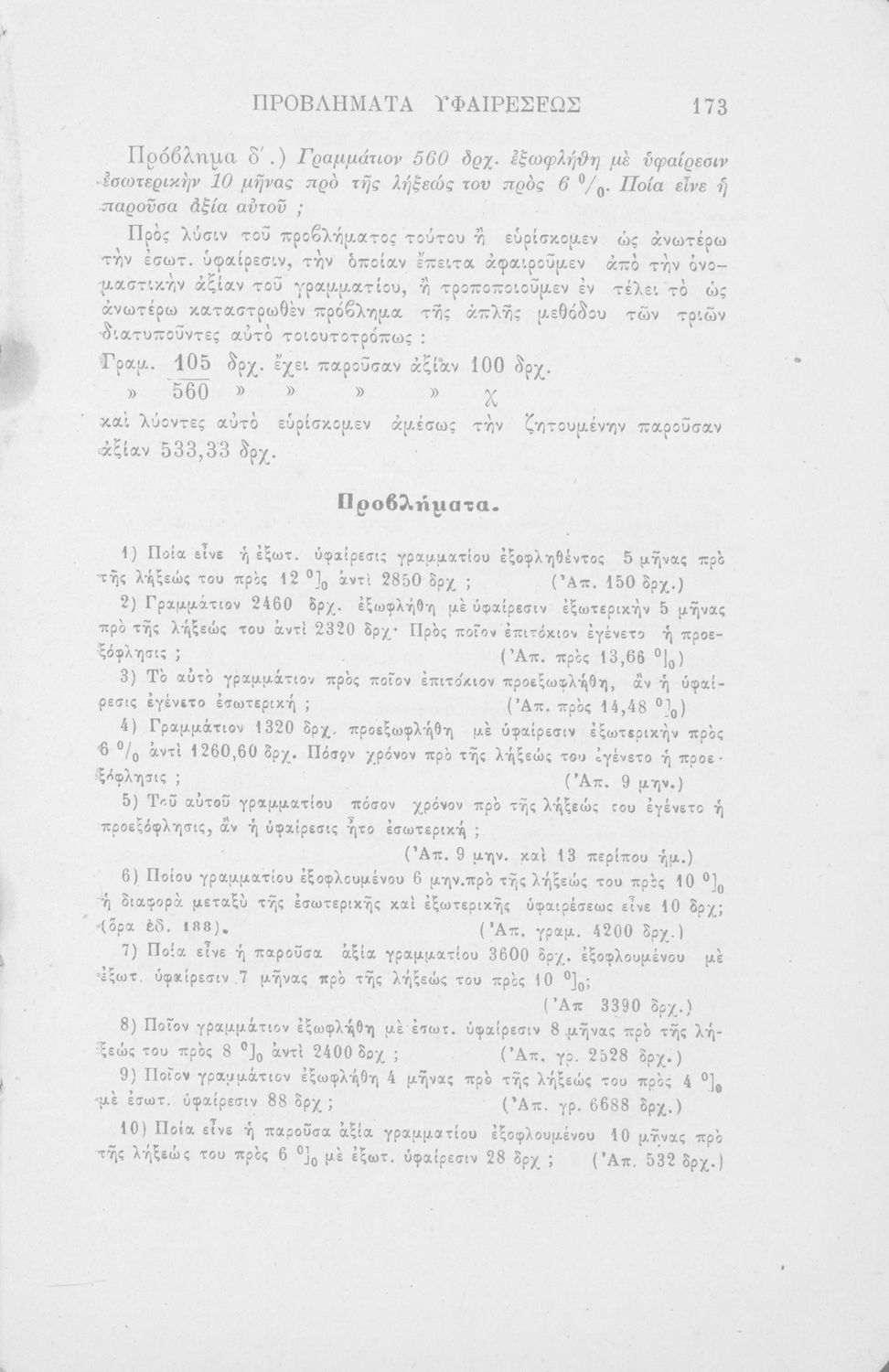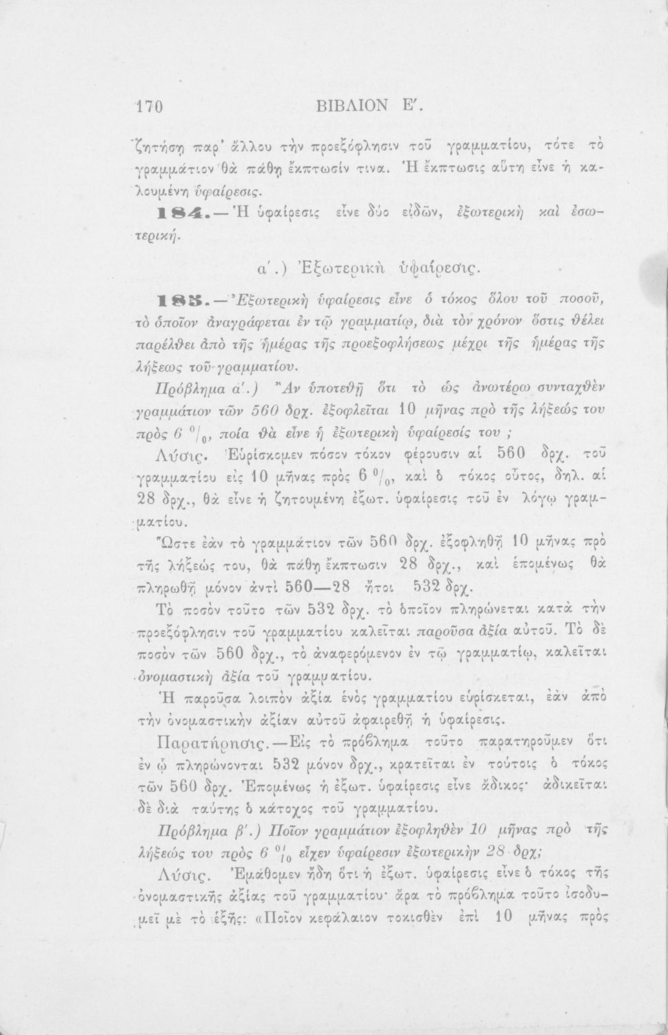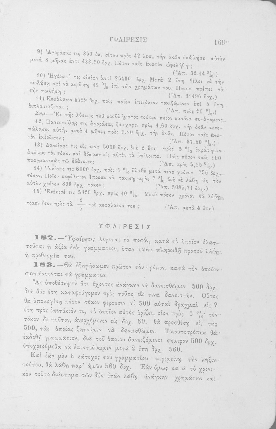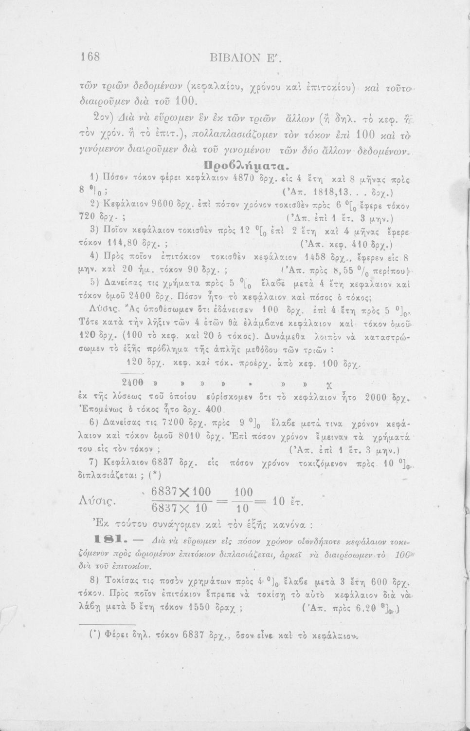 Σχολικό εγχειρίδιο Αριθμητικής για τα Ελληνικά σχολεία και Παρθεναγωγεία που περιέχει θεωρία και ασκήσεις.