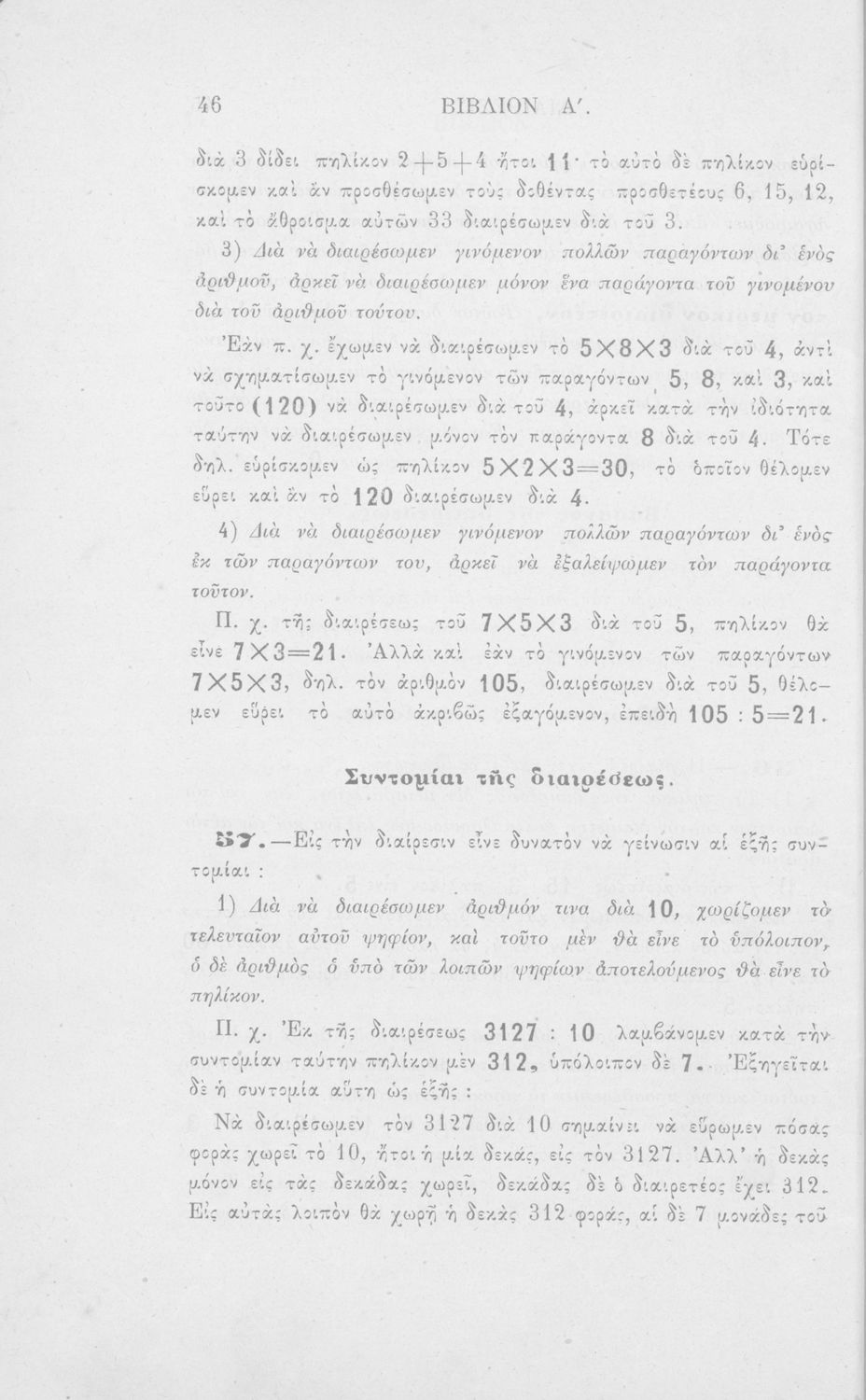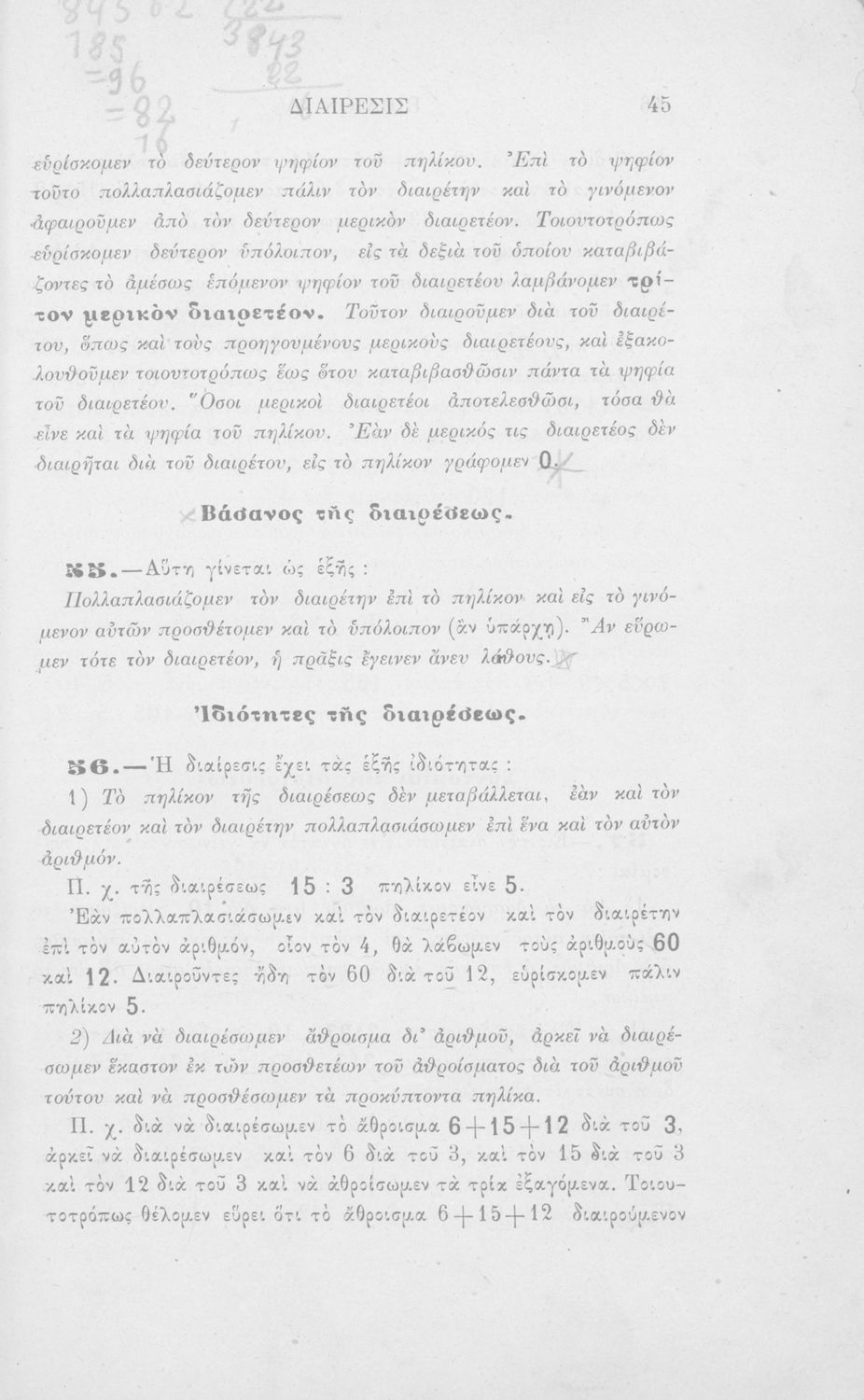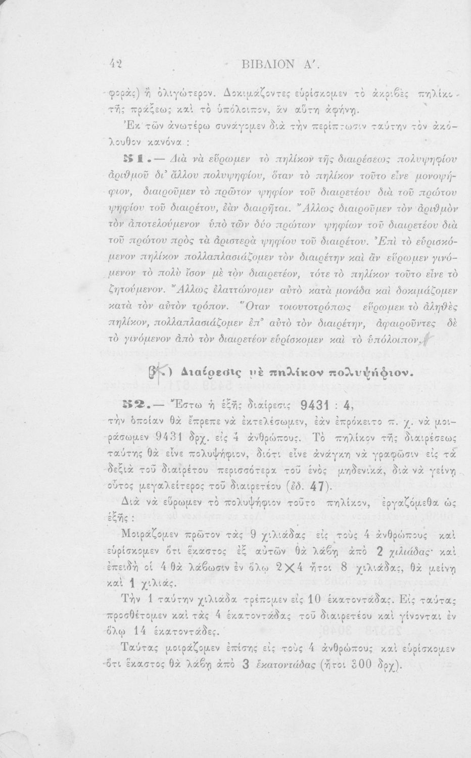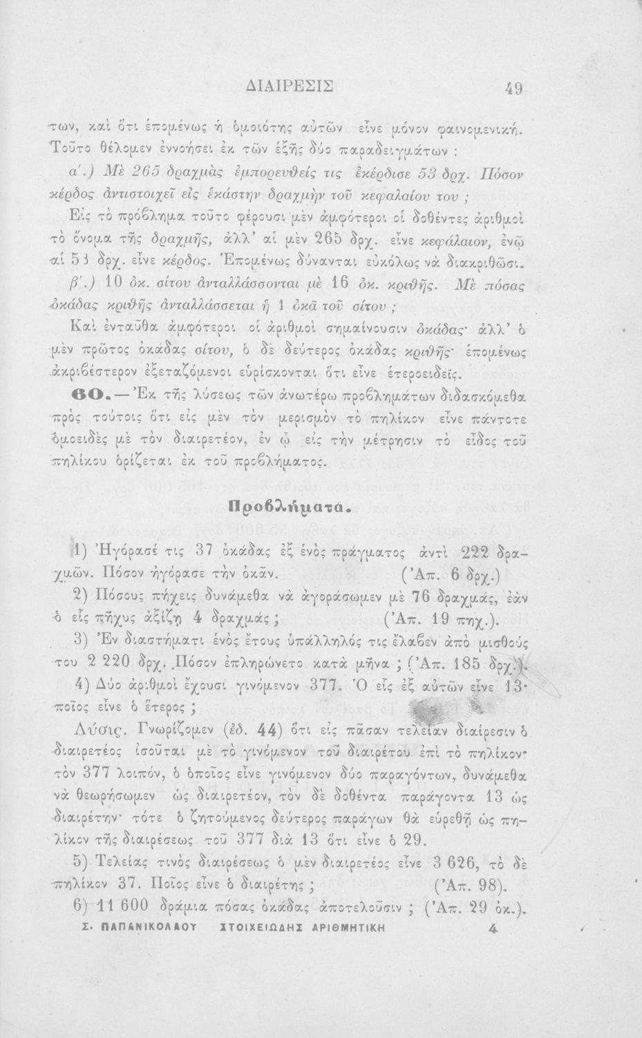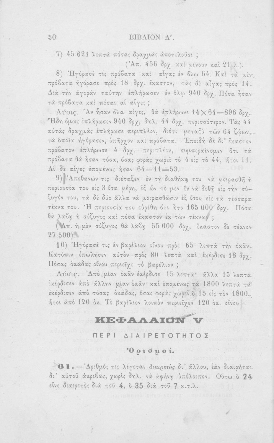 Σχολικό εγχειρίδιο Αριθμητικής για τα Ελληνικά σχολεία και Παρθεναγωγεία που περιέχει θεωρία και ασκήσεις.