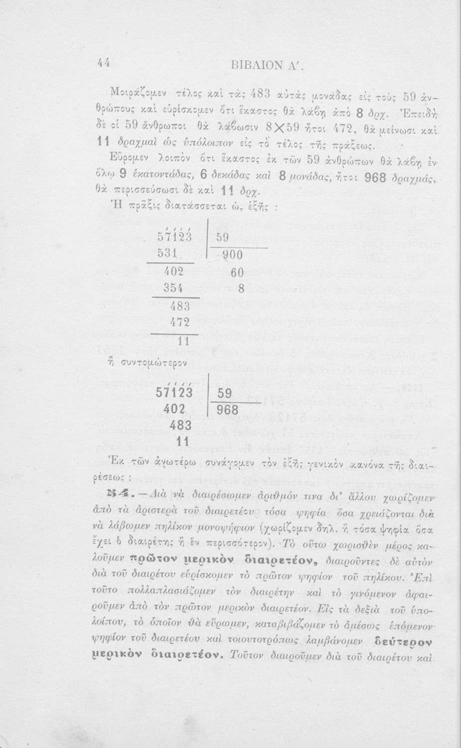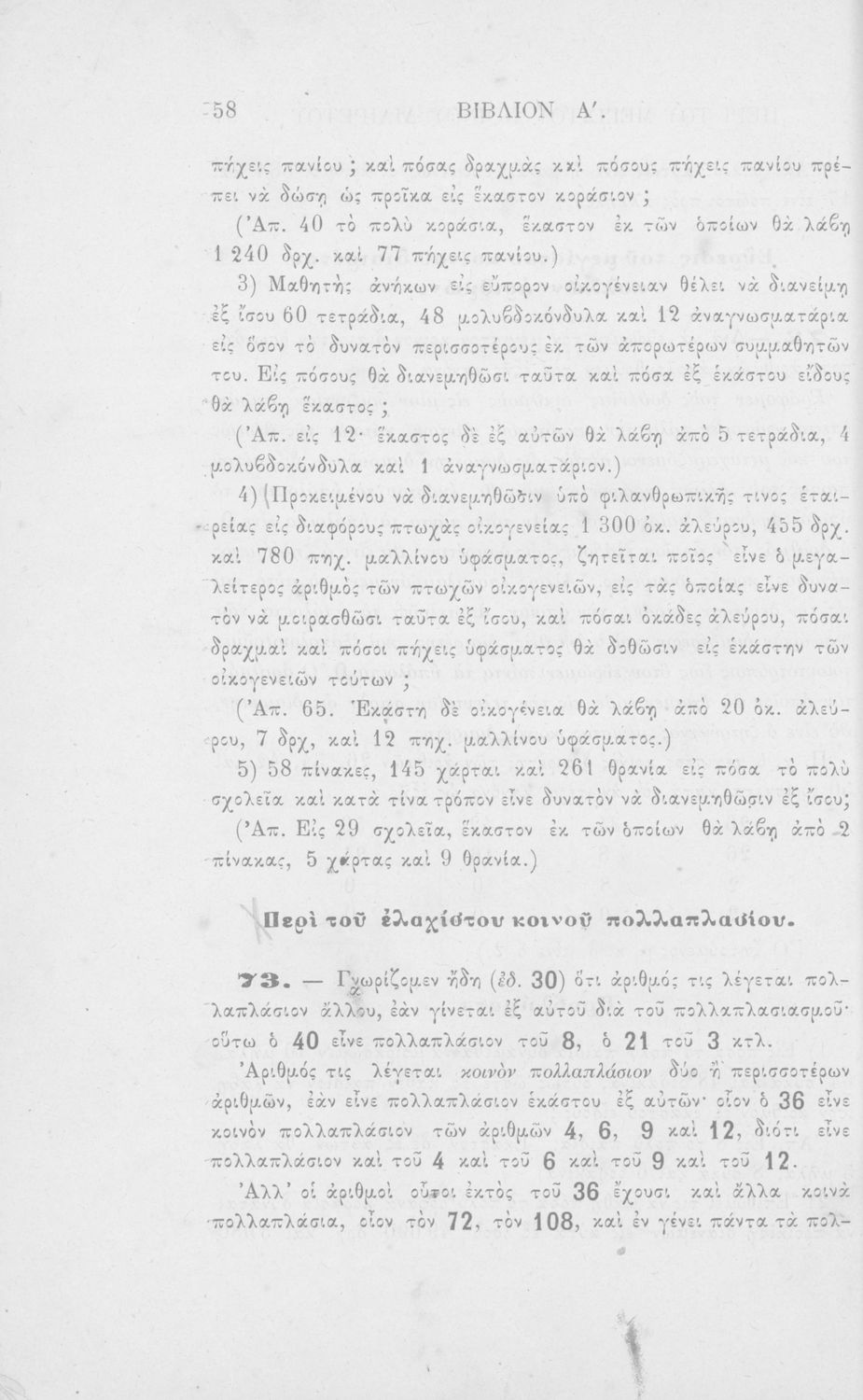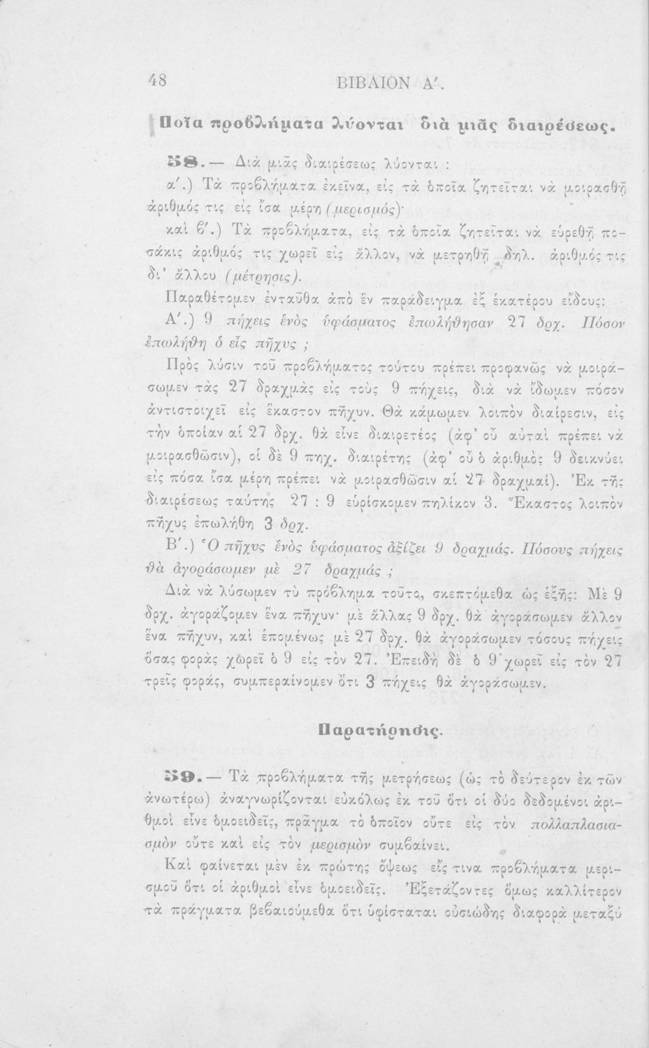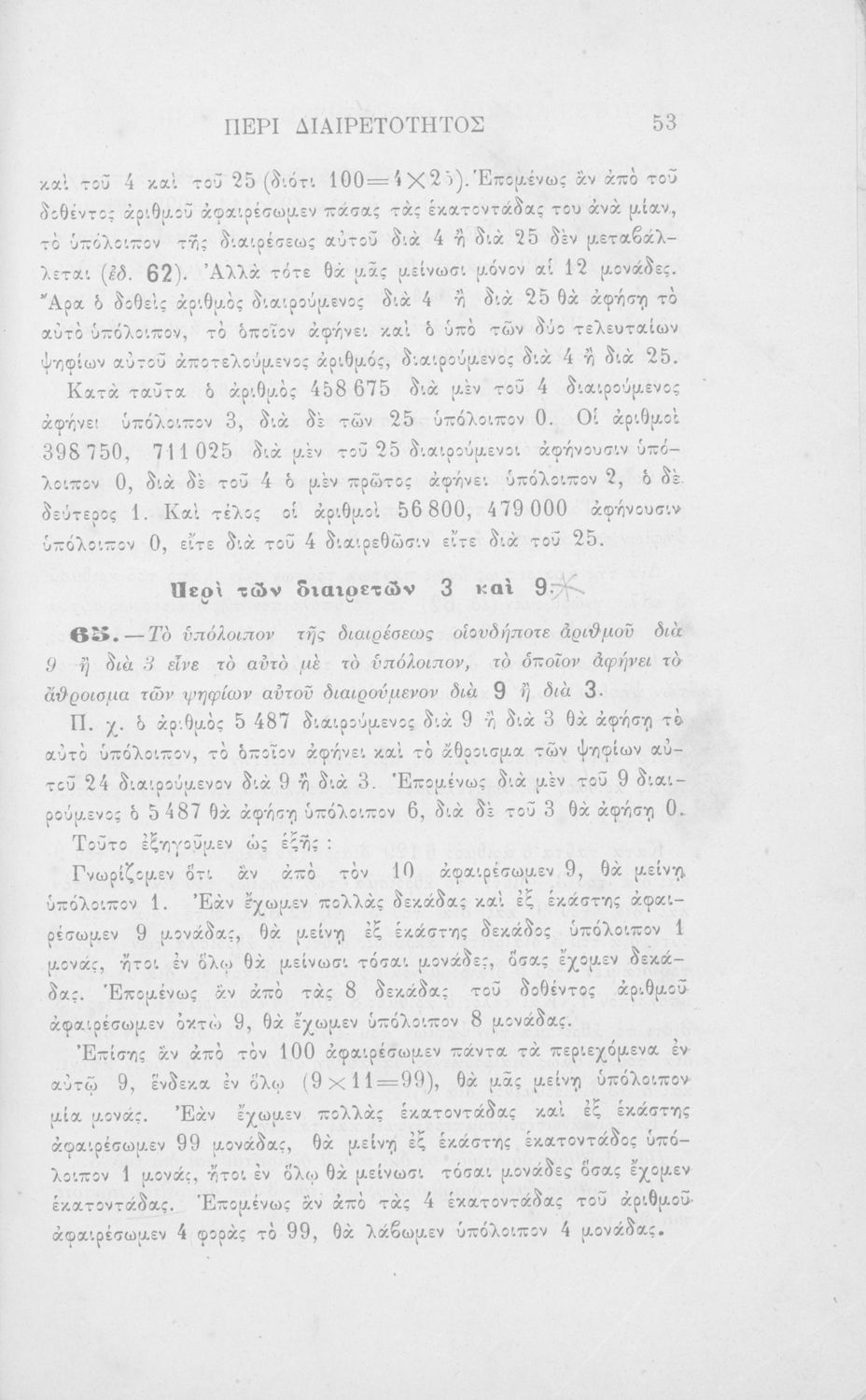 Σχολικό εγχειρίδιο Αριθμητικής για τα Ελληνικά σχολεία και Παρθεναγωγεία που περιέχει θεωρία και ασκήσεις.