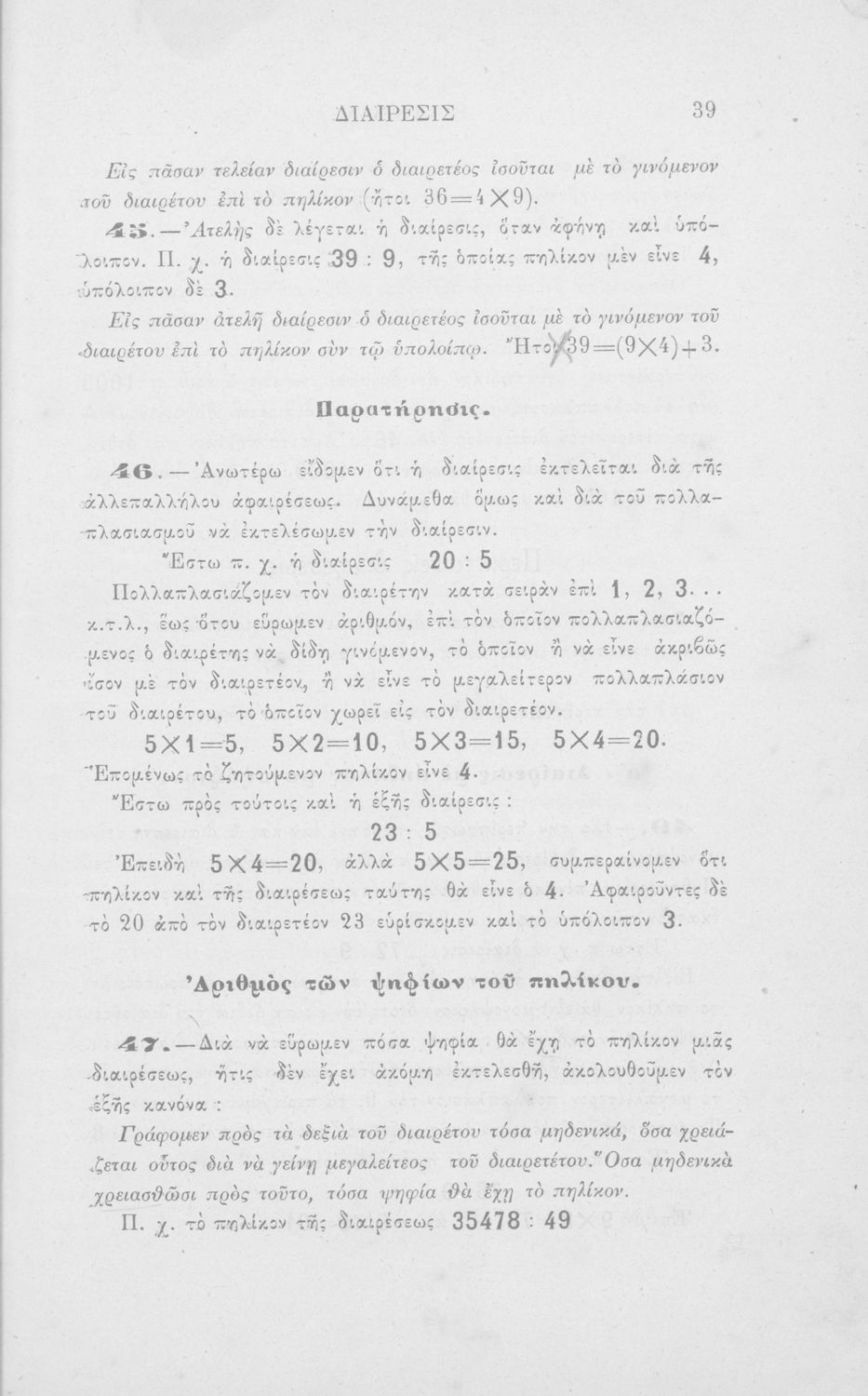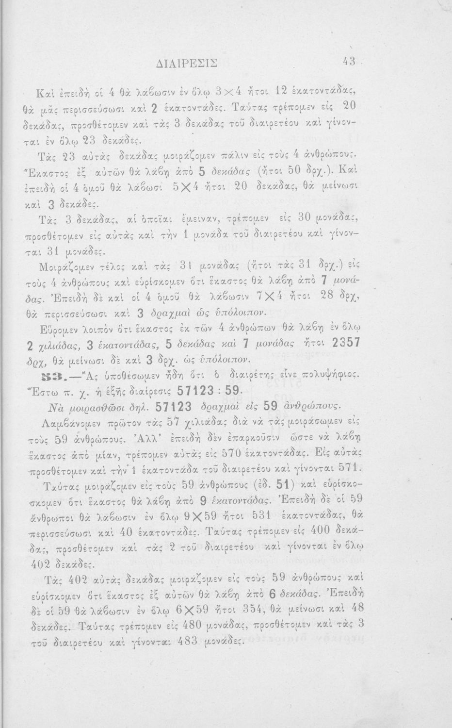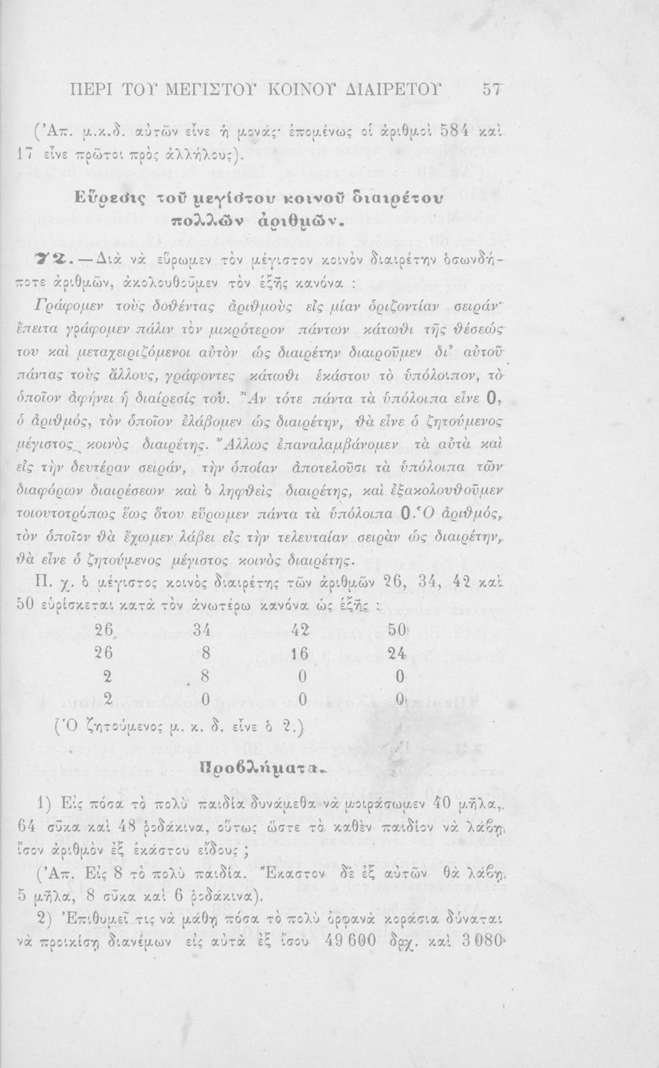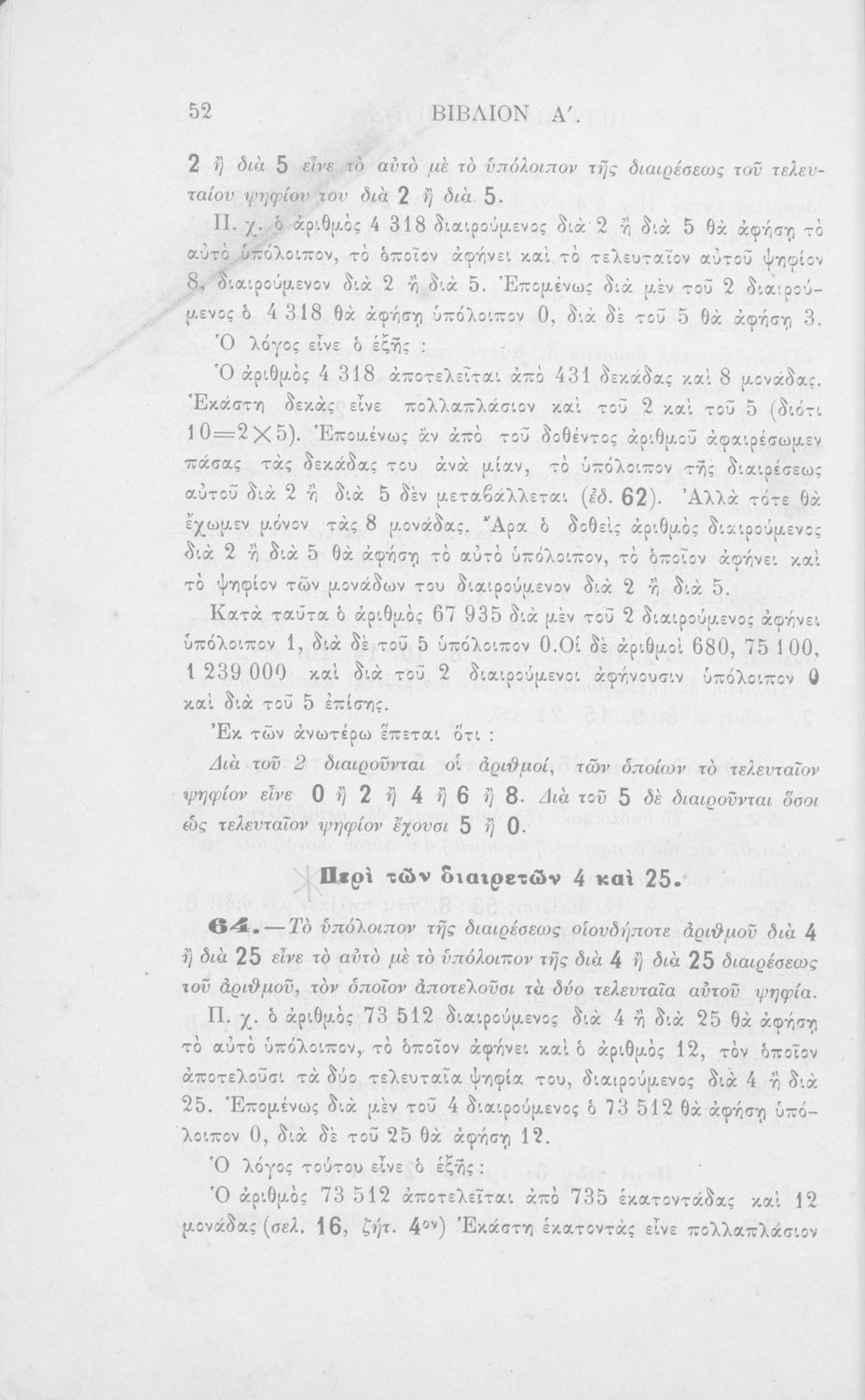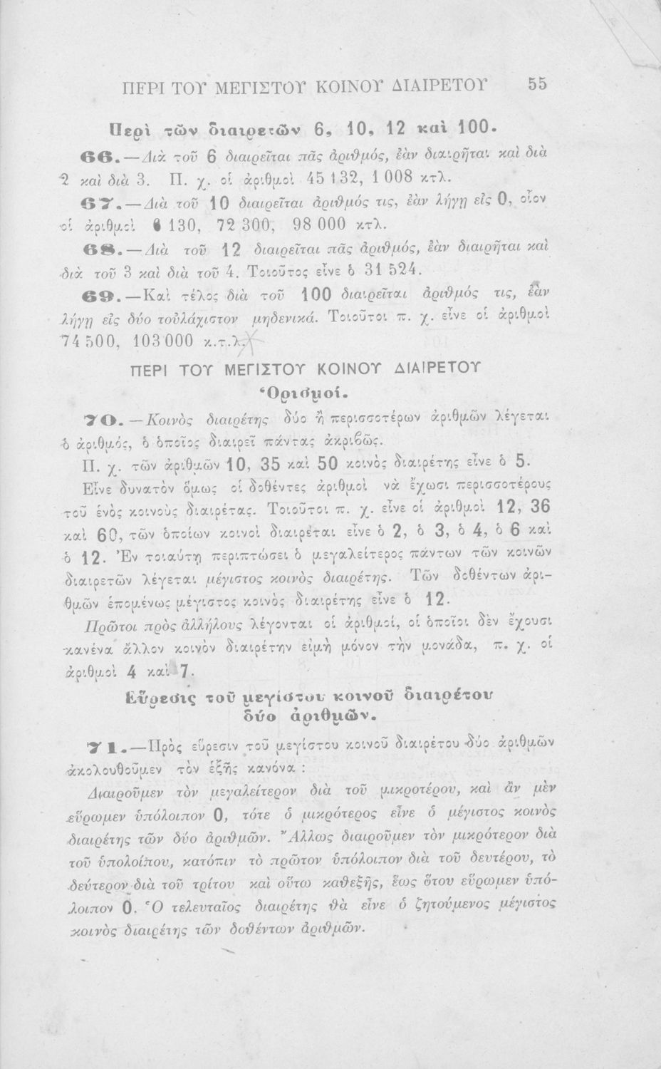 Σχολικό εγχειρίδιο Αριθμητικής για τα Ελληνικά σχολεία και Παρθεναγωγεία που περιέχει θεωρία και ασκήσεις.