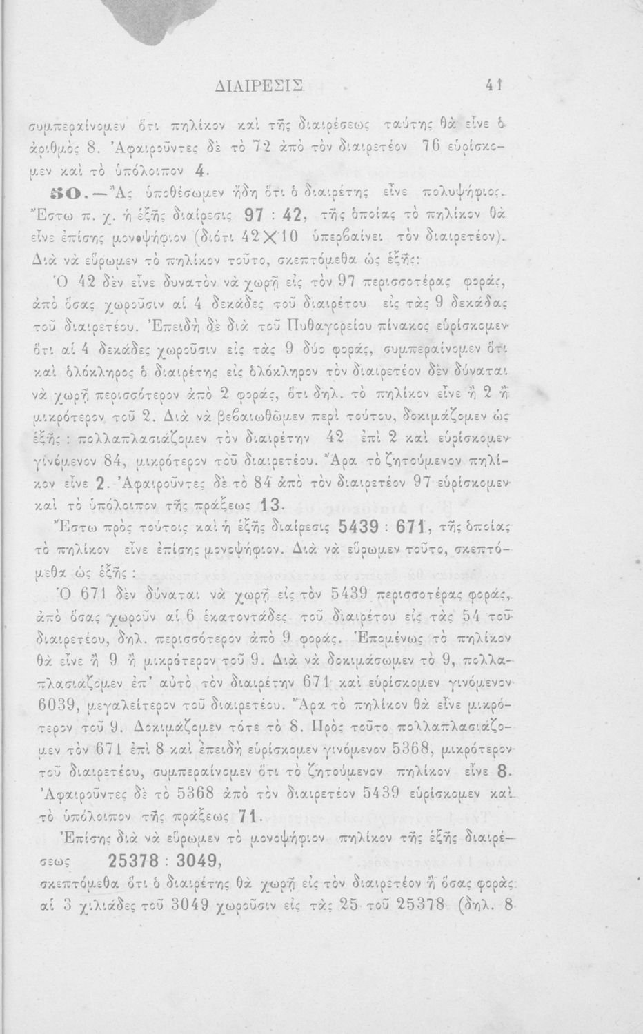 Σχολικό εγχειρίδιο Αριθμητικής για τα Ελληνικά και Αστικά Σχολεία και τα Παρθεναγωγεία που εστιάζει στις αριθμητικές πράξεις, τα κλάσματα, τους δεκαδικούς και συμμιγείς αριθμούς, και τις δυνάμεις. Περιέχει και