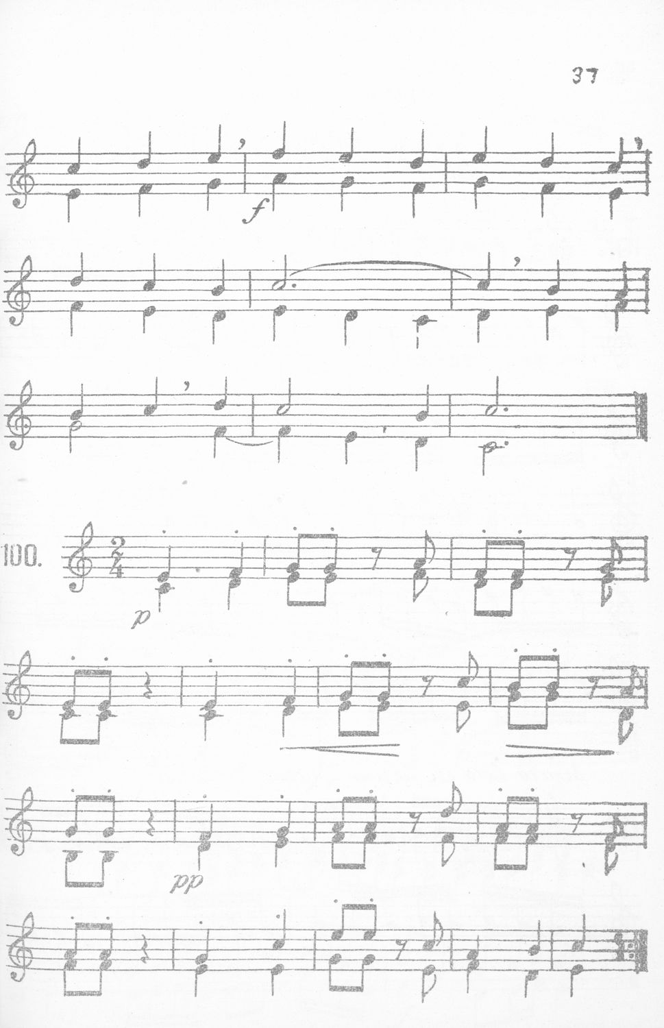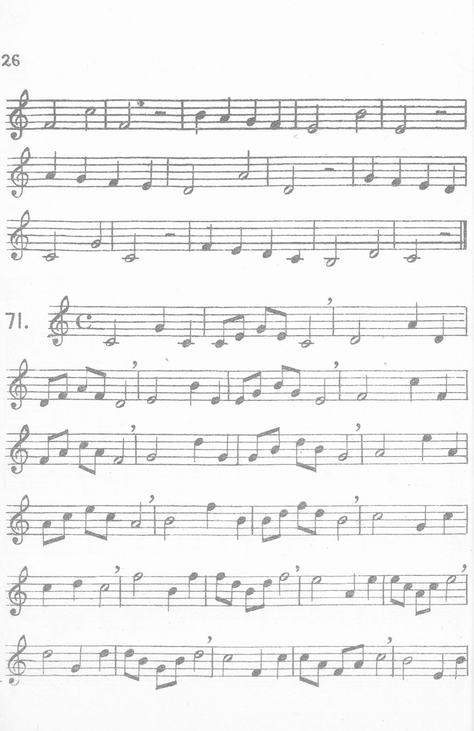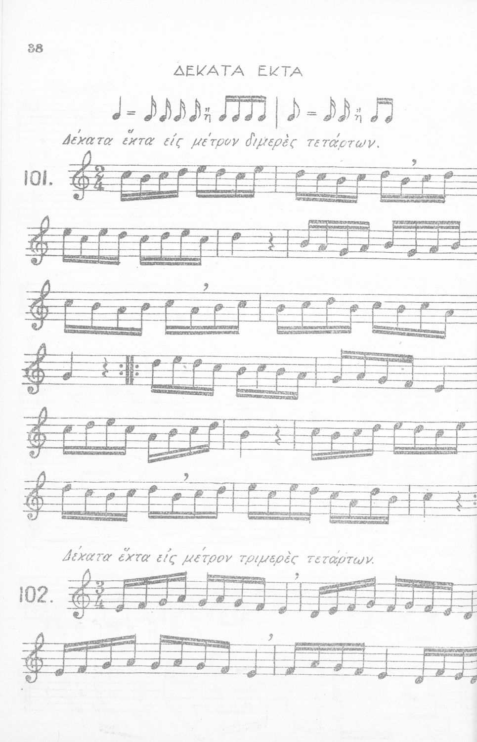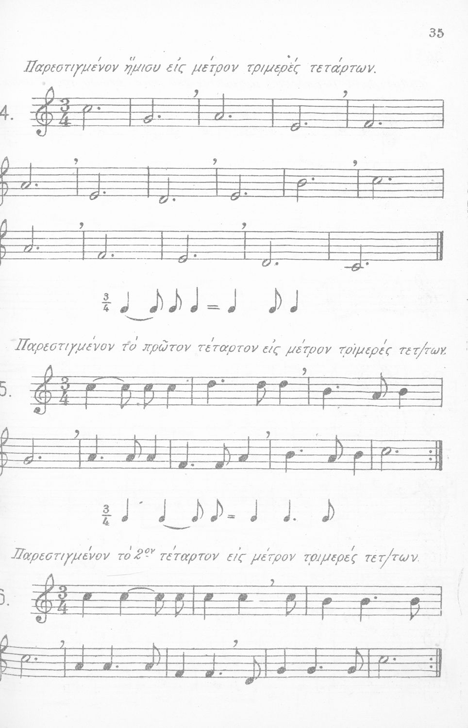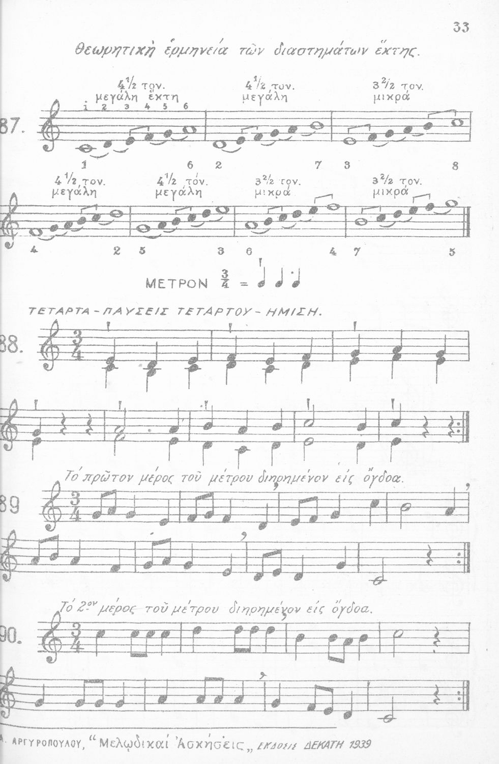 Σχολικό εγχειρίδιο Μουσικής για Γυμνάσια, Παρθεναγωγεία και Διδασκαλεία. Περιέχει ασκήσεις μελωδικές, χωρίς θεωρία.