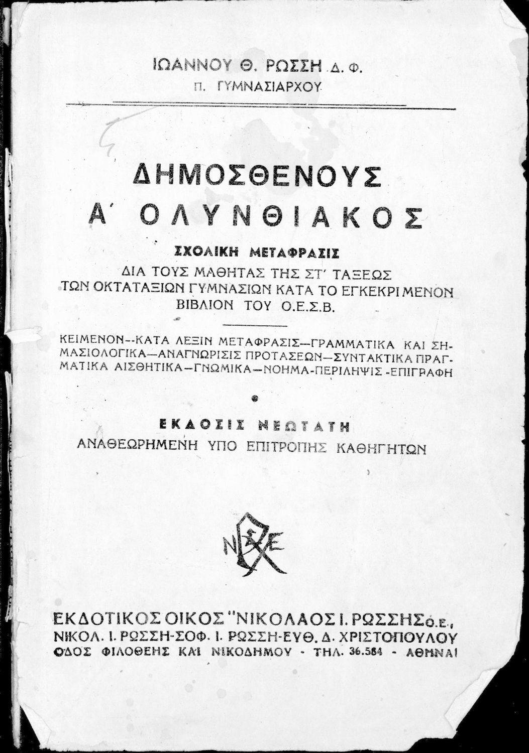 Εκδότης: Νικόλαος Ι. Ρώσσης Τόπος έκδοσης: Αθήνα |
