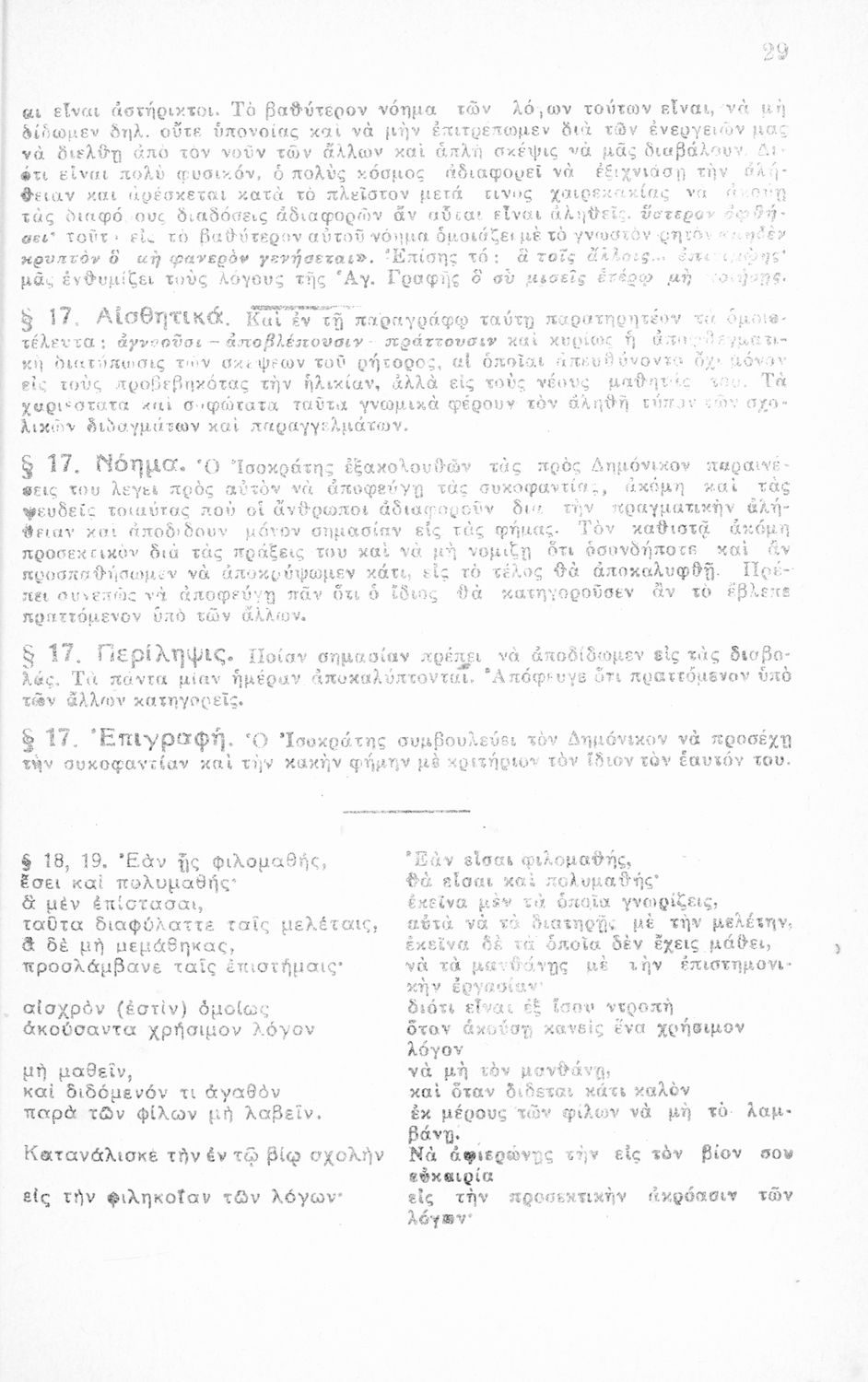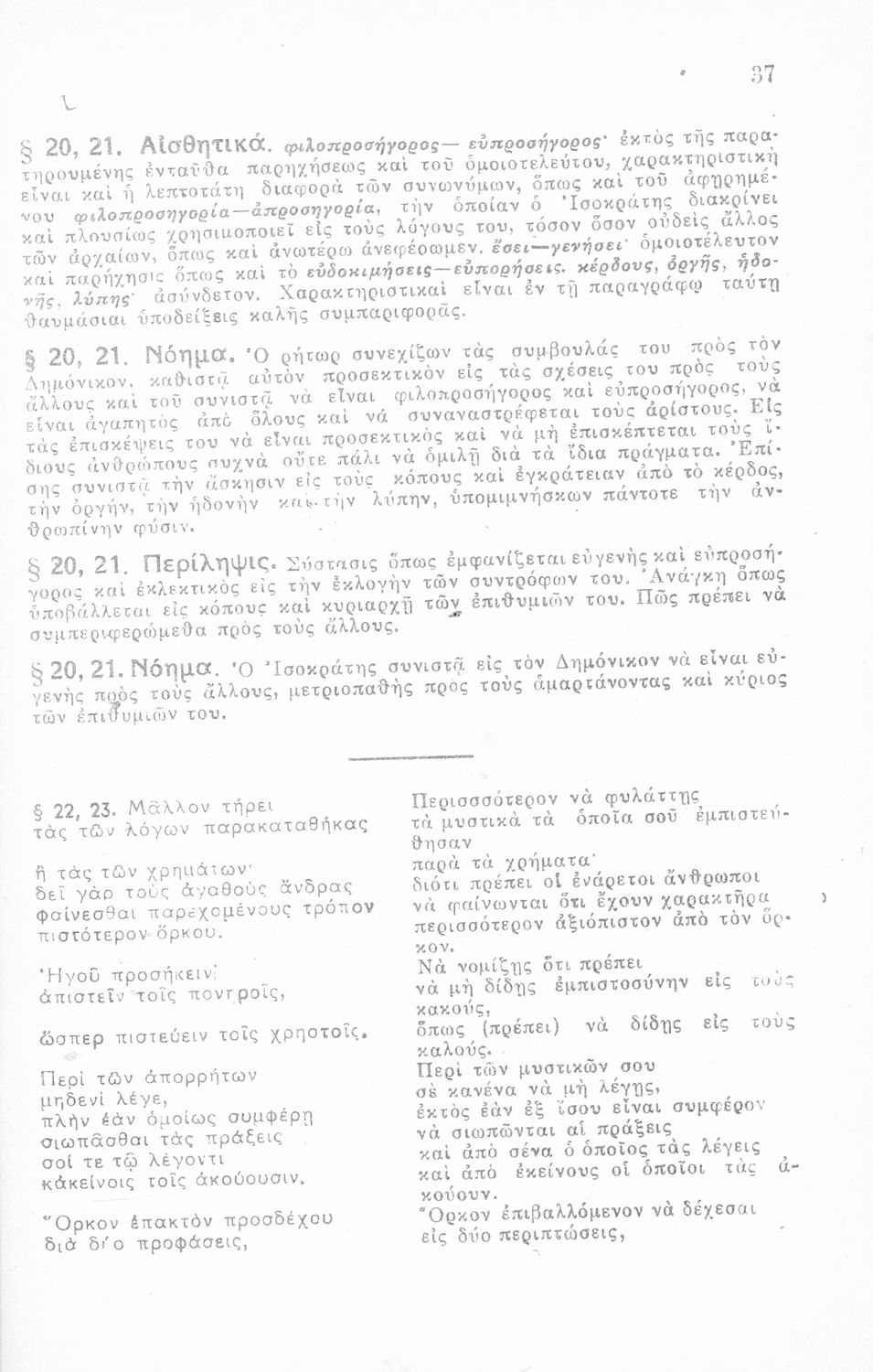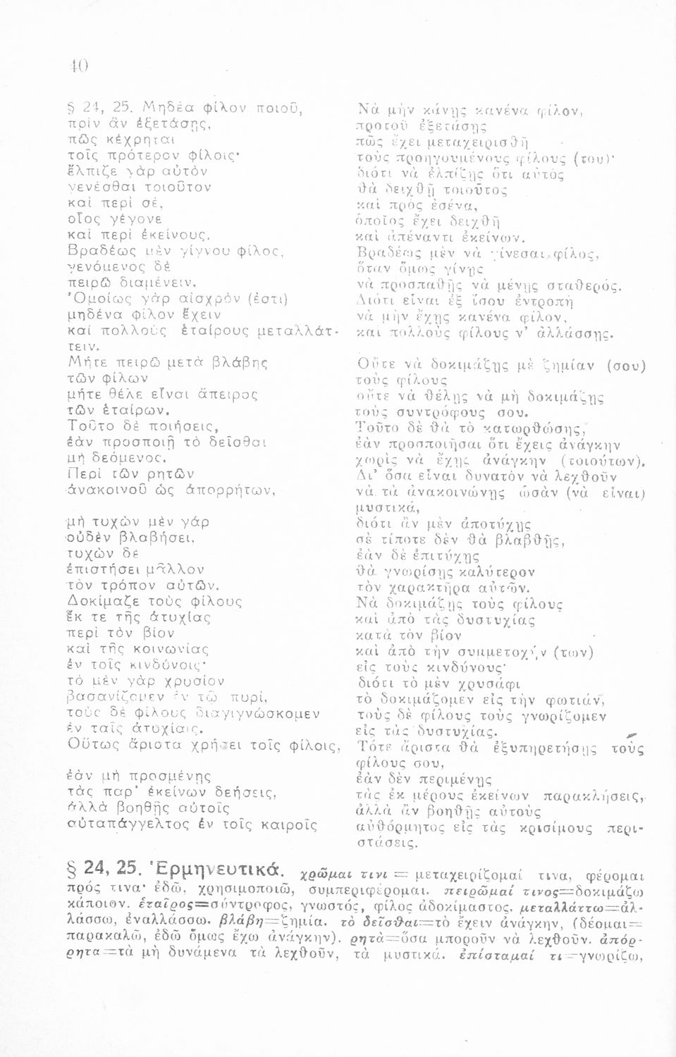 Μαθητικό βοήθημα Αρχαίων Ελληνικών Ε' Γυμνασίου που περιλαμβάνει το Λόγο του Ισοκράτη Προς Δημόνικον, μετάφραση, ερμηνευτικά, γραμματικά και συντακτικά σχόλια.