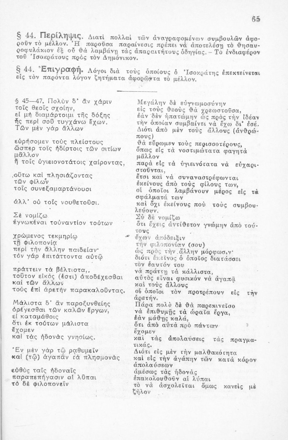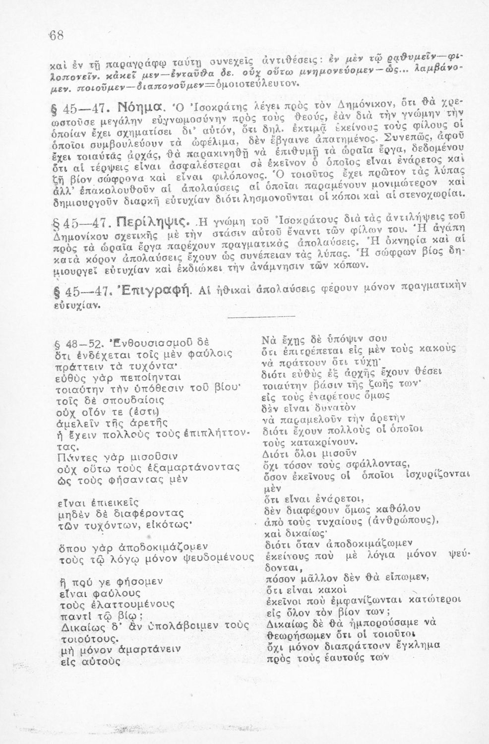 Μαθητικό βοήθημα Αρχαίων Ελληνικών για τους μαθητές της Ε΄ Οκταταξίου Γυμνασίου που περιλαμβάνει τους Λόγους του Ισοκράτη Προς Δημόνικον και Προς Νικοκλέα, μετάφραση, γραμματικά και συντακτικά σχόλια και ...