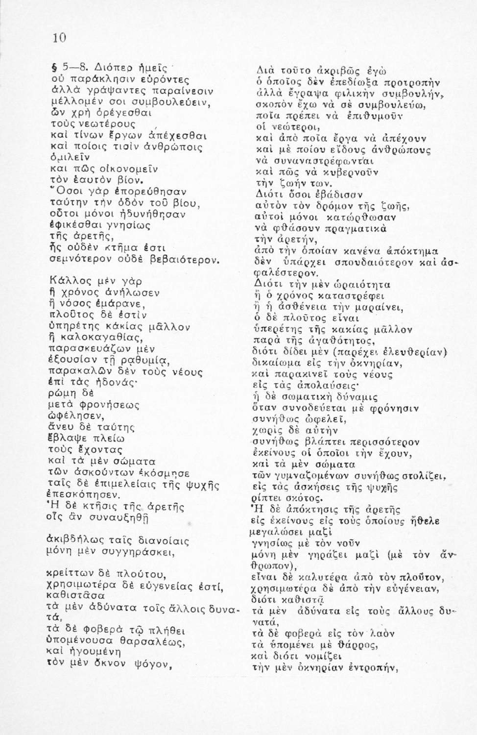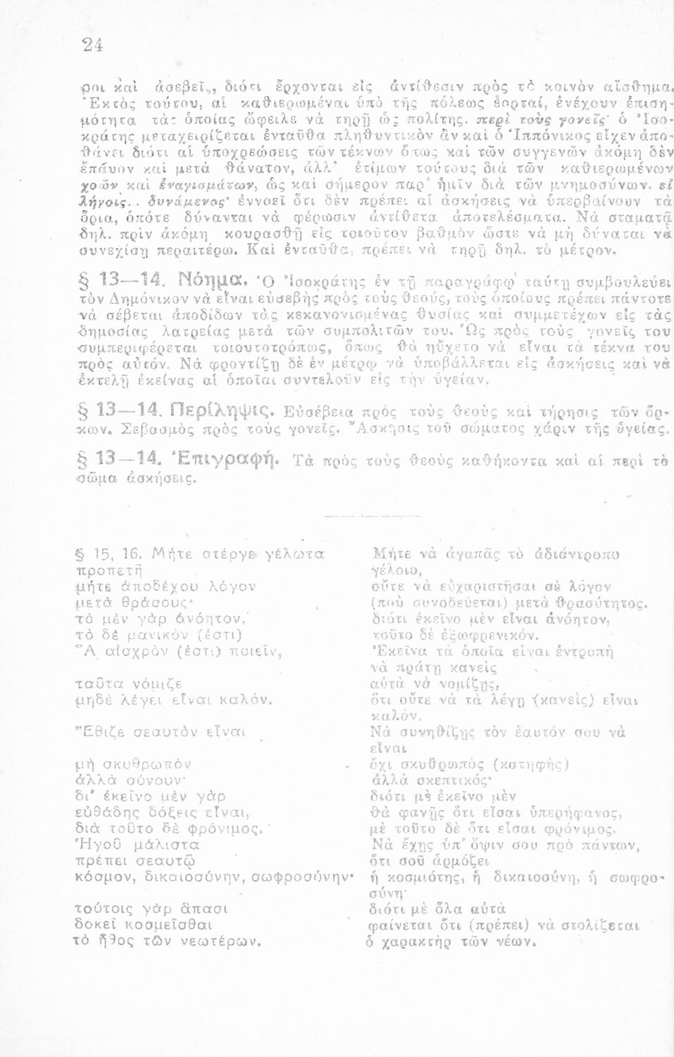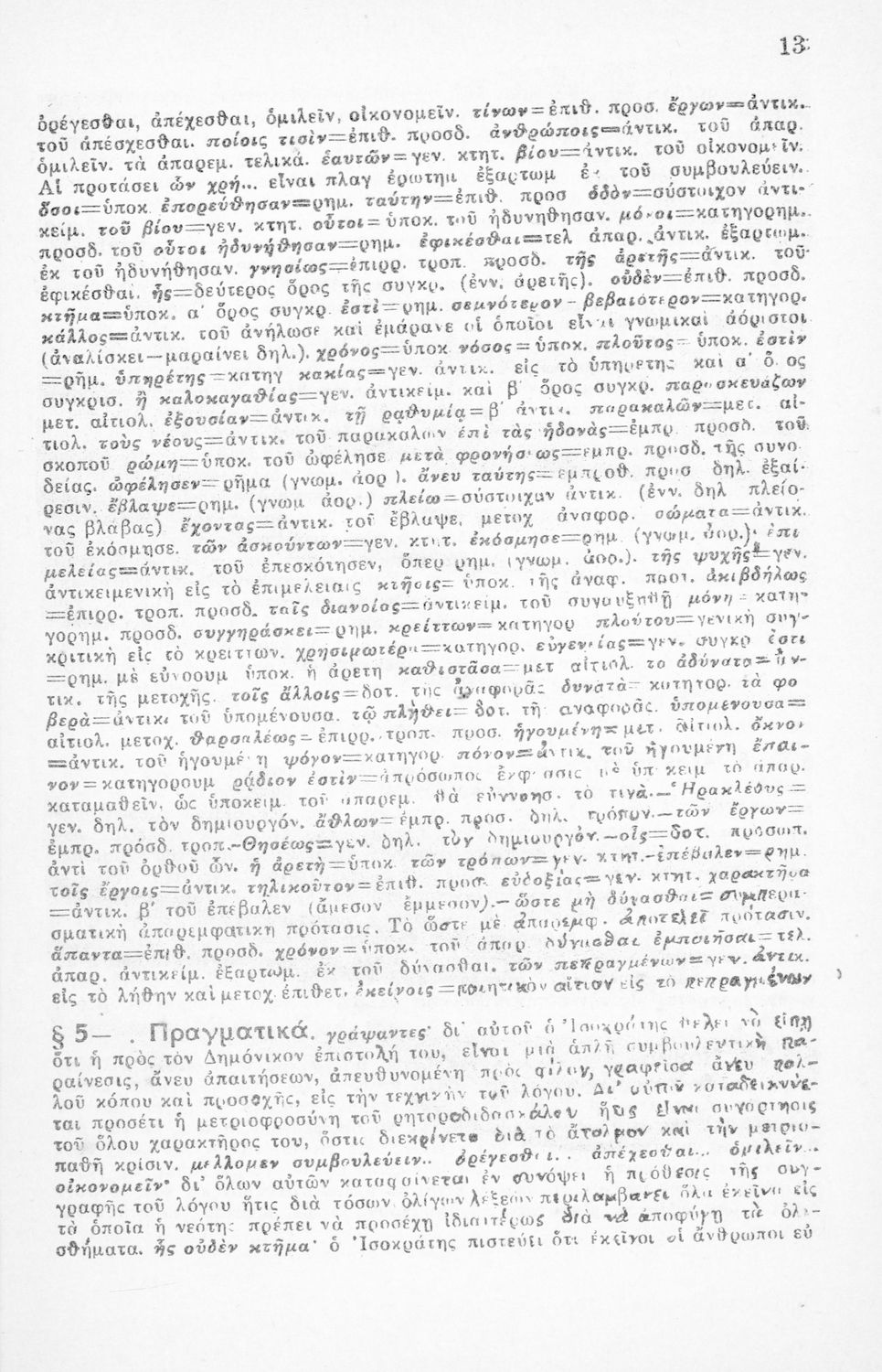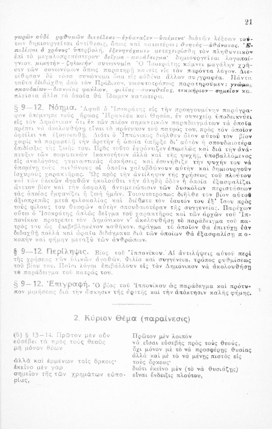 Μαθητικό βοήθημα Αρχαίων Ελληνικών Ε' Γυμνασίου που περιλαμβάνει το Λόγο του Ισοκράτη Προς Δημόνικον, μετάφραση, ερμηνευτικά, γραμματικά και συντακτικά σχόλια.