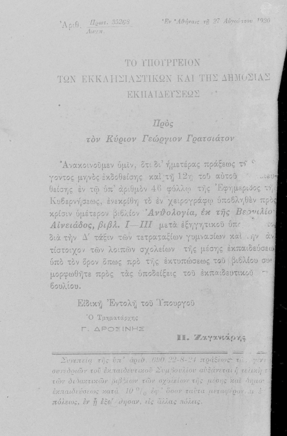 Υπουργική απόφαση / Σύμβαση: 35268/27-8-1926