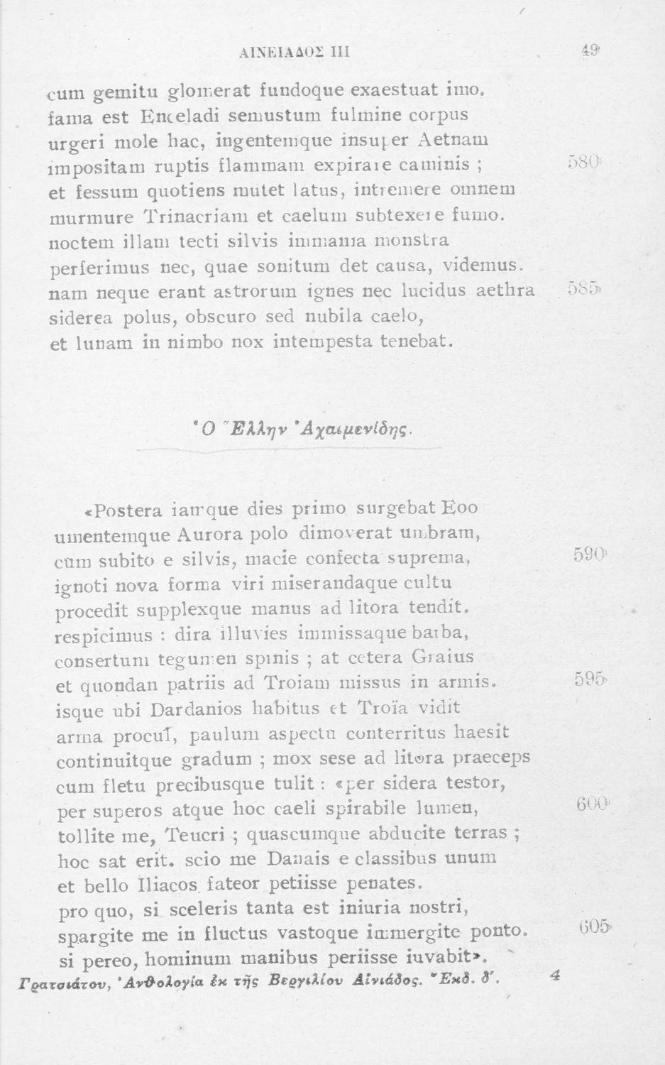 Ανθολογία εκ της Βεργιλίου Αινειάδος Βιβλίον Ι-ΙΙΙ, προς χρήσιν των μαθητών της Δ΄ τάξεως του Γυμνασίου