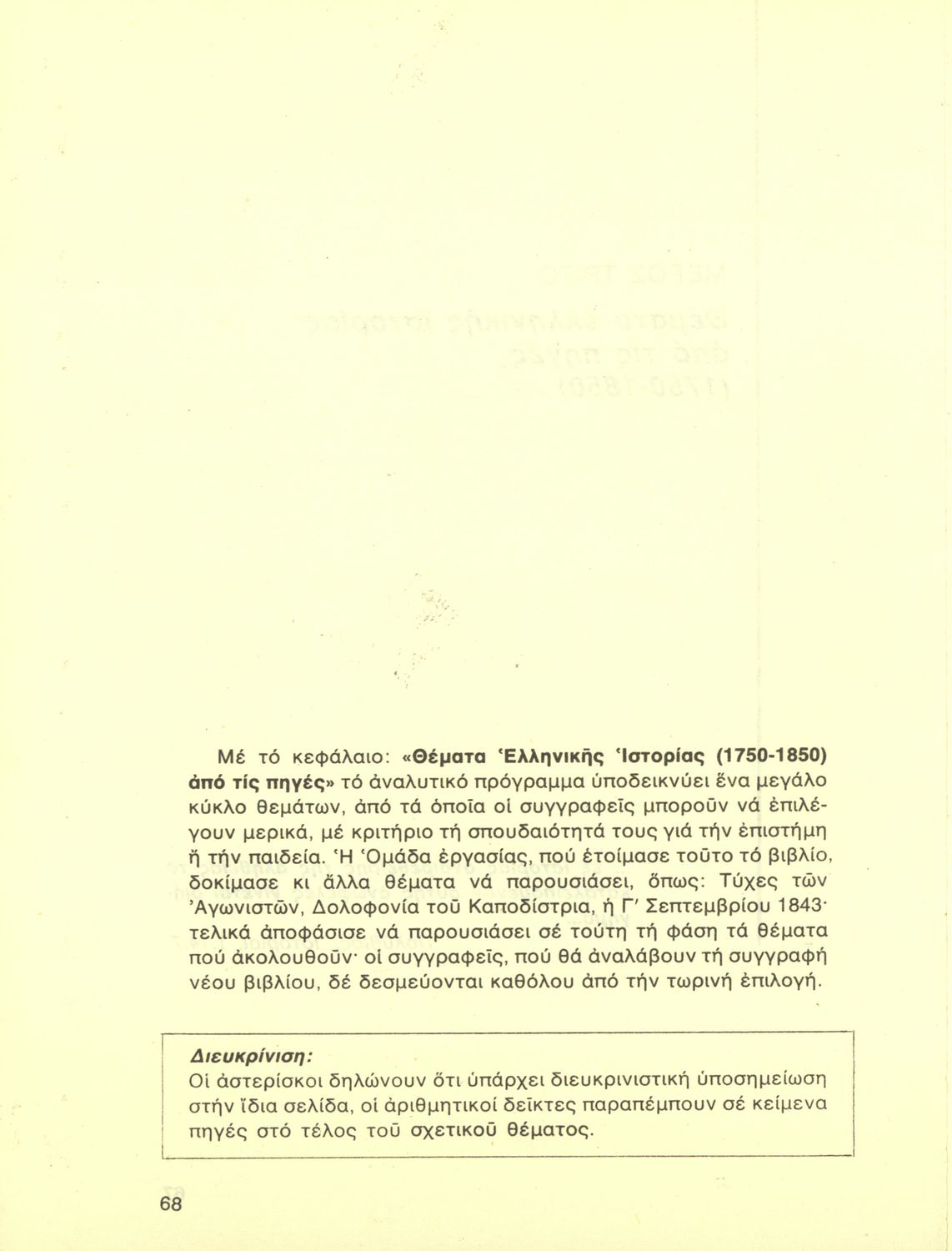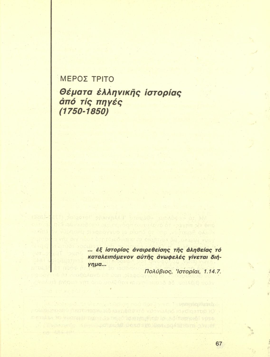 Σχολικό εγχειρίδιο Ιστορίας Γ΄ Λυκείου που πραγματεύεται τον ευρωπαϊκό διαφωτισμό, νεοελληνικό διαφωτισμό και θέματα νεοελληνικής ιστορίας (1750-1850) από πηγές.