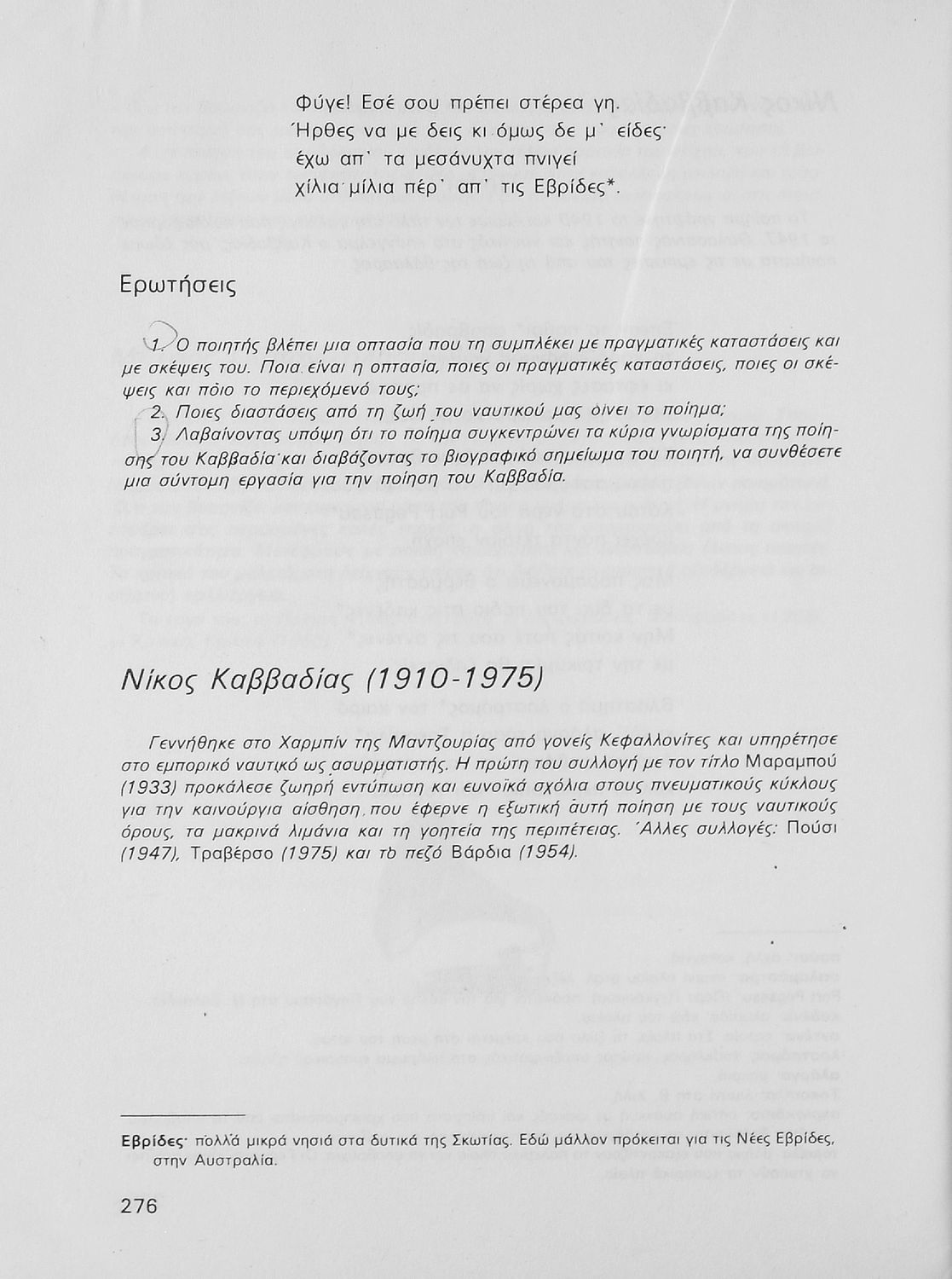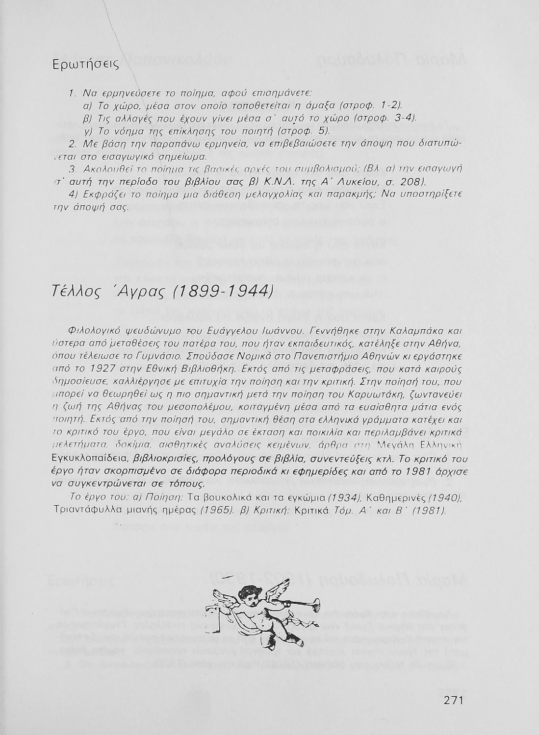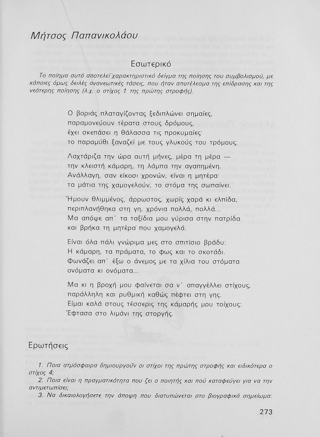 Σχολικό εγχειρίδιο Νέων Ελληνικών Α΄ Λυκείου που περιλαμβάνει πεζά, ποιήματα, δοκίμια και θεατρικά έργα σύγχρονων Ελλήνων και κλασσικών ξένων συγγραφέων, ερωτήσεις και βιογραφικά σημειώματα